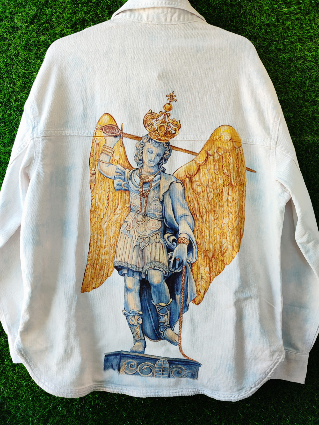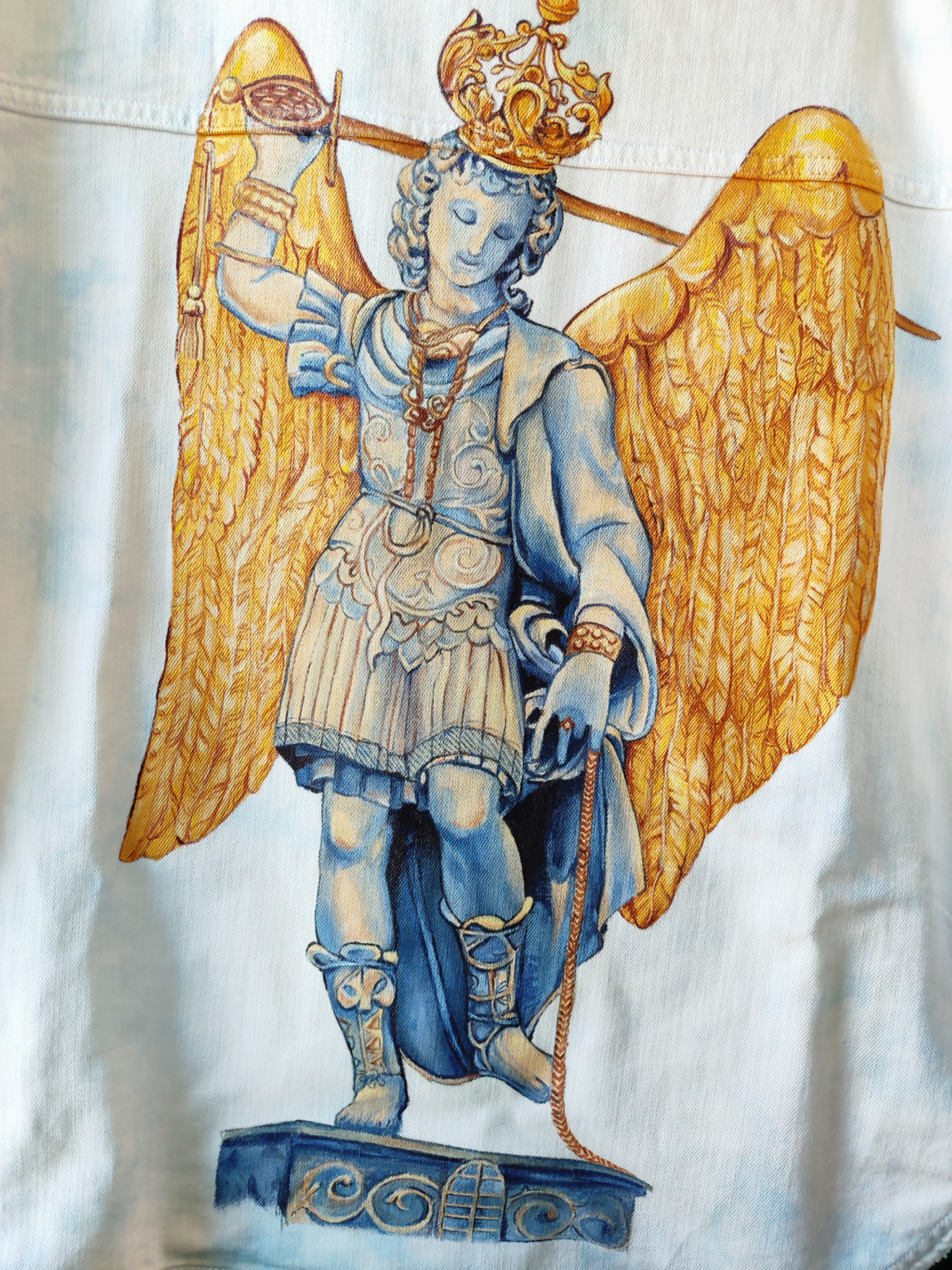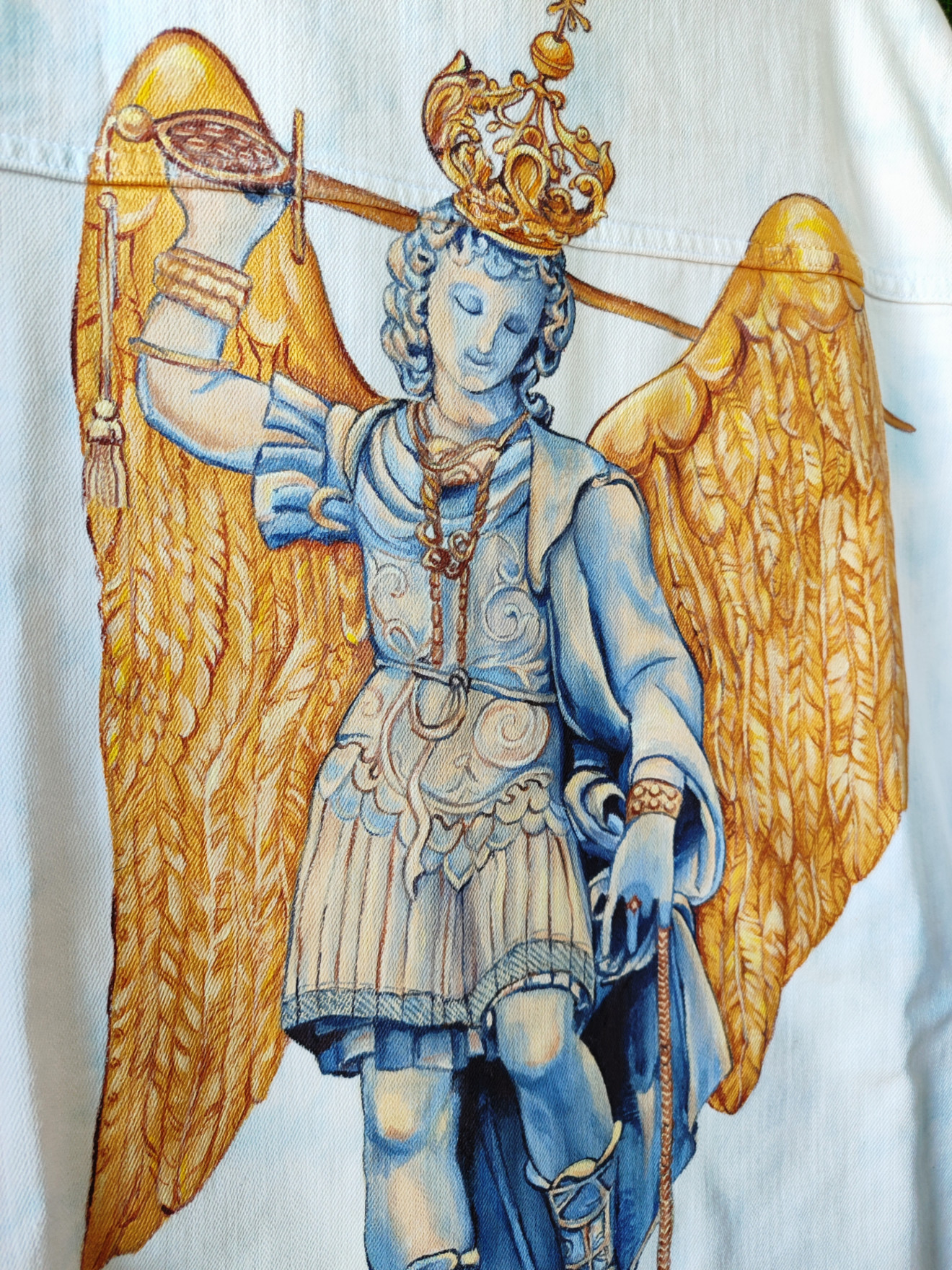 Изрисувано яке с образа на Архангел Михаил по снимка на гоблен.