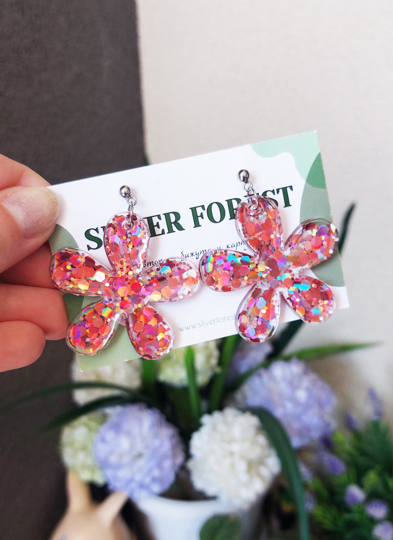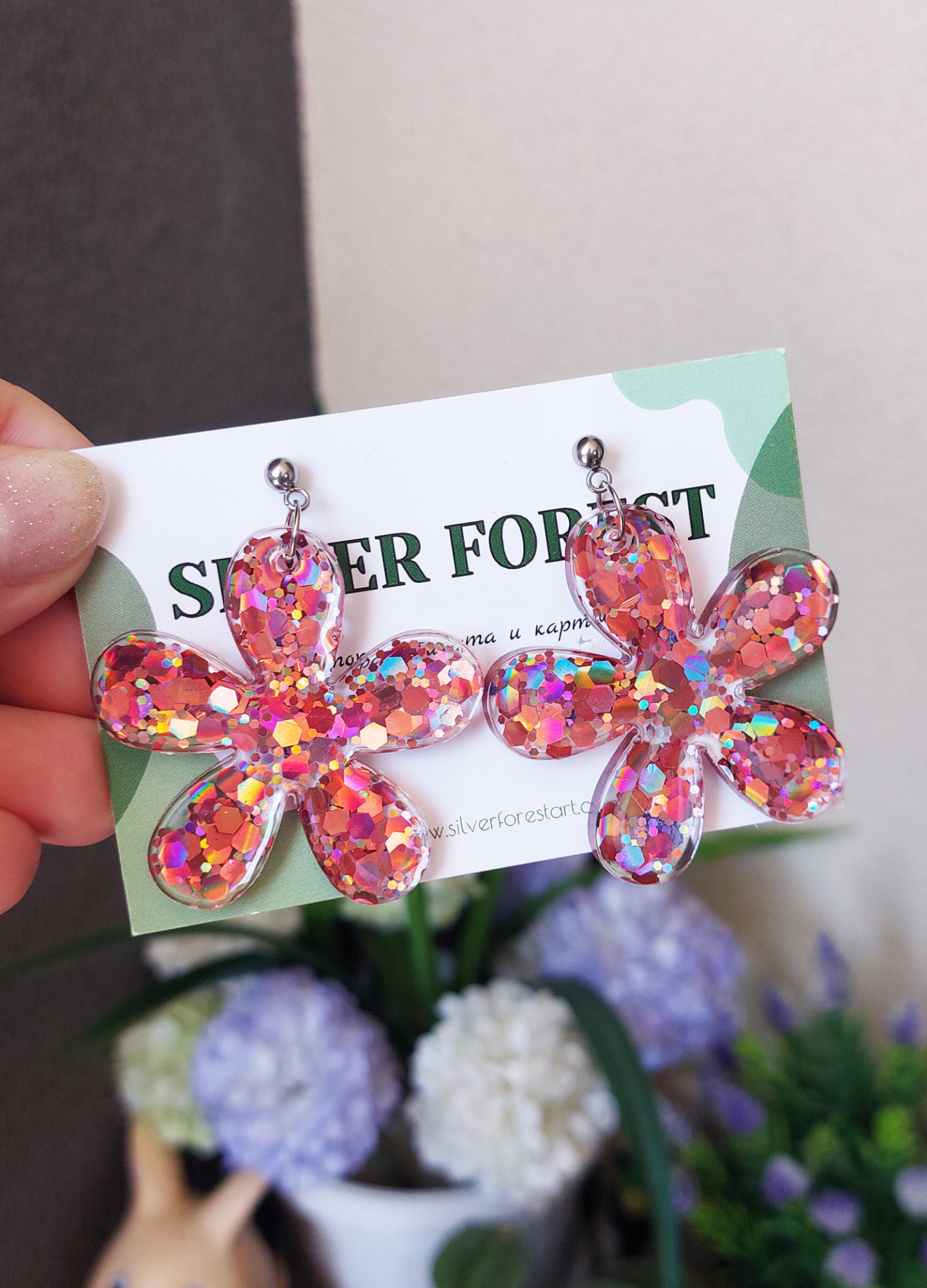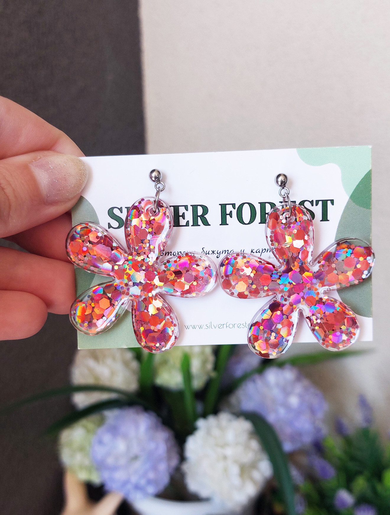 Авторски обици, ръчна изработка. Oбгърнати са в бижутерска смола и истински растения! Пристигат опаковани и готови за подарък. Бижутата са леки и удобни за носене! • бляскави частици • епоксидна смола • метално пинтче • размер: 4.5см/6см ГРИЖА ЗА БИЖУТАТА – почиствайте с влажна кърпа – съхранявайте далеч от пряка слънчева светлина – не ги мокрете – избягвайте допир с препарати/парфюми