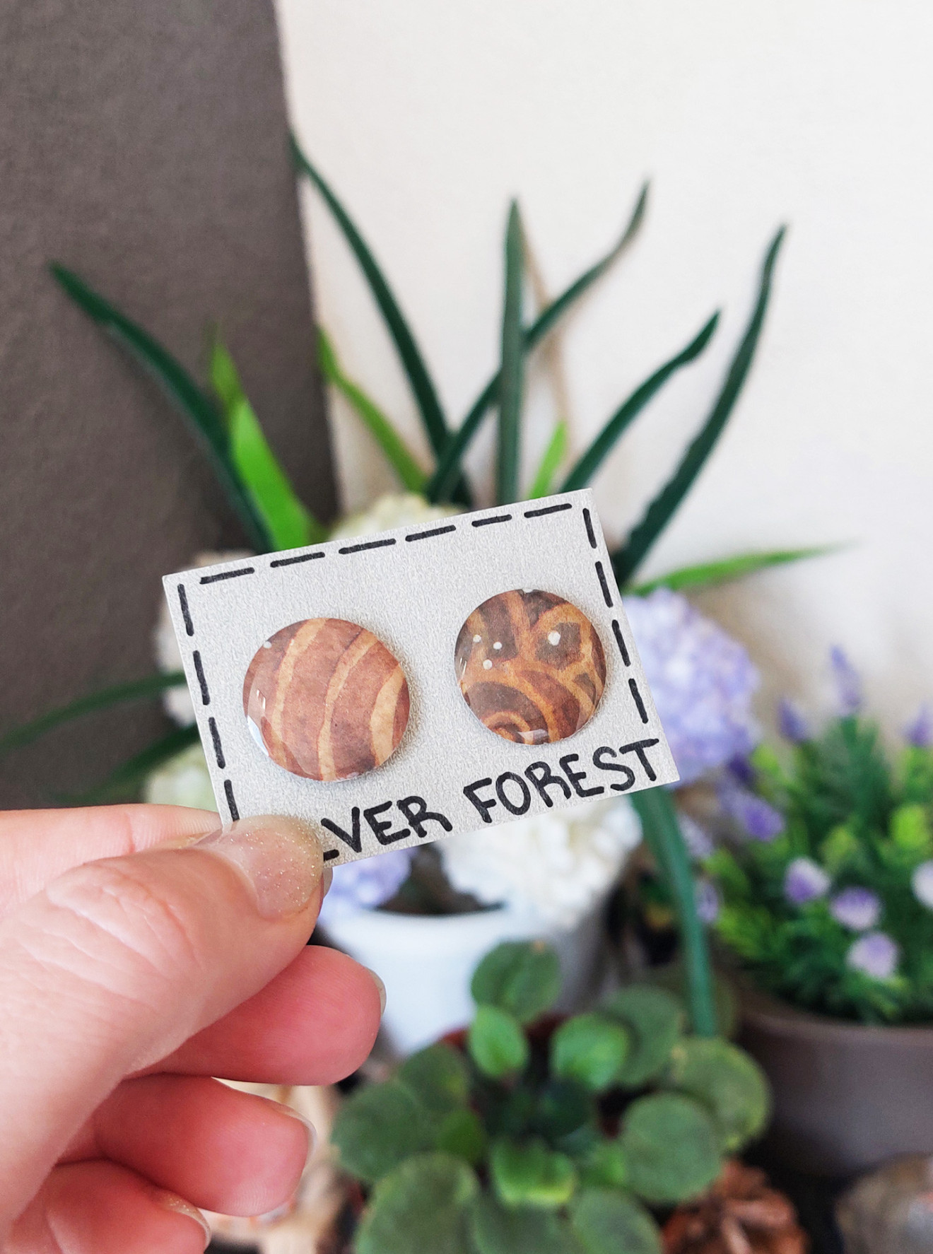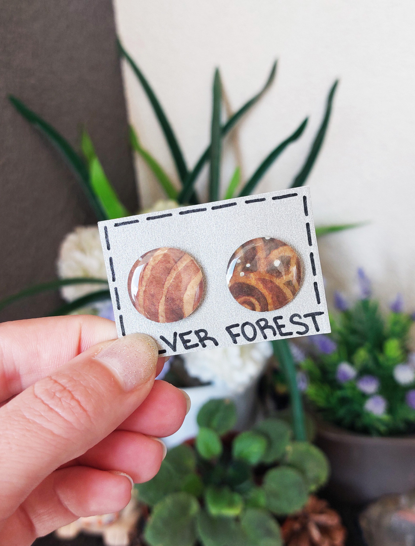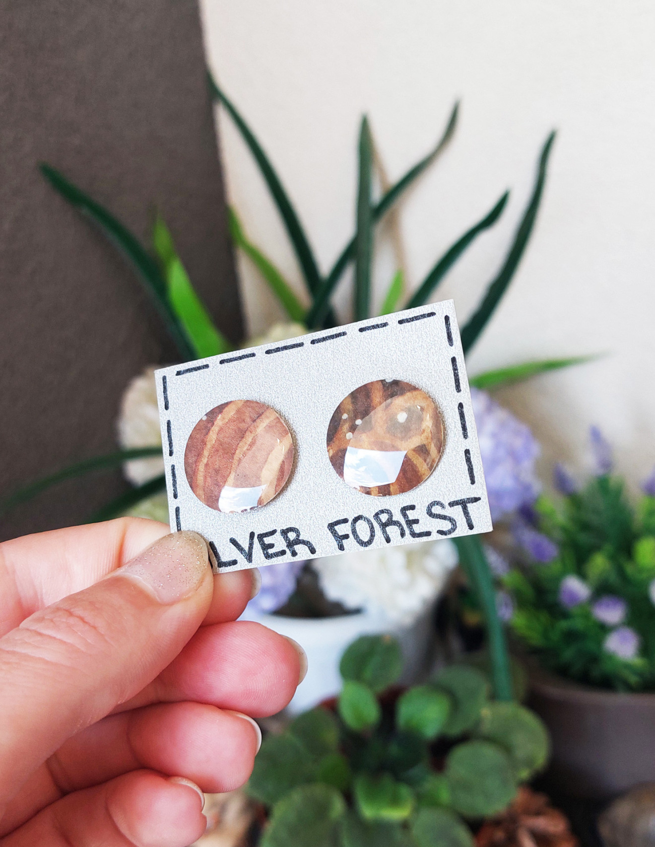 Авторски обици, ръчна изработка. Oбгърнати в бижутерска смола и нарисувани с акрилни бои. Пристигат опаковани и готови за подарък. Бижутата са леки и удобни за носене! • епоксидна смола • акрилни бои • силиконови щифтове и стопери • размер: 2см/диаметър ГРИЖА ЗА БИЖУТАТА – почиствайте с влажна кърпа – съхранявайте далеч от пряка слънчева светлина – не ги мокрете – избягвайте допир с препарати/парфюми
