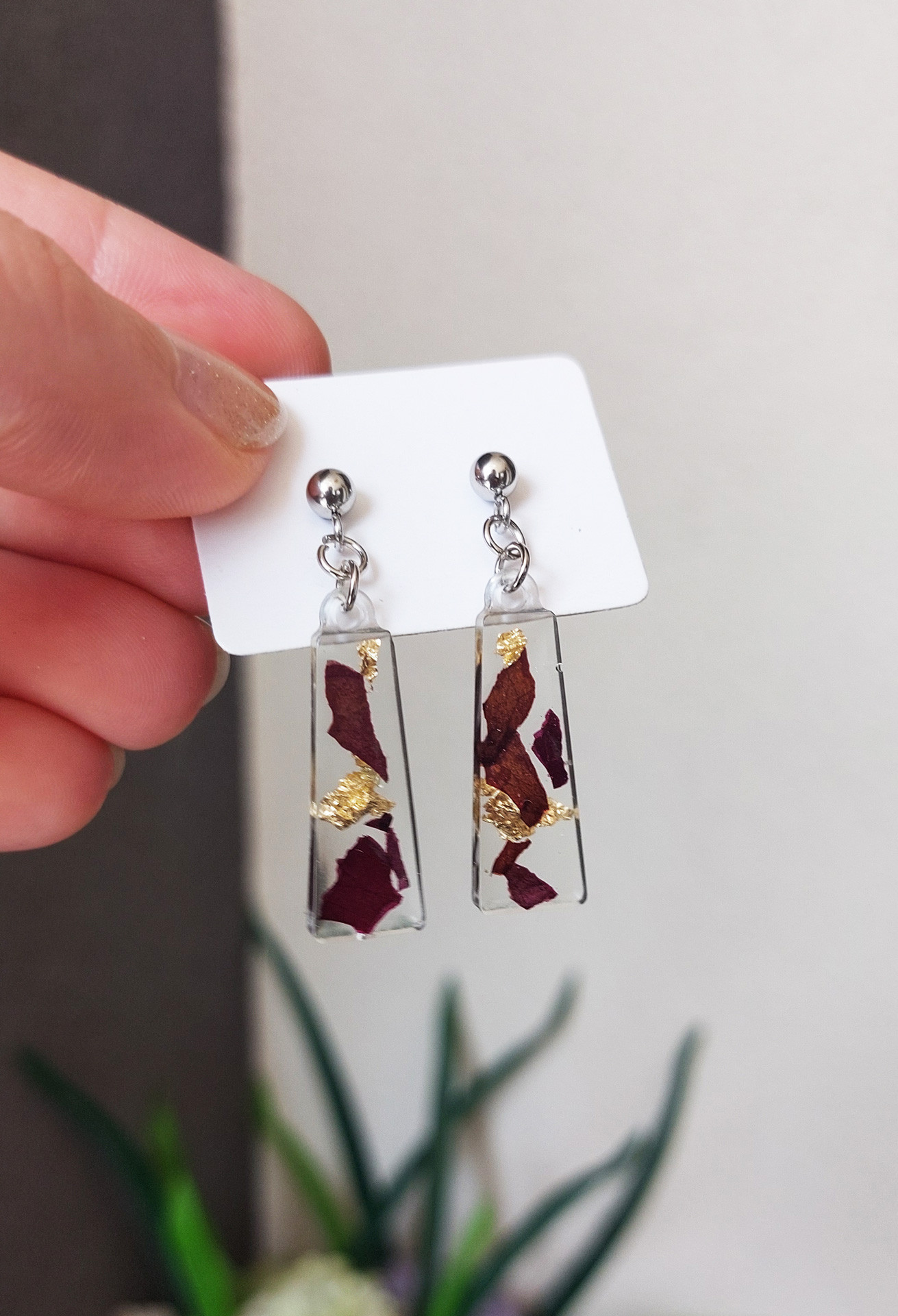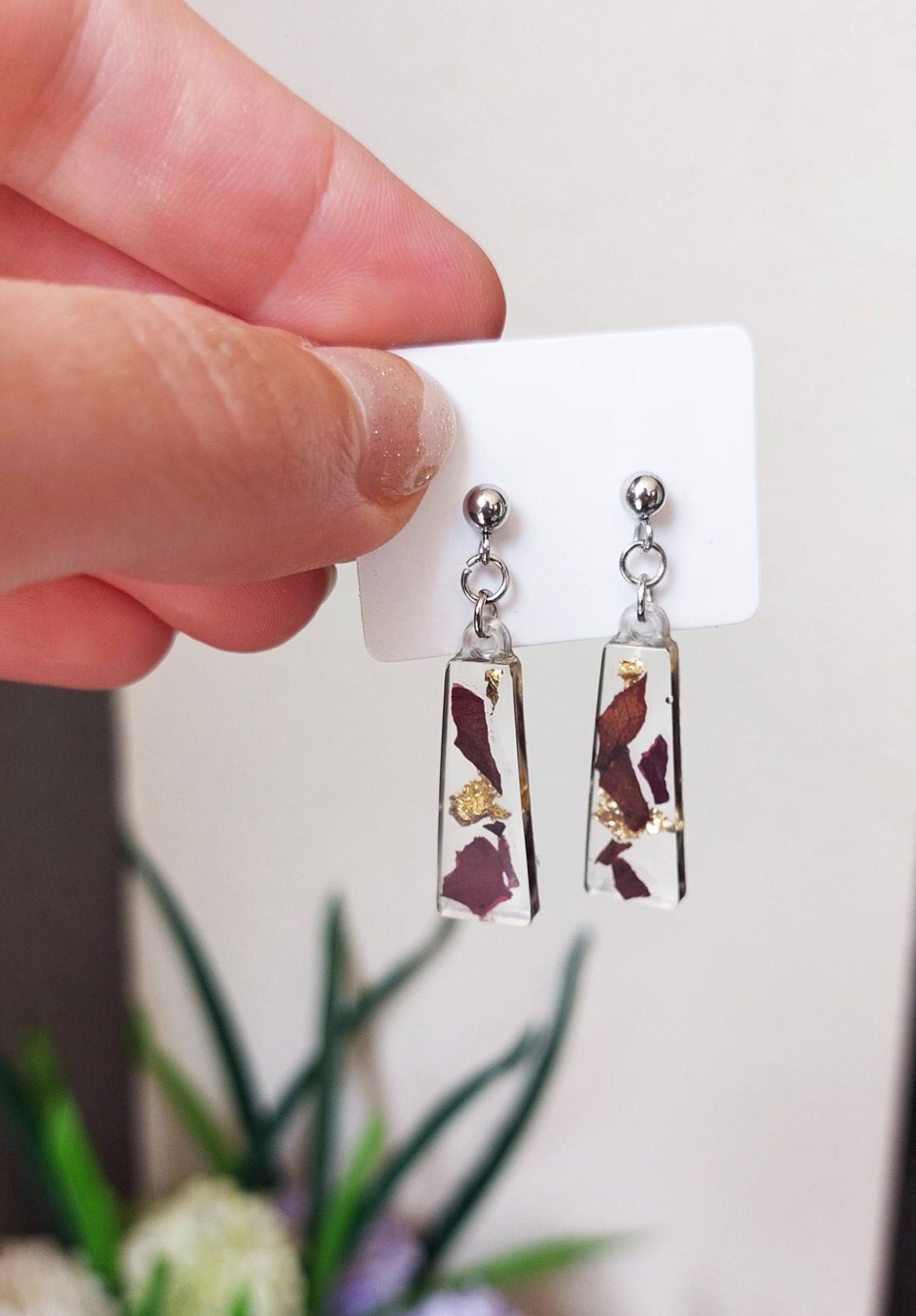 Авторски обици, ръчна изработка. Oбгърнати са в бижутерска смола и истински растения! Пристигат опаковани и готови за подарък. Бижутата са леки и удобни за носене! • истински растения и варак • епоксидна смола • метално пинтче • размер: 3,4см/дължина ГРИЖА ЗА БИЖУТАТА – почиствайте с влажна кърпа – съхранявайте далеч от пряка слънчева светлина – не ги мокрете – избягвайте допир с препарати/парфюми