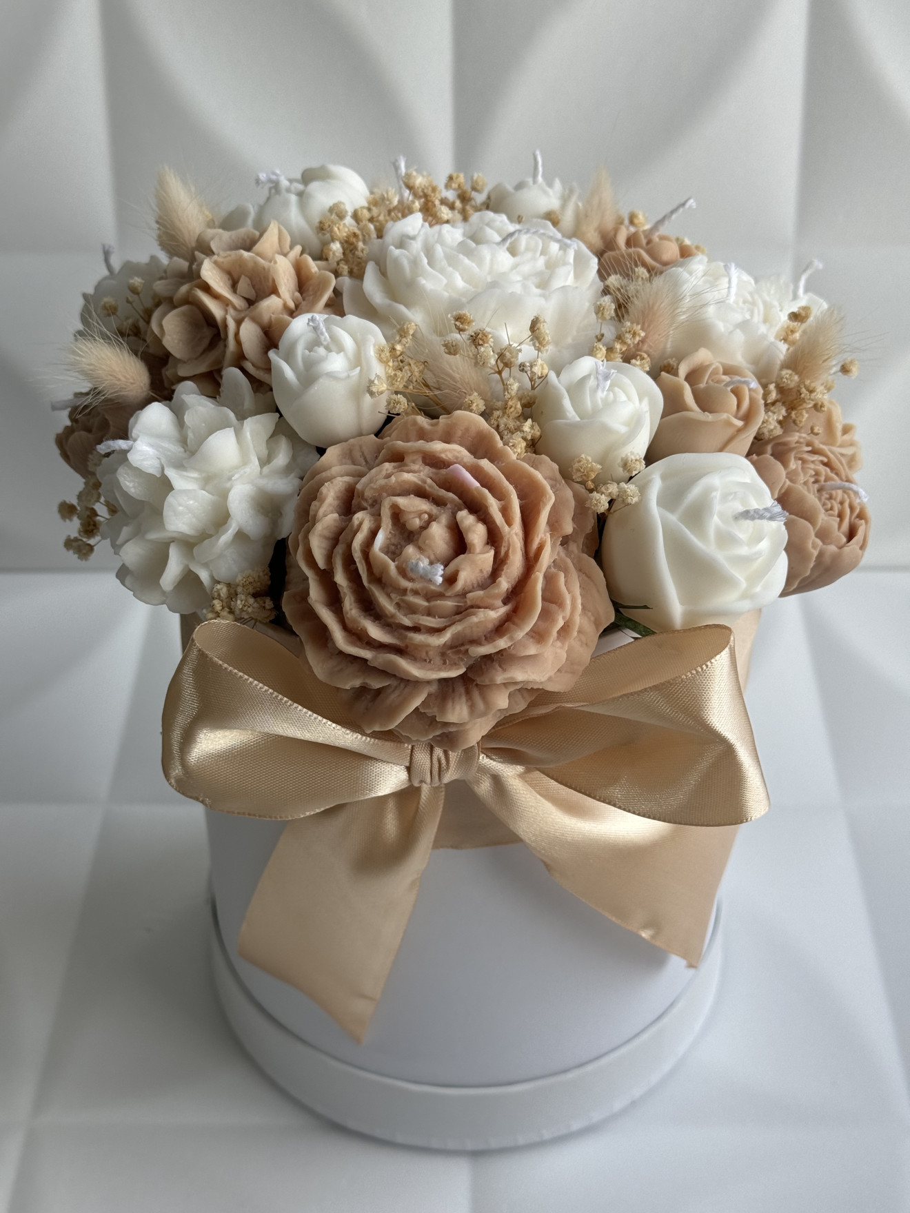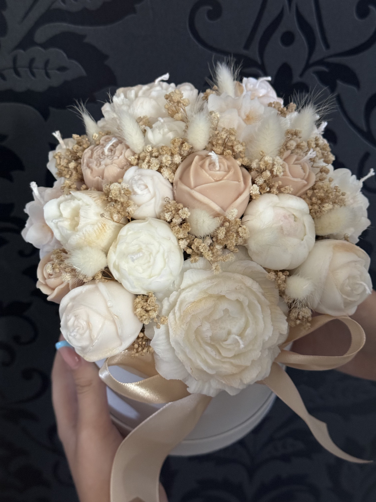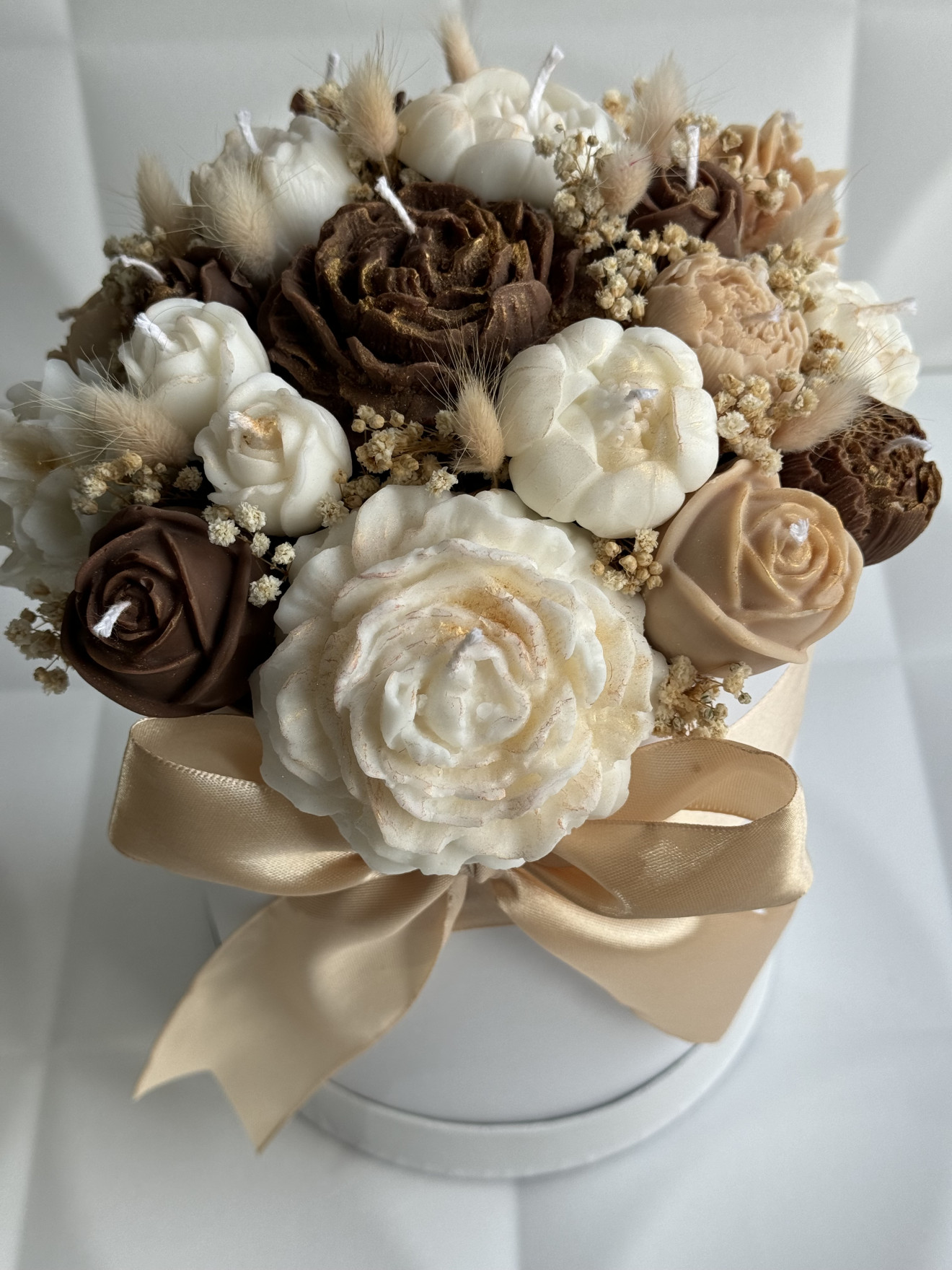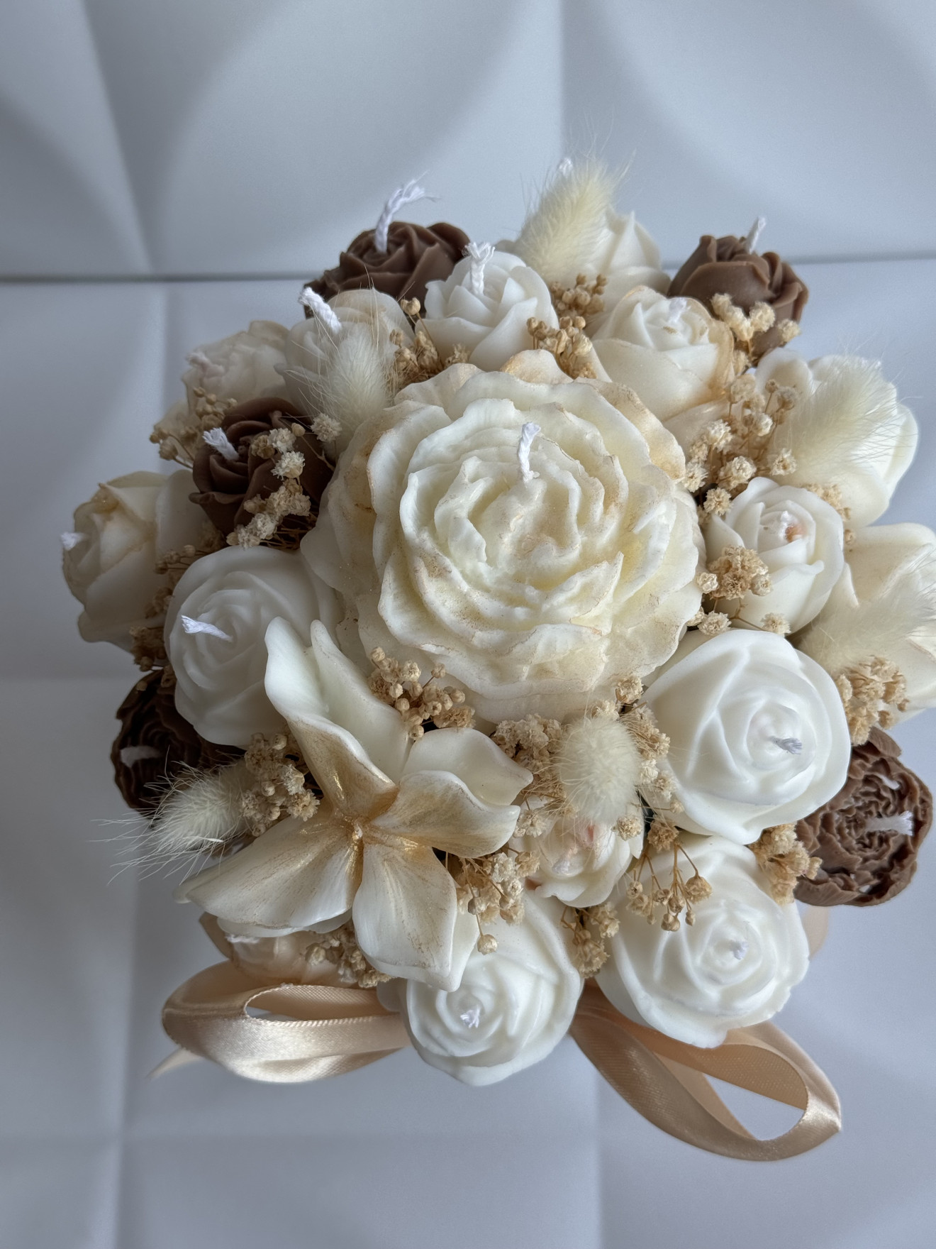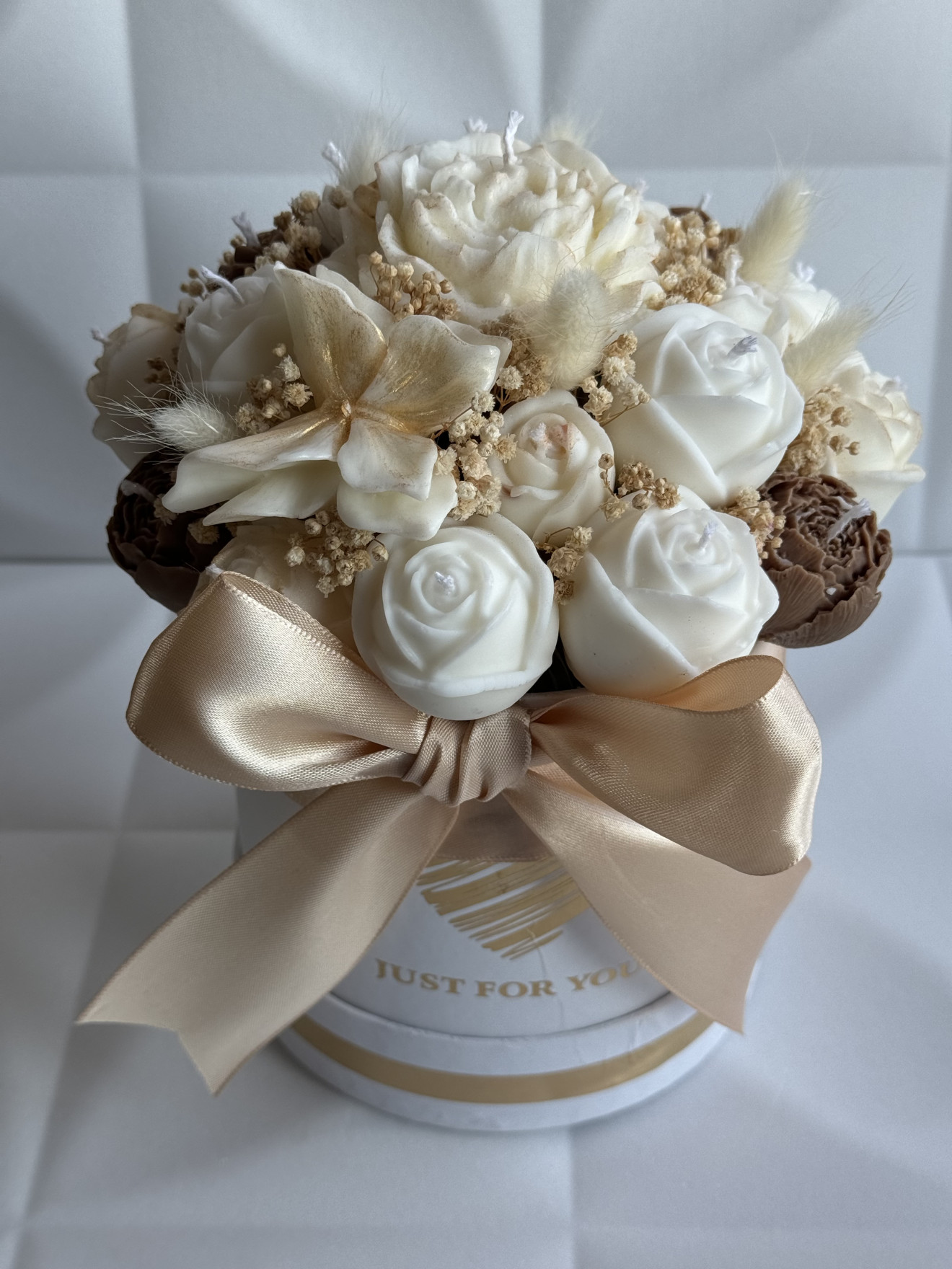 Букет от ръчно изработени ароматни соеви свещи под формата на цветя, ухаещ невероятно. Предимствата да изберете от нашите букети са на първо място са изработени от 100% екологично чист соев восък, вечен неувяхващ букет, дълготраен аромат ароматизиращ помещението където се намира, различен, и в същото време може и да се използва всяка една свещ след отделянето и от букета.