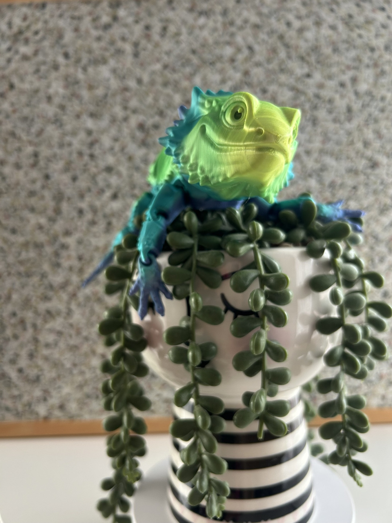 Запознайте се с нашата най-нова звезда - 3D принтиран гущер в преливащи цветове! Този малък хубавец е готов да покори света с подвижното си тяло и авантюристичен дух! Независимо дали сте на 5 или на 105, тя ще бъде вашият верен спътник в приключенията! Изработен с много любов от FotevArt, нашият гущер е истинско произведение на изкуството! #3DPrint #FotevArt #ЦветенГущер #ГотоваЗаПриключения