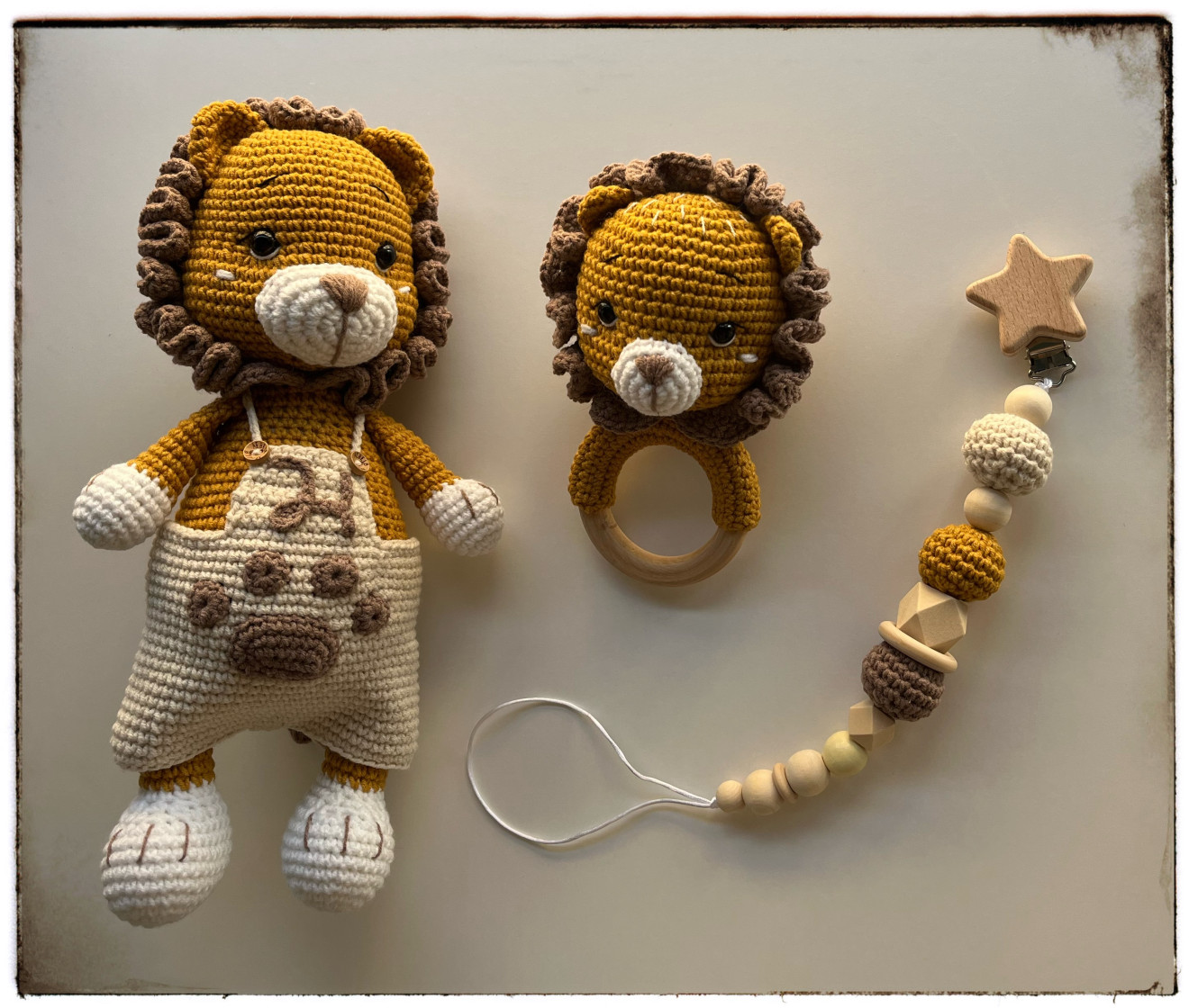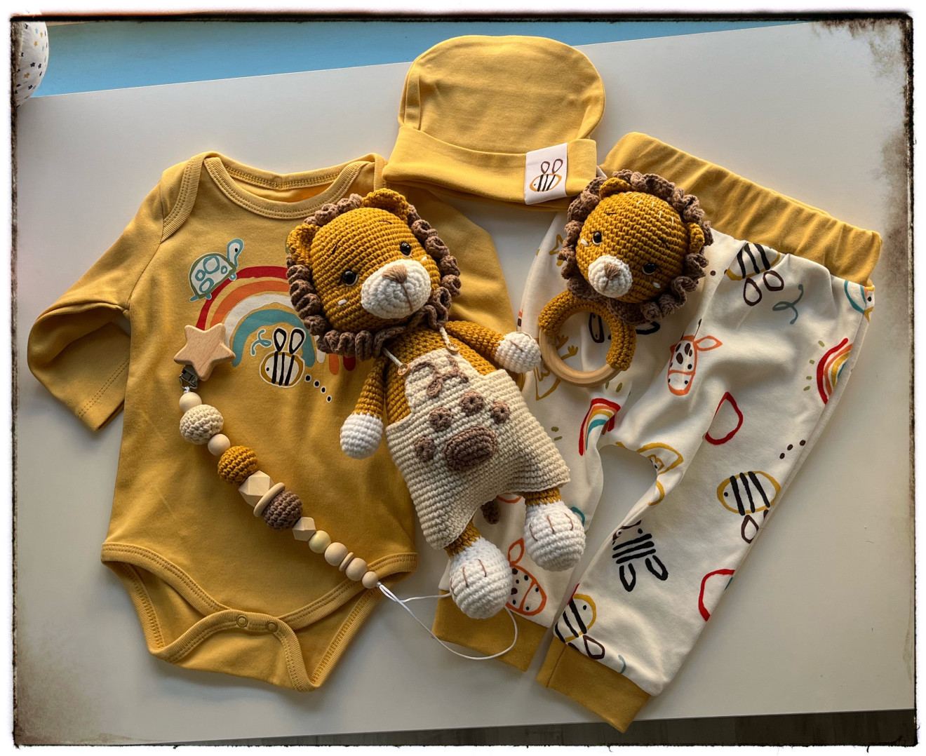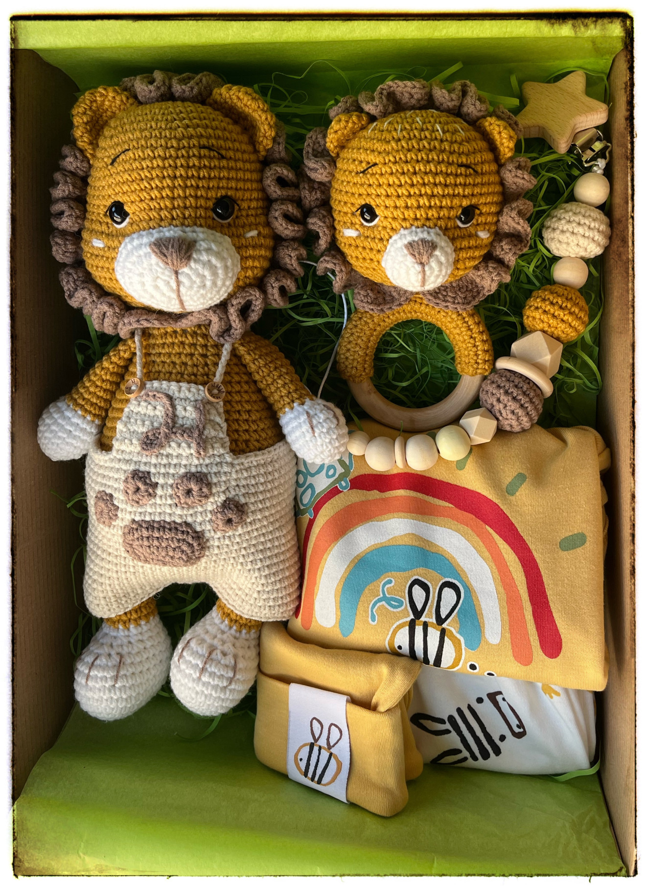 Сетчето включва: ?играчка висока около 30 см. и персонализирана с буквичката на бебчо ?дрънкалка ?клипс за биба ❗️Дрешките не са част от сета, а само допълнение към подаръка. Изработени от: ?хипоалергична прежда ☁️пълнеж силиконов пух ?безопасни очи ?дървени елемети ?цена:играчка 75 лв., дрънкалка 30 лв., клипс 20 лв. ❗️може да поръчате цялото сетче или избрани компоненти от него. За въпроси и поръчки пишете на лично? във фейсбук страничката ми за по-бърз отговор