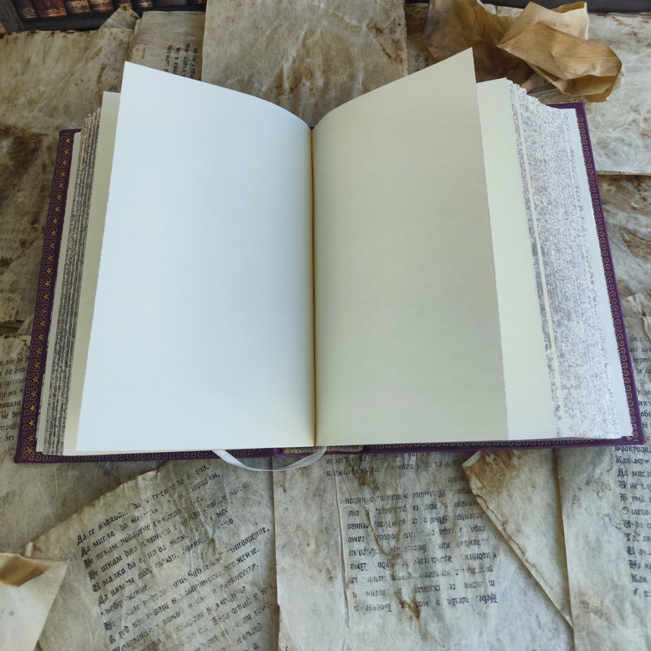 Изцяло ръчно книговезан кожен тефтер за думи, които остават. Изработен от висококачествени естествени материали по автентична технология. * Размер около А5 (16/20 см) * около 480 страници без редове * Висококачествена 95-грамова хартия, подходяща както за писане с химикал, така и с писалка. * Естествена растително дъбена козя кожа * Декорация с 23,5 карата златен варак * Ръчно шит на 4 канапа * Ръчно декориран обрез * Ръчно шити копринени капителбанди * Вътрешна кожена става. Всеки тефтер пристига при Вас в луксозна подаръчна опаковка.