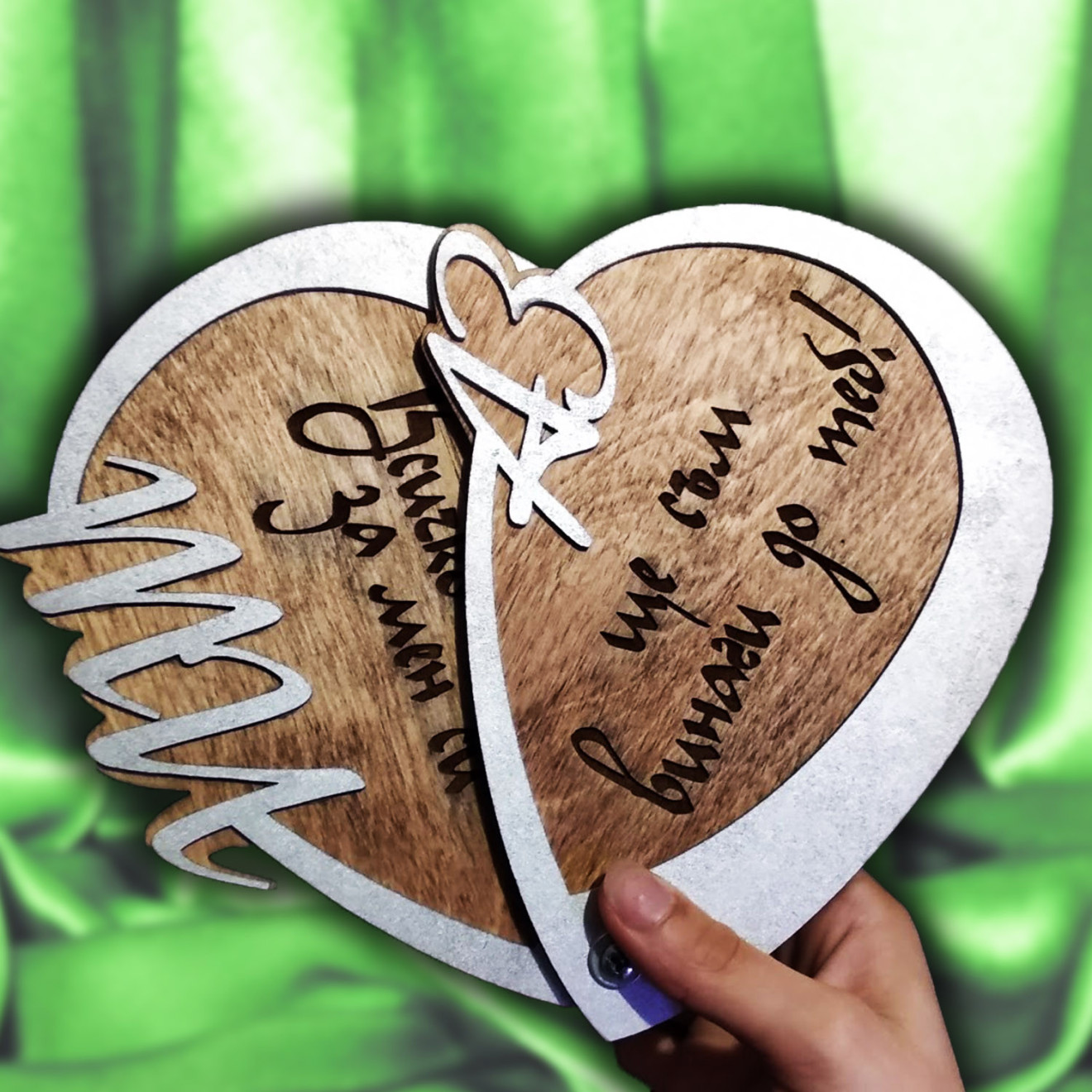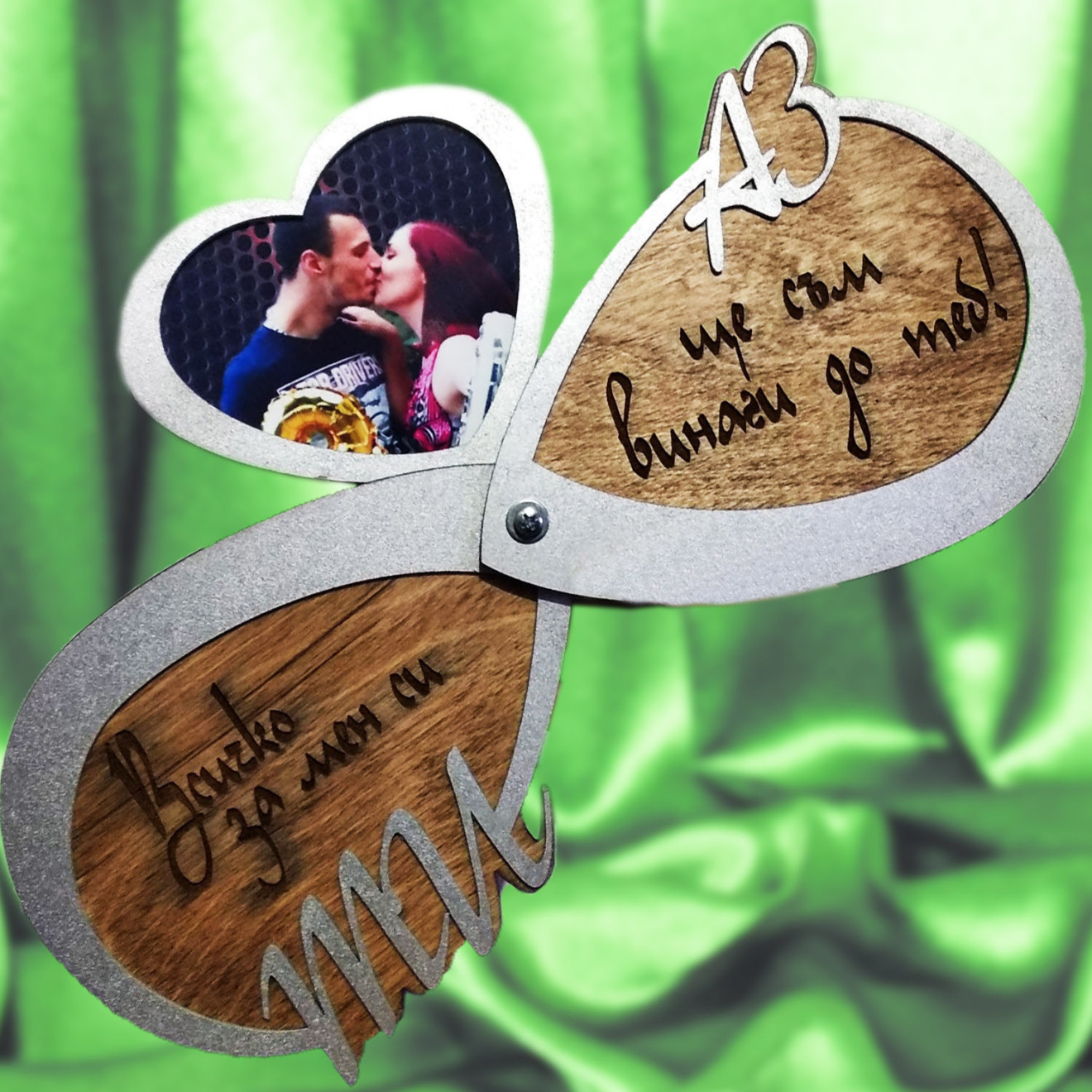 Рамка Механична картичка Безкрайност Лазерно гравиран модел от 3мм. брезов шперплат с рамка за снимка във формата на сърце!