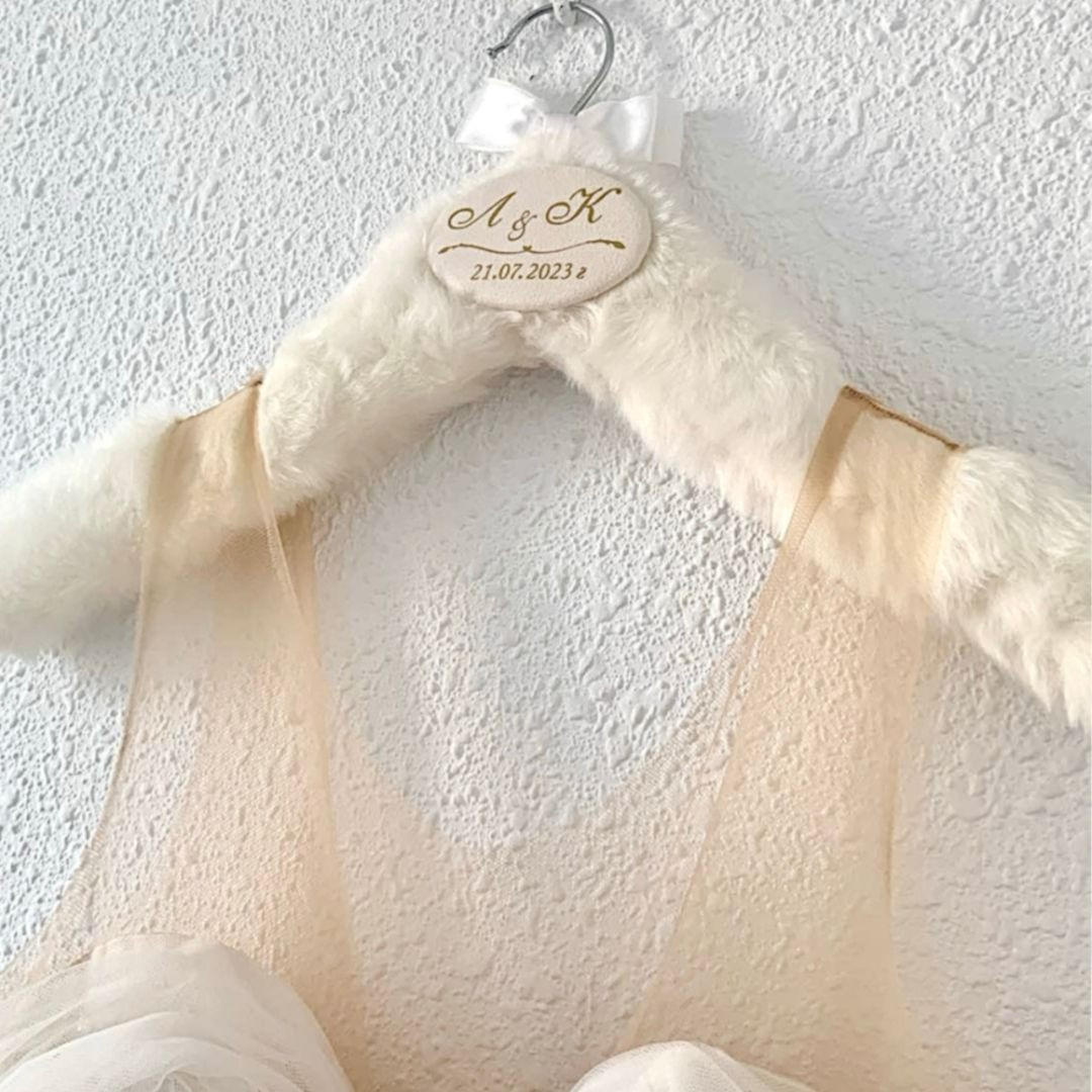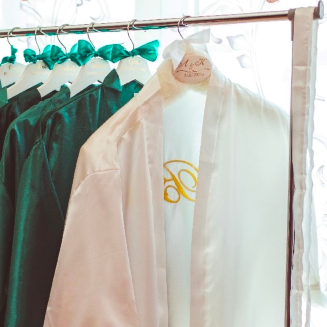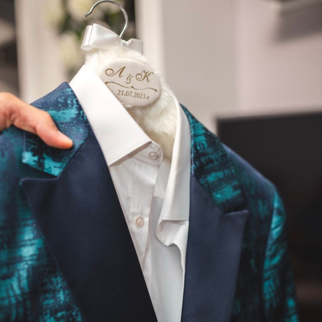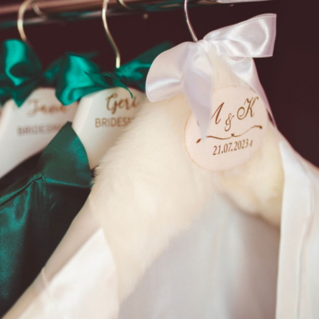 Елегантните дървени закачалки за дрехи на Crafts of Space са идеално допълнение към всеки специален повод – сватба, абитуриентски бал, кръщене и други. Те са малък детайл, който не само ще ти помогне да съхраниш специален тоалет, но и да запазиш спомена от този важен ден ден за дълго. Всяка закачалка може да бъде персонализирана с имена, инициали, дата или друг текст по твоя преценка. Няма как да не отбележим, че заради стилния и изчистения им дизайн, закачалките ще направят и снимките от специалното ти събитие още по-впечатляващи и красиви. За нас е важно да ти предоставим един красив и завършен продукт, затова използваме само качествени материали, а всяка твоя поръчка пристига в красива и сигурна опаковка. Закачалките са дървени и облечени с мек пухест плат. Завършени са със сатенена пандела и нежна табелка с надпис.