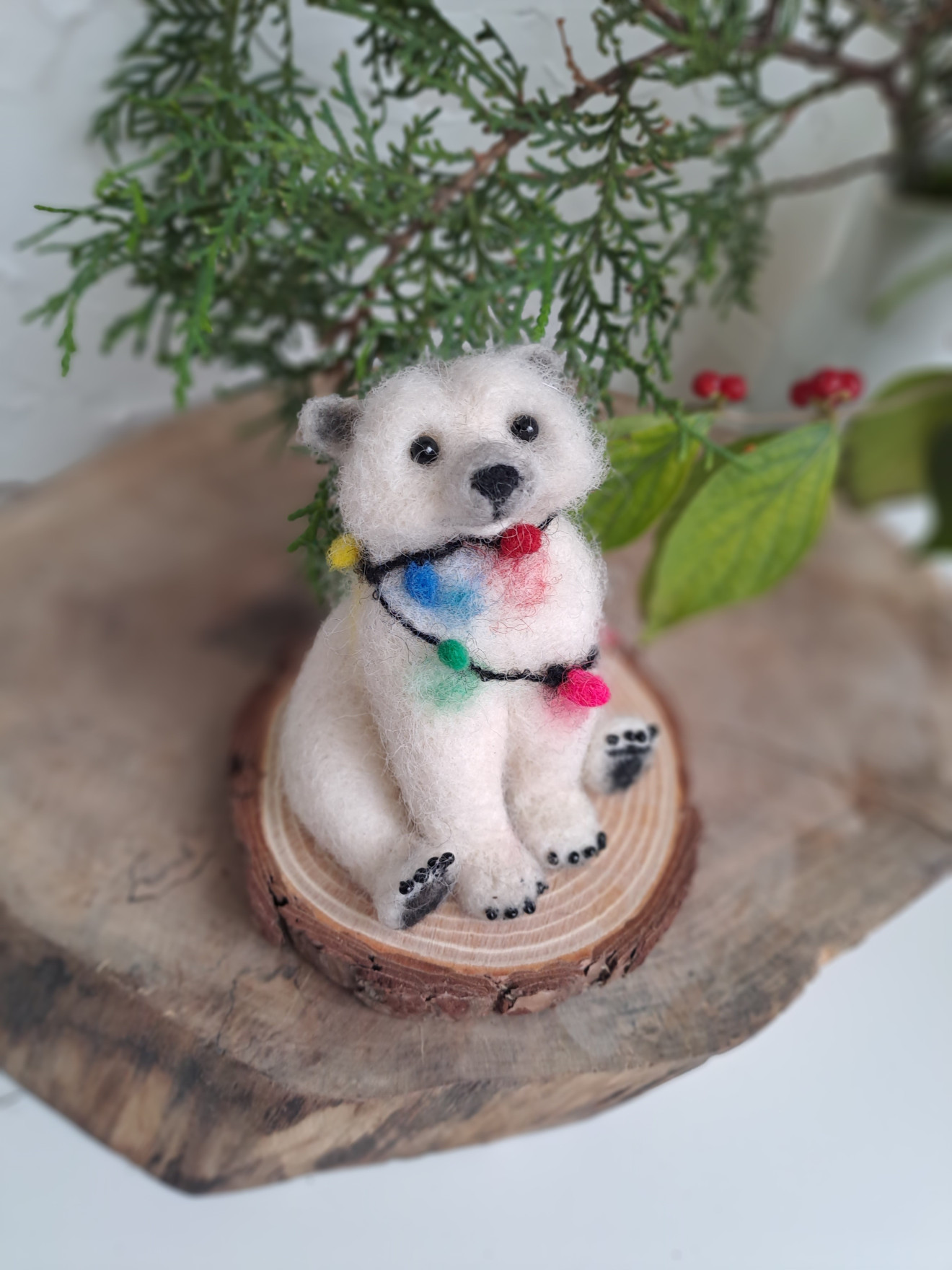 Меченце изработено от вълна със дървена стойка. Не е играчка !