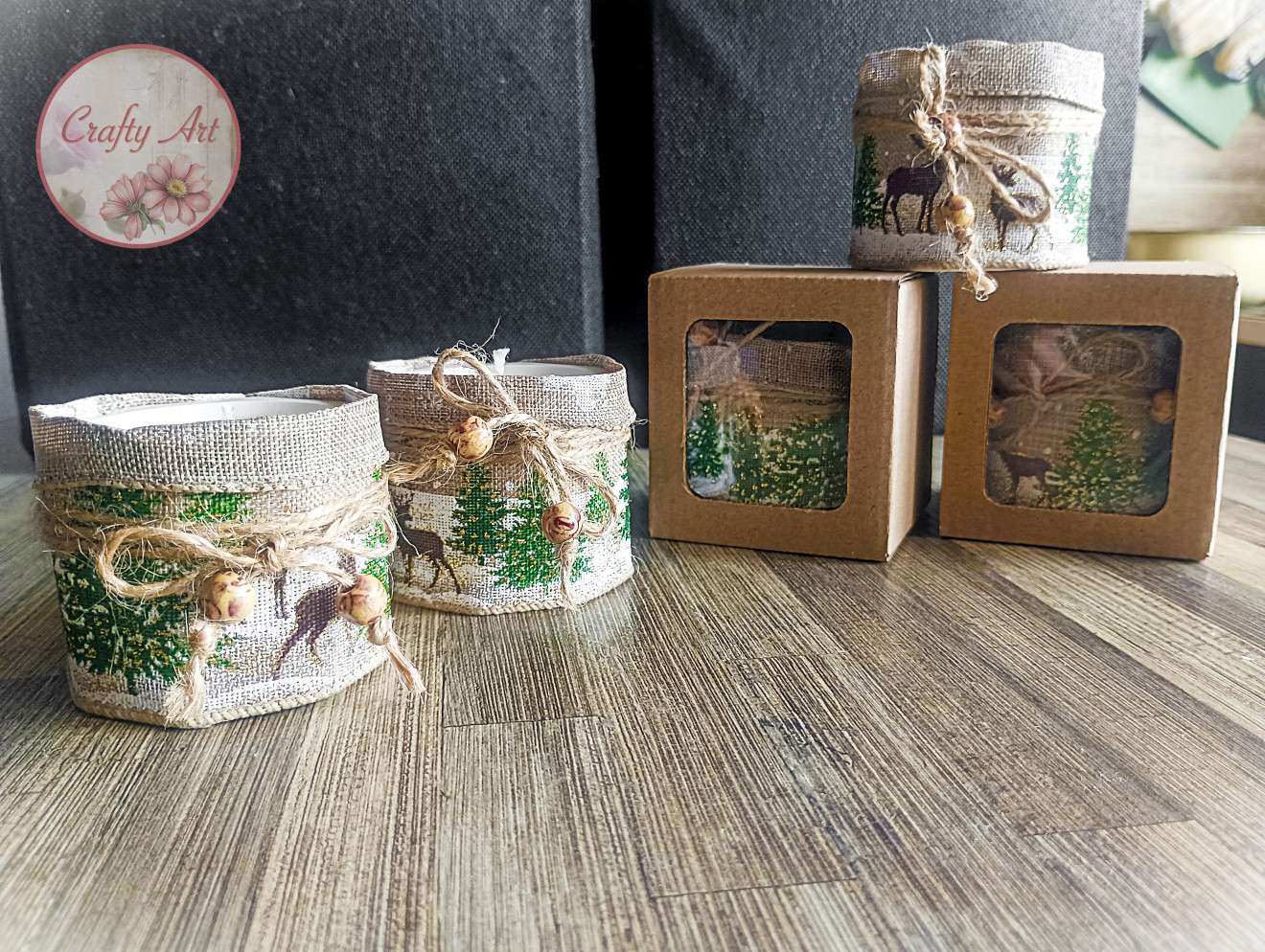 Ароматна коледна свещ в керамична кашпа с декорация. Свещта е изработена от чист натурален соев восък с добавени етерични масла, композиция от аромати - портокал и канела. Свещичката е старателно опакована в кутийка и подходяща за коледен подарък на любимите хора ?