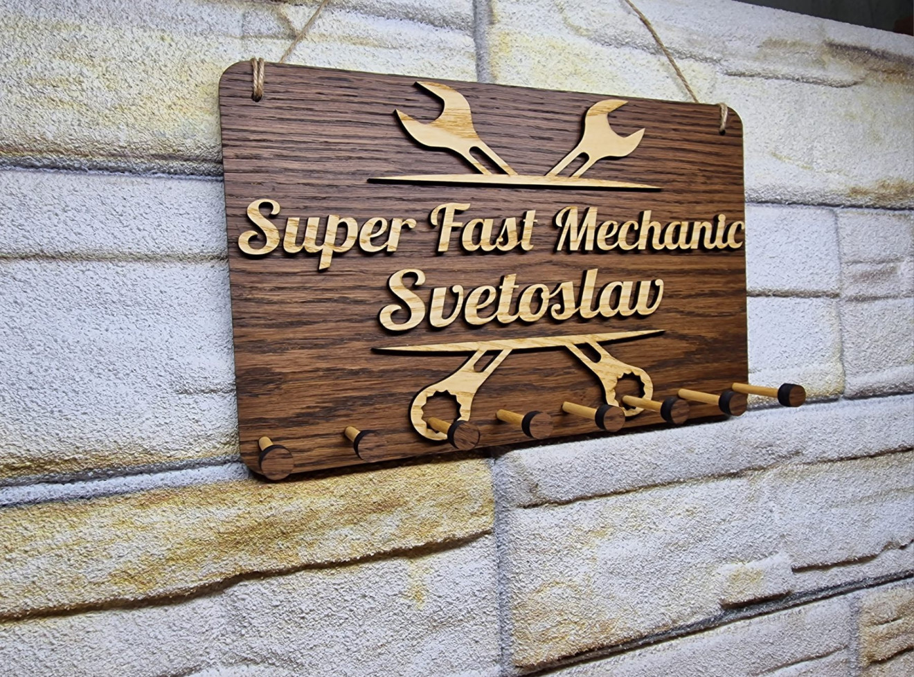 ✅Стойка за ключове по поръчка на клиент, която прекрасно се вписва в домашната ви обстановка. ✅Персонализиран подарък с отлично приложение за цялото семейство, или скъп човек, с възможност за избор на име, или ваш текст! ✅По желание на клиента, могат да бъдат добавяни различни декоративни елементи. ✅Стойката е с отвори за монтаж на стена и канапено въженце, при желание за окачване. ✅Изработена с огромно внимание и според вашите изисквания! Размери: Дължина: 29 сантиметра Широчина: 18 сантиметра ?В нашата работилничка можем да изработим за вас: ✅Табела по желание и идея на клиента ✅С ваш текст , орнаменти , размери и цветове по поръчка. ✅Табела за врата ✅Табела за веранда ✅Табела за градина ✅Табела за барбекю ✅Можете да зададете и конкретен проект, който ние да направим специално за вас ✅Надписи за детска стая ✅Табелка за детска стая или рожден ден ✅Табели и лого на футболни отбори ✅Табелка с номер за врата ✅Забавни и смешни табелки подходящи за ресторанти , заведения , бирария Идея и реализация: Ovech HandMade Тагове: ръчна изработка , персонализиран , подарък , поставка за ключове , поставка за ключове на стена , поставка за ключове за стена , дървена поставка за ключове , кутия за ключове за стена , стенна кутия за ключове , кутии за съхранение на ключове , закачалка за ключове , дървена закачалка за ключове , закачалка за ключове за стена , ключове , дом , подарък , персонализиран подарък , нов дом , стенна поставка за ключове , дървенa поставка за ключове , по поръчка , ръчно изработен подарък , дърво , табелка , сувенир , ръчна изработка , лазер , табела , декорация , декоративна , декоративен , декор , персонален , podaryk , podarak , podaruk , suvenir , хоби , ръчен , надпис , по поръчка , личен , врата , име , подарък , за дома , за апартамента , за градината , ръчна изработка , магазин за ръчна изработка , магазин ръчна изработка , оригинални подаръци ръчна изработка , сайт за ръчна изработка , hand made , handmade , хендмейд , хенд мейд , табели , табела отворено затворено , изработка на табели , табели с надписи , табели за магазин , указателни табели , табели за гараж , табела за магазин , изработване на табели , табела с надпис , рекламна табела , изработка на рекламни табели цени , информационна табела , табела с надпис по поръчка , табели по поръчка , информационни табели , изработка на табели с имена , луксозни табели за врата , табела отворено , рекламни табели цени , табела за врата отворено затворено , изработка на рекламни табели , табели за пощенски кутии , табели за заведения , табели за цени , табела отворено затворено цена , рекламна табела на фасада , табела за заведение , табели за офис врати , фирмени табели , табела за офис , отворено затворено табели , гравиране на табели за врата , табели за стена , табели за офис , изготвяне на табели , семейни табели , офис табели , поръчка на табели , изработка табели , табели цени , табели за бар , табела затворено , табелки за пощи ,