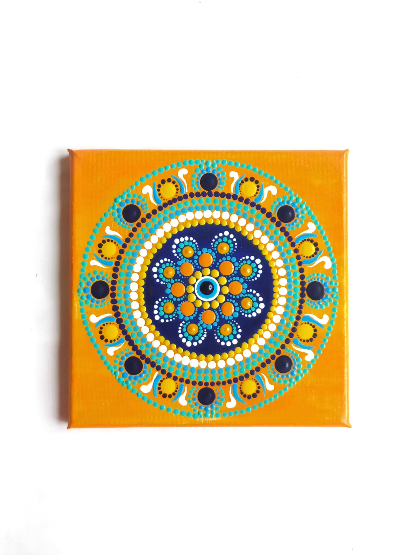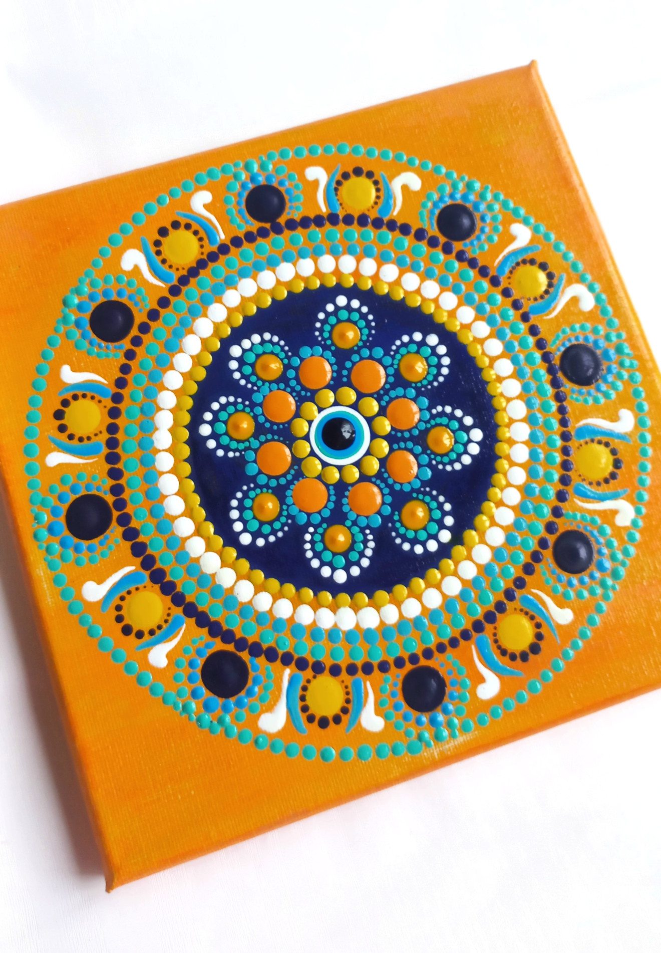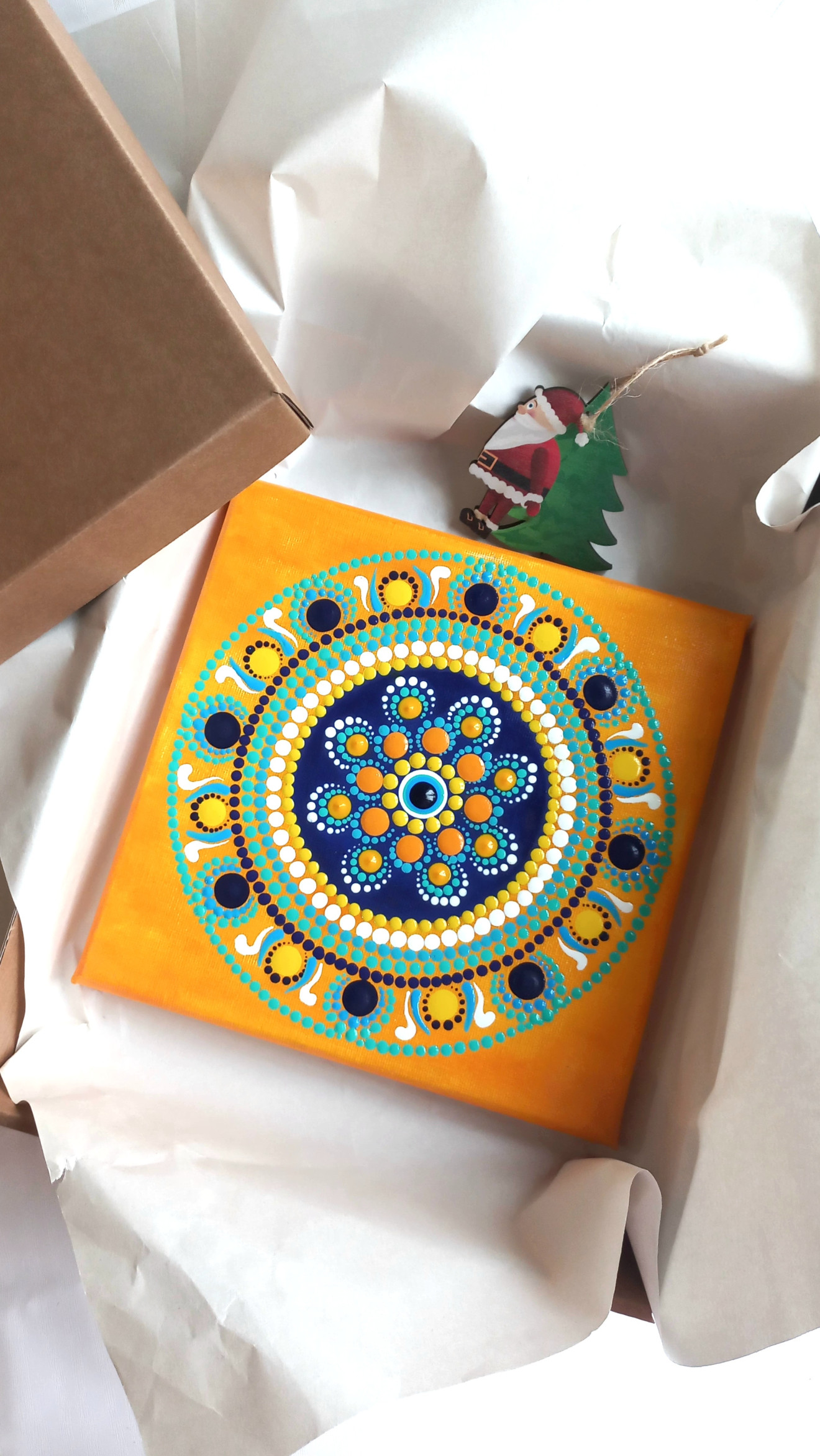Личната мандала е нещо много специално? Тя трябва да привлече душата и сърцето ви, да я почувствате. Мандалите неутрализират негативните енергии във вашето вътрешно?♀️ и външно пространство? Цветовете във всяка мандала имат своето значение. Малко за цветовете: ? Синьото е духовността, действа добре на нервната система, успокоява и хармонизира. ?Оранжево - креативност, трансформация, самосъзнание - освобождава от всичко натрупано негативно, излишно и вредно. ?Жълто - учене, мъдрост, смях, щастие, изцеление и защита. ?Зелено - лечение на физическото тяло, повишаване на психичната сила, любов и грижа за природата и животните, преумножава. ?Лилаво – духовност, укрепва духовната сила, спомага за духовното развитие и осъзнаването. ?Бяло - чисти, неутрализира, рестартира, обнулява и спомага за духовна концентрация. Тази Мандала за стена е рисувана ръчно върху платно на рамка 20/20 см. с висококачествени акрилни бои. Защитена е с лак. Изпращам я опакована директно за подаряване със символичен Коледен подарък от мен, с опция преглед, без включена доставка. За да се свържете с мен, пишете ми съобщение или се обадете? #EnergyArtsBG