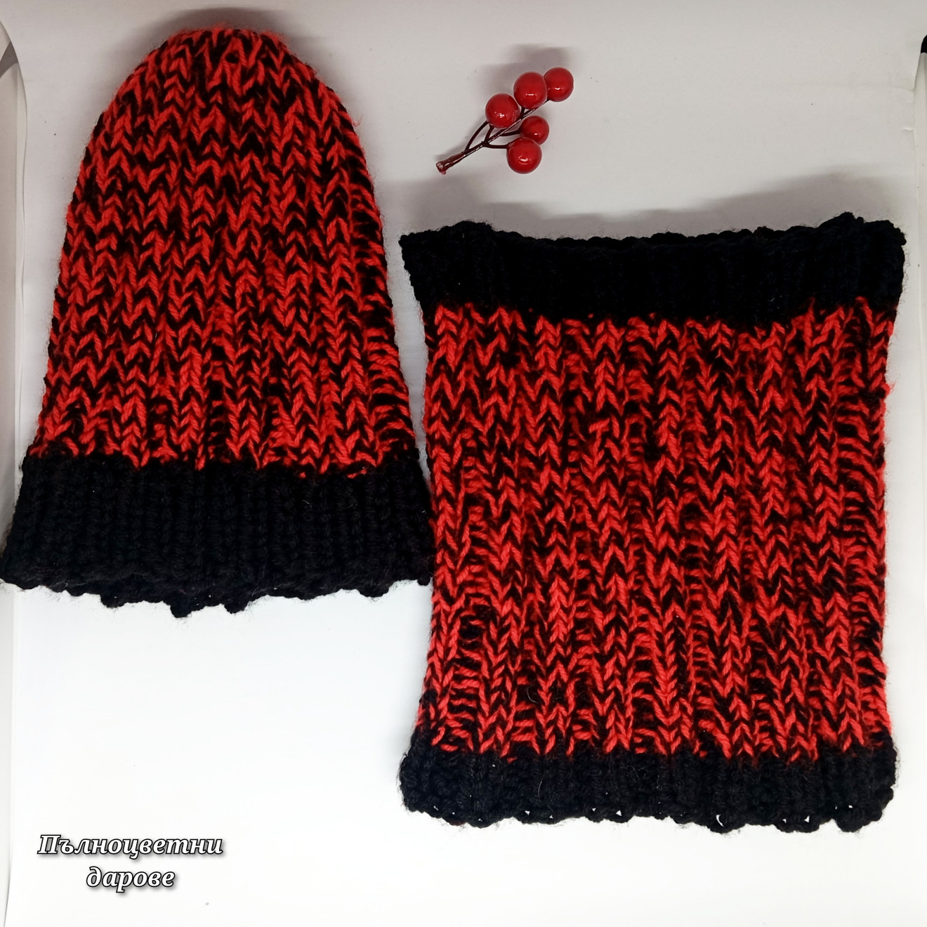 Комплект от ръчно изплетени шал и шапка за мъж или младеж, в червено и черно. Съвсем подходящ топъл и практичен подарък за празниците. Плетката е еластична, което прави размера универсален. ?Може да се пере в пералня и не изисква специални грижи. Състав на преждата 100 % акрил. ✨ Възможно е да се изработи в други цветове и да се добавят ръкавици. ? Всички плетива пристигат опаковани в кутия с панделка, готови за подаряване. ✨ Подготвят се индивидуално и може да се добави лично послание. Напишете съобщение, ако го познаете за себе си или за подарък. Поздрави! Пълноцветни дарове ?