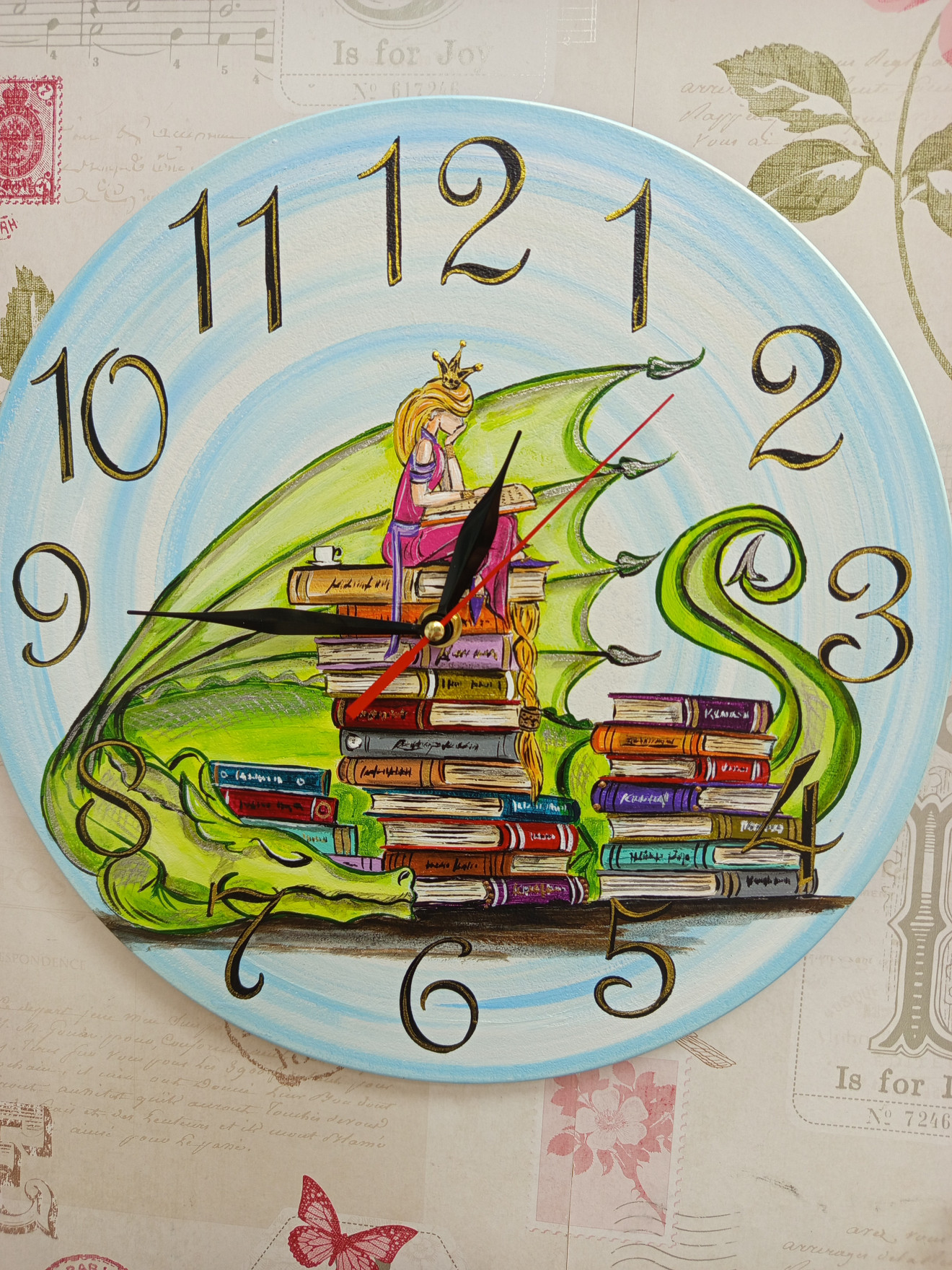 Часовник, изработен от МДФ, рисуван с акрилни бои, плавен, безшумен механизъм , 30 см диаметър