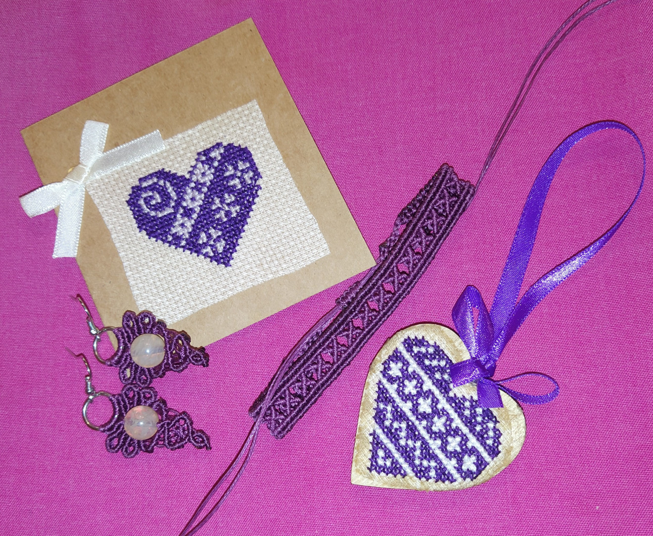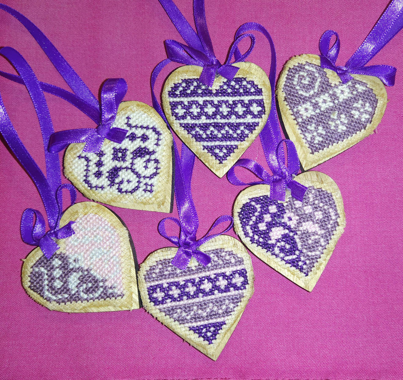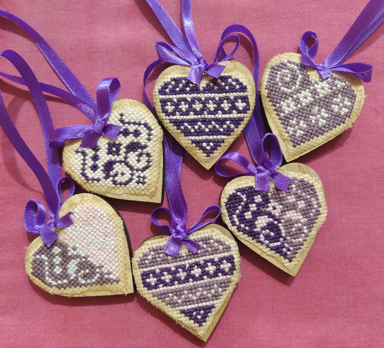Декорацията е направена от дървена основа във формата на сърце, аранжирана с ръчна бродерия и панделка за закачане. Декорацията би могла да се използва като допълнение към подарък за любим човек, за създаване на празнична атмосфера за Деня на влюбените, за подаръче към гости на сватба, моминско парти, кръщене, бал, юбилей или друго специално събитие. Артикула идва при Вас опакован и готов за подарък. Може да се изработи в други цветове. #лилаво #сърце #любов #бродерия #декорация