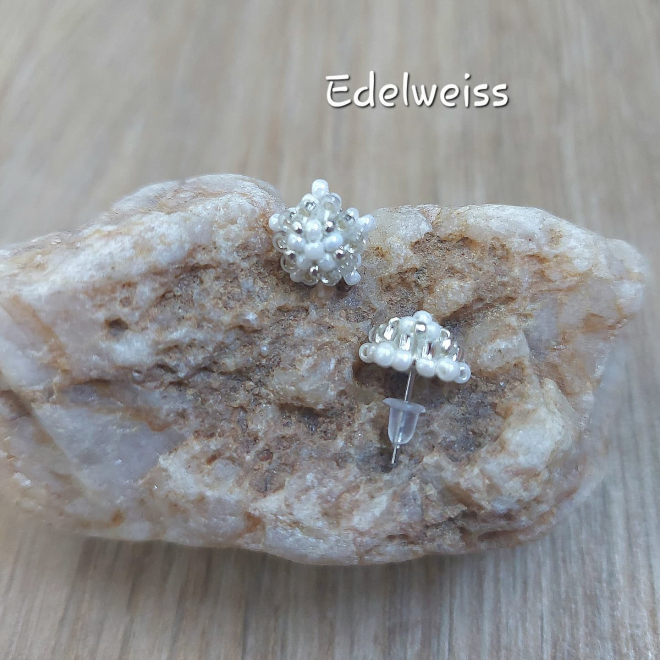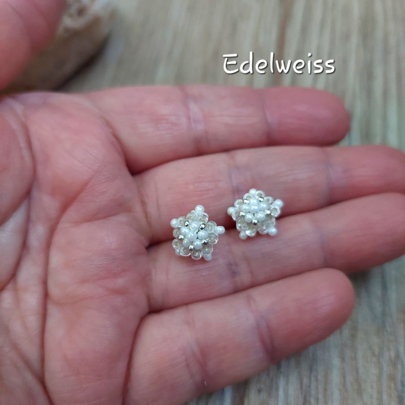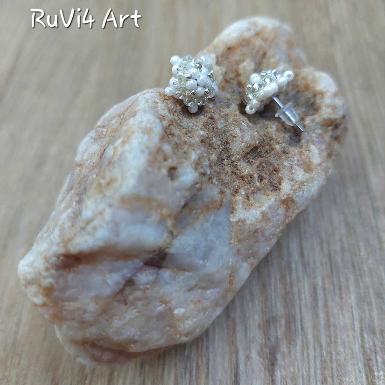 Обеци, изработени от японски мъниста Miyuki и стоманени постове.