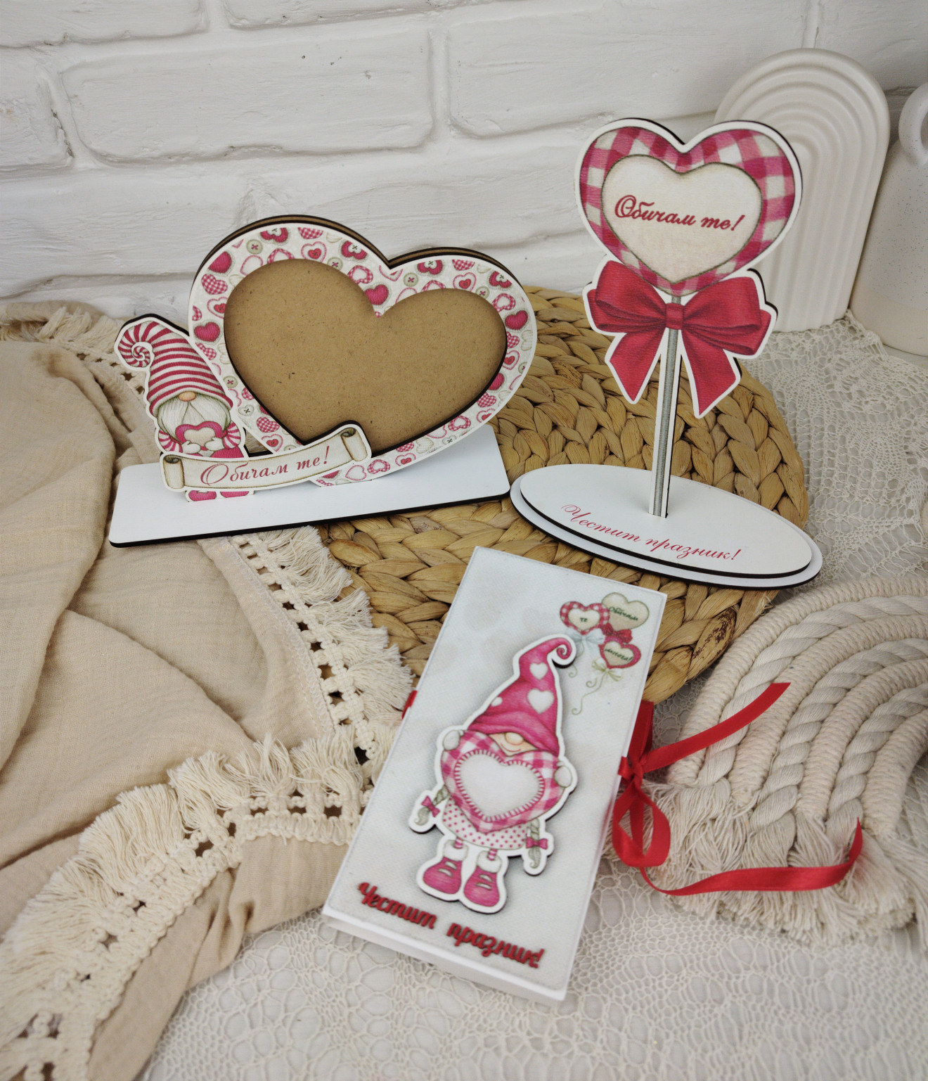 Ако търсите подарък за половинката, за да покажете колко много го обичате- този комплект е за вас ☺️ Комплектът съдържа - рамка за снимка ( 21лв) - топер със стойка ( 7лв.) - шоколадница ( без шоколад) (15лв.) Може да се добави и дървен пъзел със снимка. ( 17лв.) Цената на пълен комплект е 55лв.