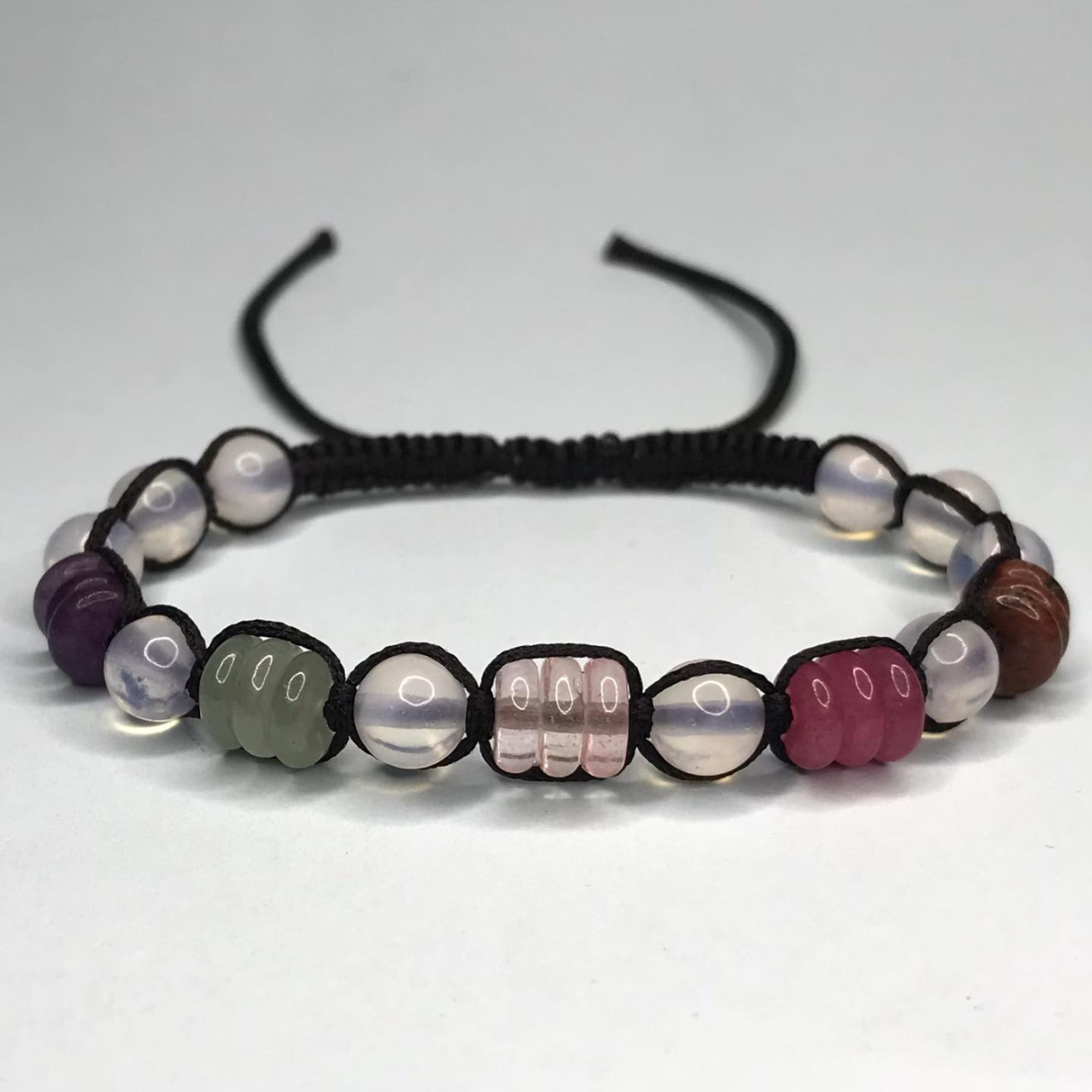 Лунен камък, аметист, амазонит, розов кварц, ахат, яспис. Дължината се регулира.