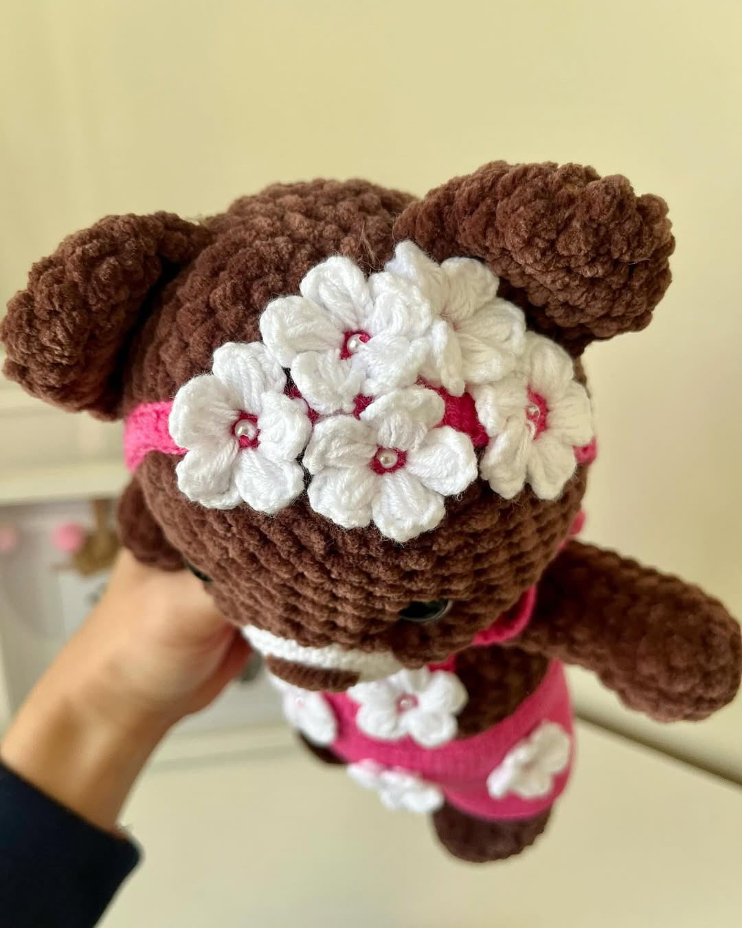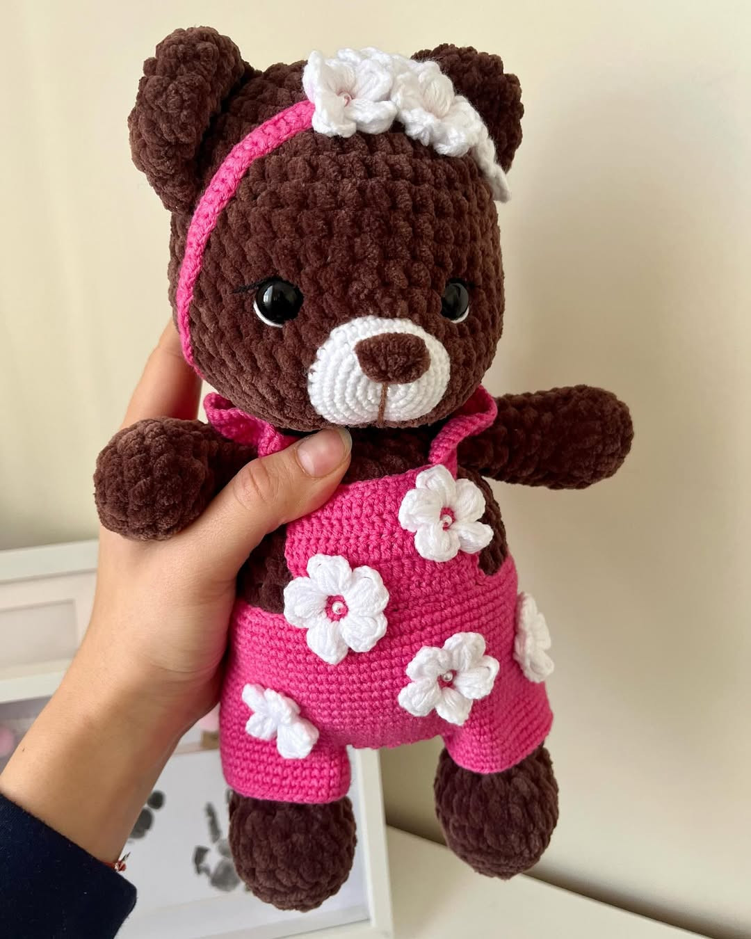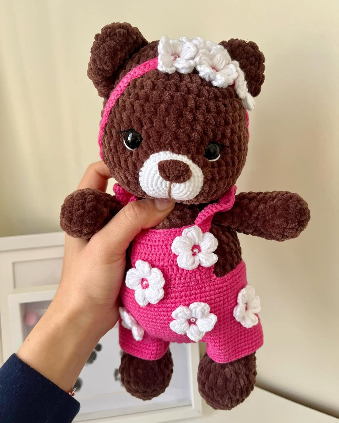 Ръчно изплетена играчка мече иска да зарадва една малка принцеса ?? ? Играчката е изработена от: ✅ Хипоалергенна прежда ✅ Памучна прежда ✅ С очи на винт ✅ Пълнеж от хипоалергенен пух
