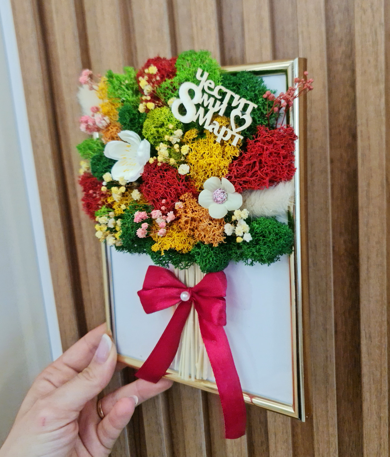 Уникален букет от скандинавски мъх! ? Представям ви нещо различно и стилно – букет, който остава свеж години наред, без никаква поддръжка! ✨ Какво прави този букет специален? ✅ Не увяхва и не изисква поливане ✅ Добавя естествена зеленина във всеки интериор ✅ Хипоалергенен и безопасен за деца и домашни любимци ✅ Идеален за подарък или декорация у дома ? Поръчайте сега и внесете свежест, която трае! Предлага се в рамка размер 15/20- 35лв, и размер А4- 50лв.