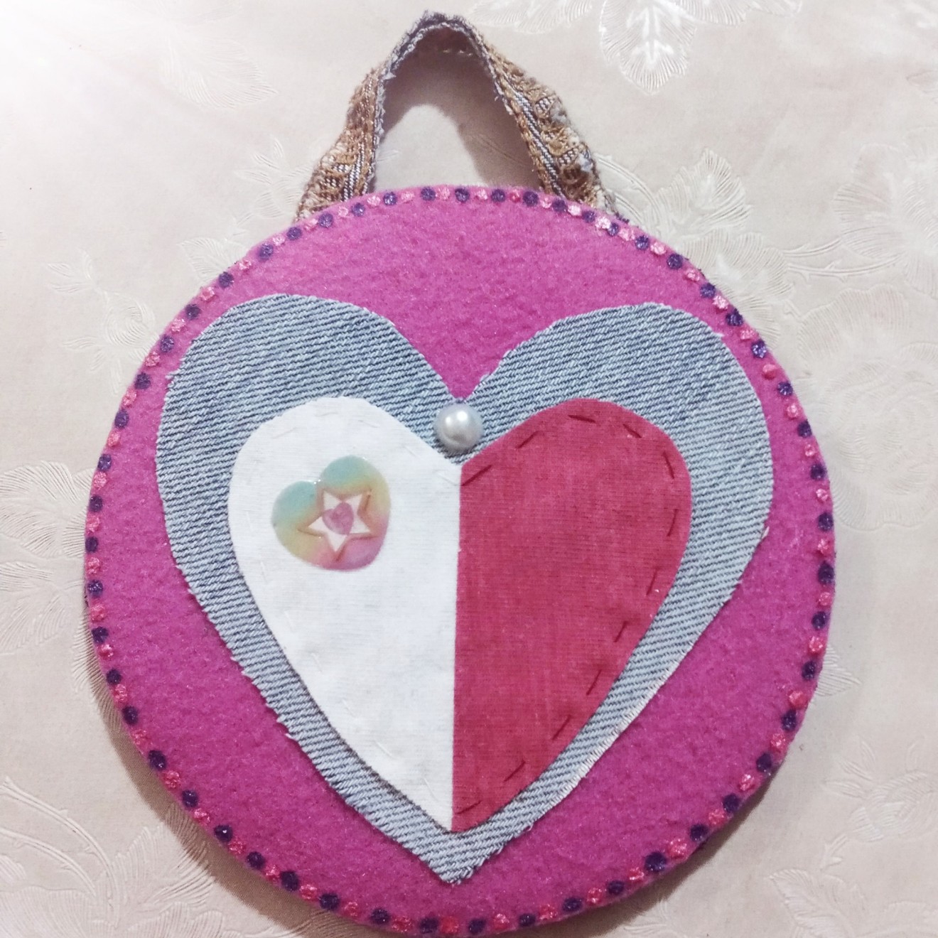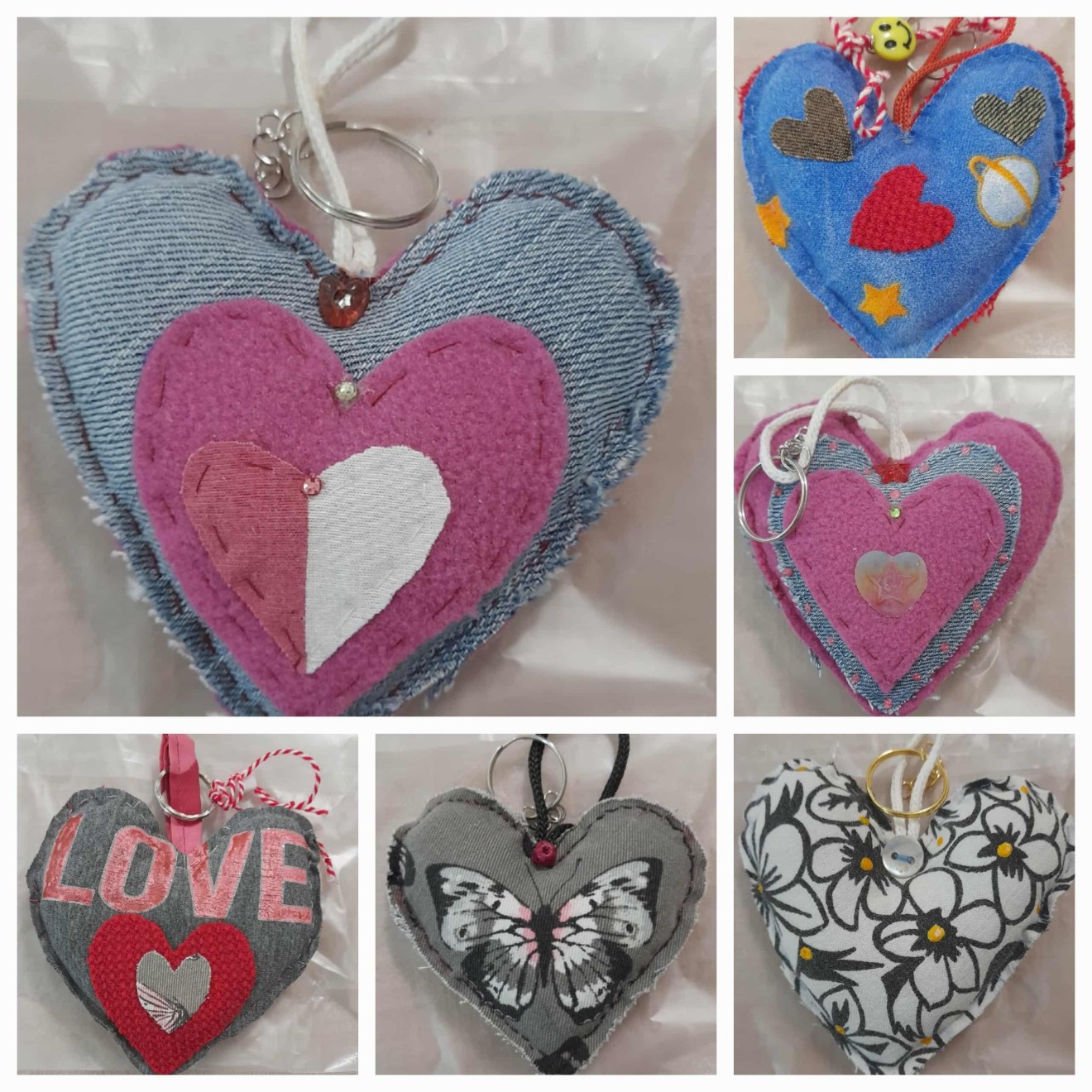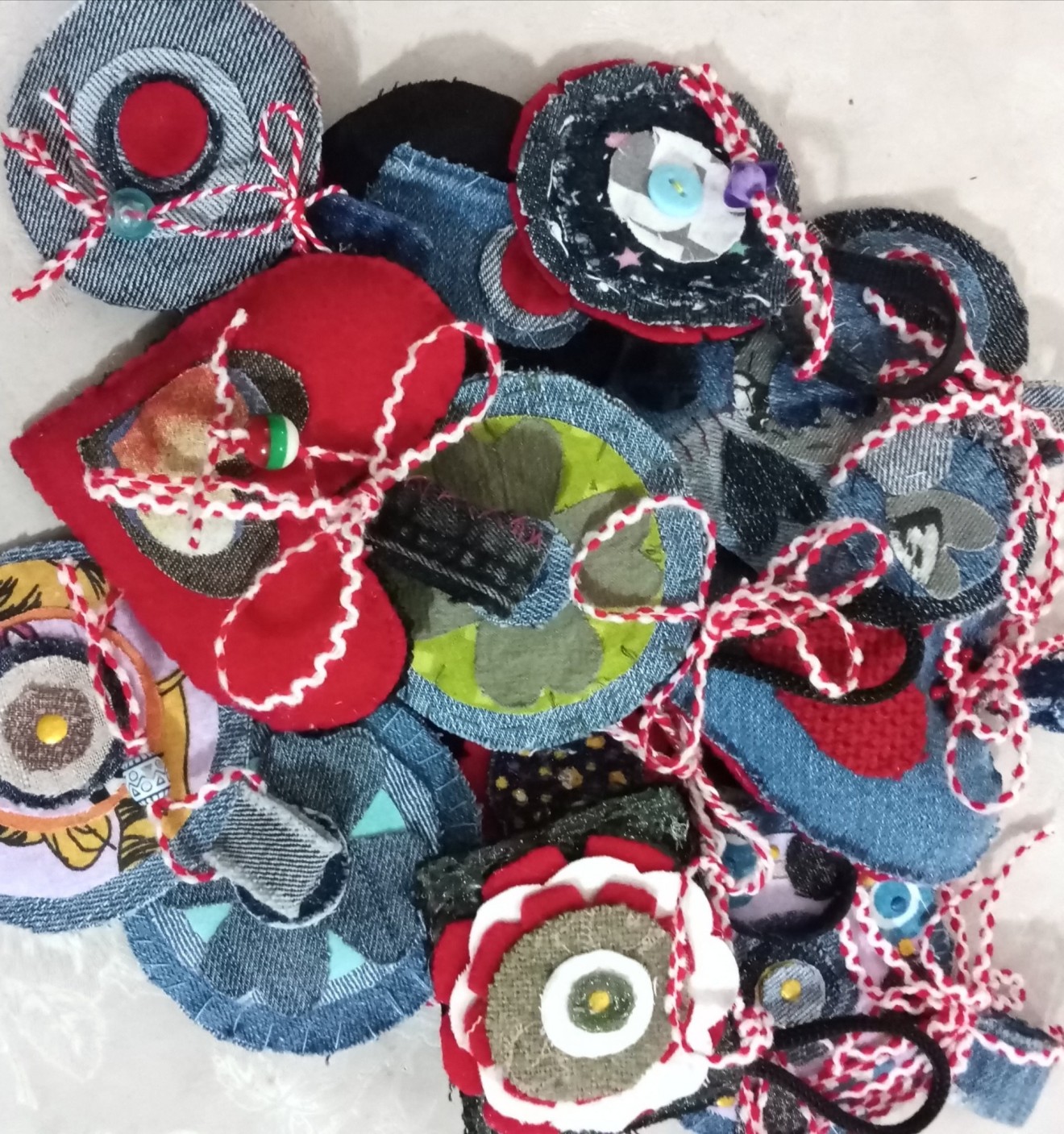 клик за цял р-р / На снимката са показани двете страни на едно сърце / Изработвам сърчица и още нещо от рециклиран материал. Подходящ подарък за всякаква въцраст и всякакъв повод. Нямат лице. От двете страни са с различна декорация. Месец март се предлагат с мартиница. След март може да се използват за ключо държател, аксесоар към раница, куфар, чанта или портмоне. Всички са с метална халка за окачване. Предлагат се в прозрачна опаковка. Могат да се използват и за украса на елха. Подходящи са за РД, ИД, с повод и без повод, и за млки, и за пораснали. Всички са различни по големина и изработка. / Изработени ръчно с търпение и любов. / 9, 10, 11, 12 см./ цени от 4лв. до 12 лв./ Много са . Може да ги разгледате на страницата ми https://www.facebook.com/MariyaMihailovaGeorgieva/photos_albums