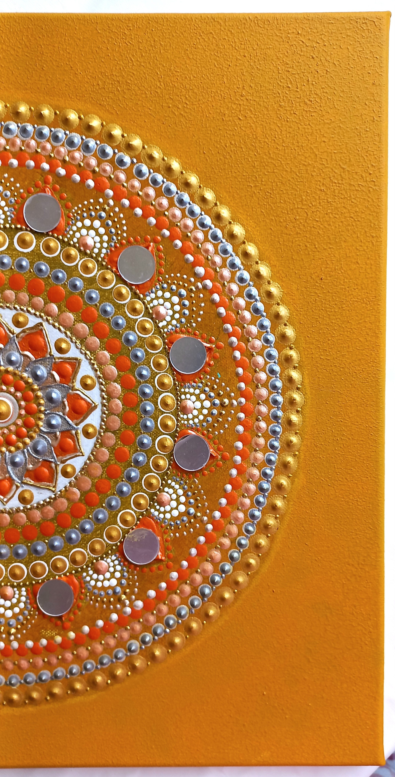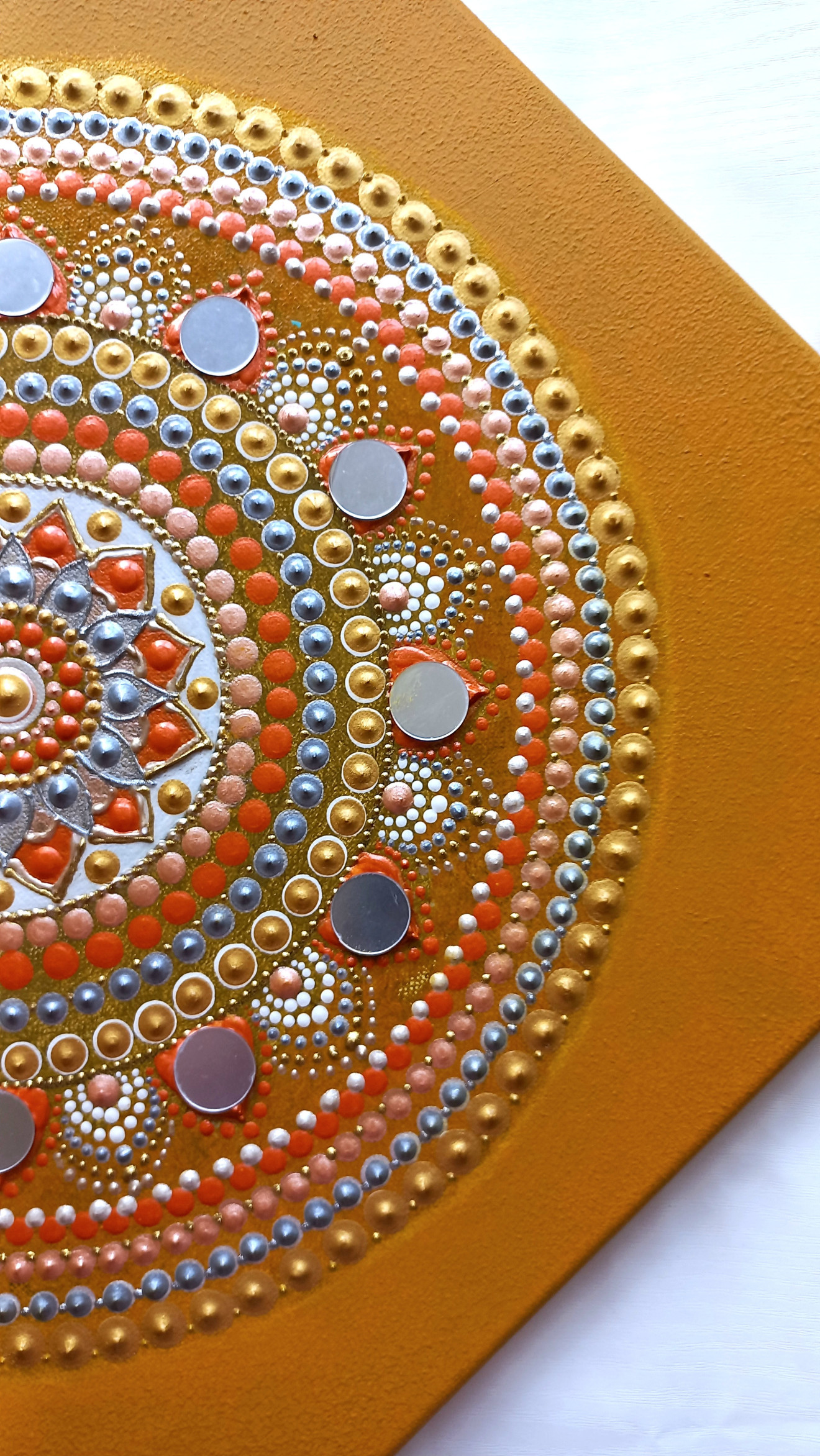 Мандала "Изцеление"? върху платно 40/40 см. е ръчно рисувана с вградени огледални елементи. Мандалата е за хармонизиране и изцеление на вътрешни и житейски аспекти? Налична е.? За въпроси и поръчки, пишете ни лично съобщение?