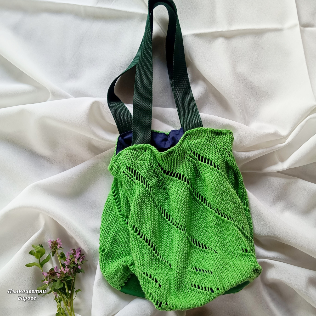 Плетена чанта за пазаруване, плаж или разходка. Височина: 36 см. Дръжки: 60 см. Тегло: 290 грама Квадратно дъно от изкуствена кожа с размери 21/21 см. ? Изплетена от памучна прежда, лека и мека, но достатъчно издръжлива. Има подплата с двоен вътрешен джоб от едната страна. И ще замени много на брой еднократни торбички, ако я държите в дамската си чанта. ✨ Конкретната е изплетена в зелено, но може да бъде във всеки друг любим на получателя цвят. ? Всички плетива пристигат опаковани в кутия с панделка, готови за подаряване. Ще е чудесен подарък за дама, която предпочита да използва торбички за многократна употреба и е загрижена за природата. ♻️ Когато продължително време сте използвали своята торбичка, препоръчваме да я изхвърлите в специалните контейнери за текстил. Така ще бъде преработена, след оценка на състоянието и състава на нишката. ✨ Пратките се подготвят индивидуално и може да се добави лично послание. ? Напишете съобщение, ако я познаете за себе си или за подарък! Поздрави! Пълноцветни дарове ?