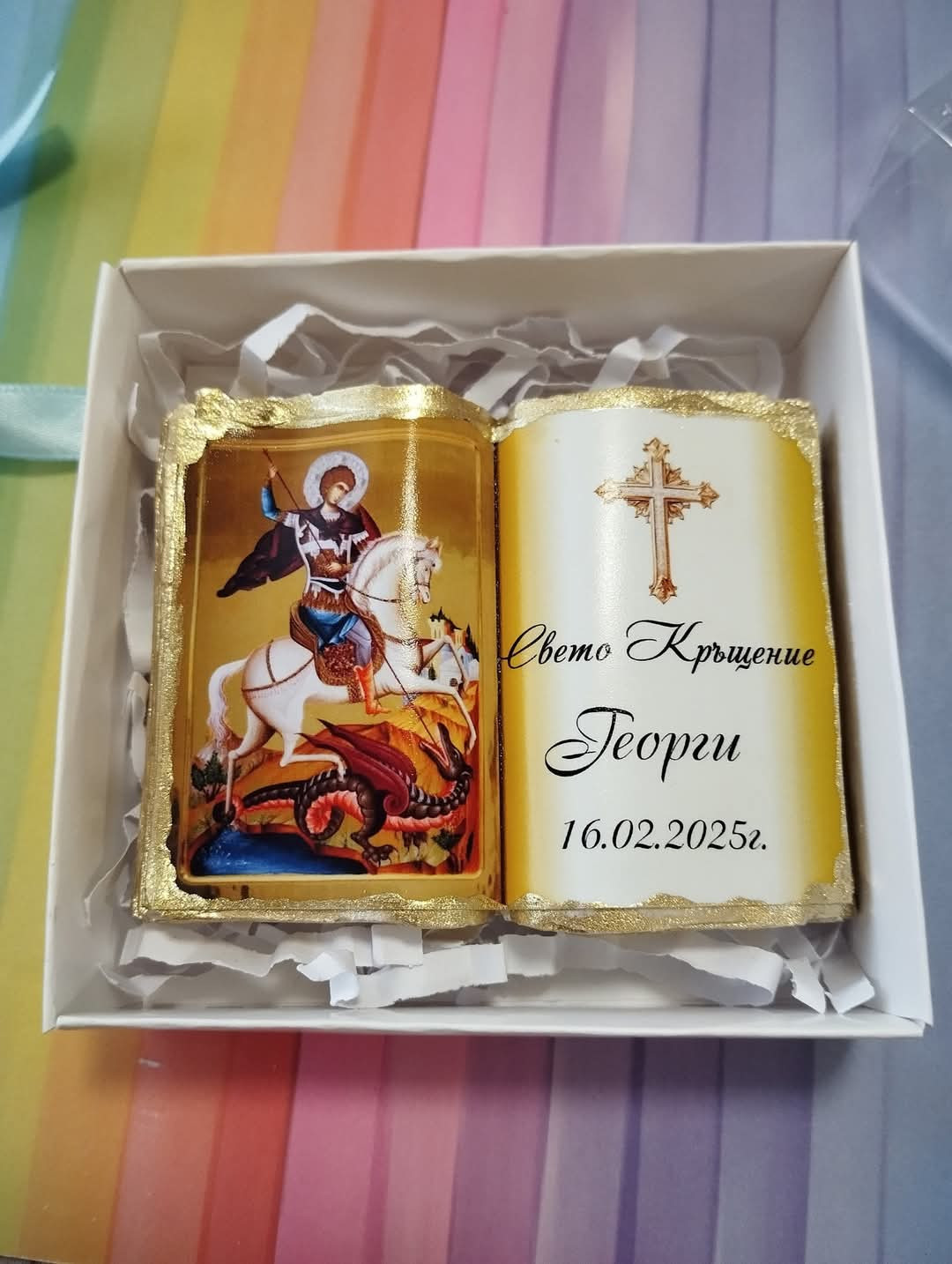 Книжката може да се изработи с образ на светец и надпис по ваш избор.