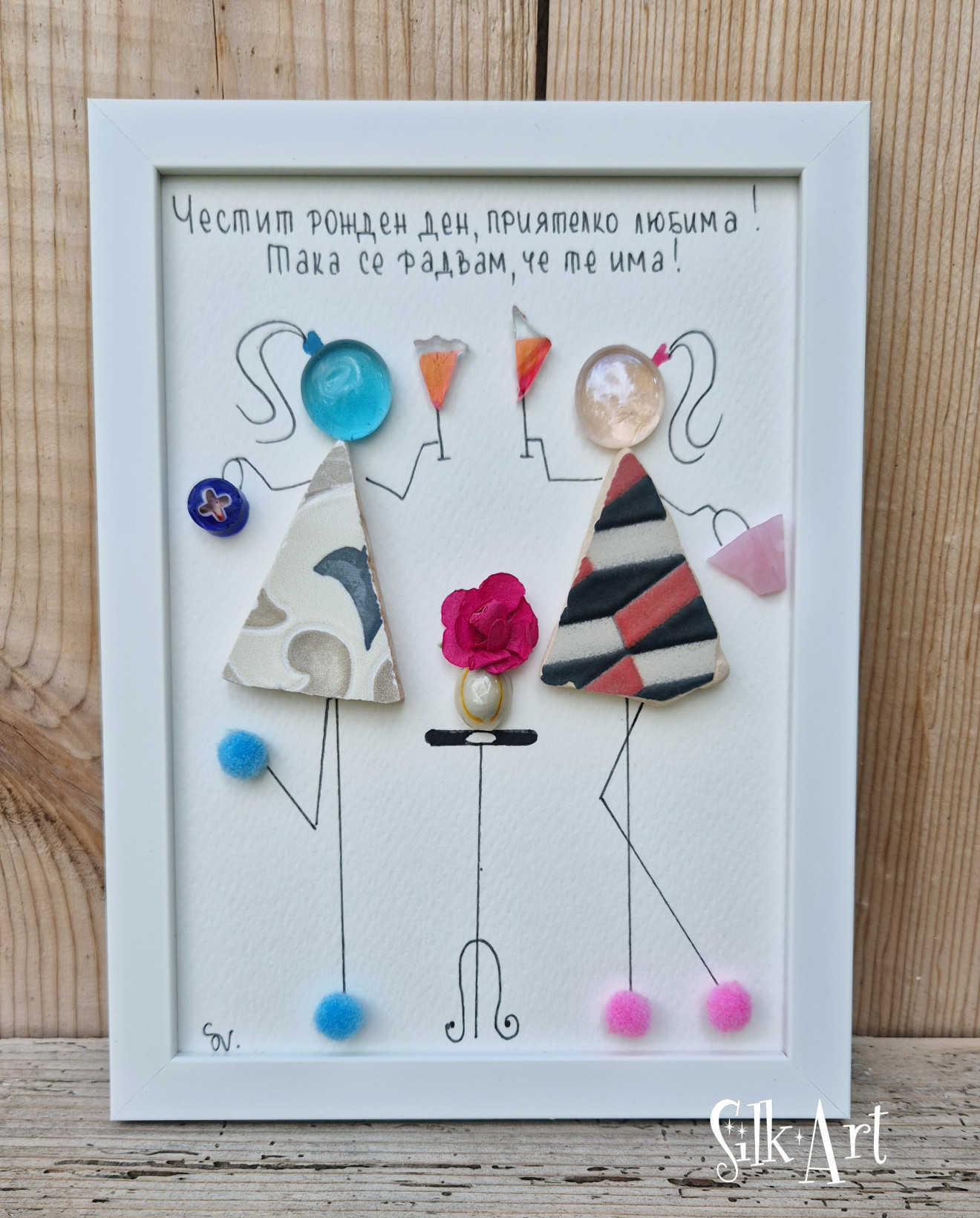 Рамка с размер 15/20 см. Декорация с парченца керамика.