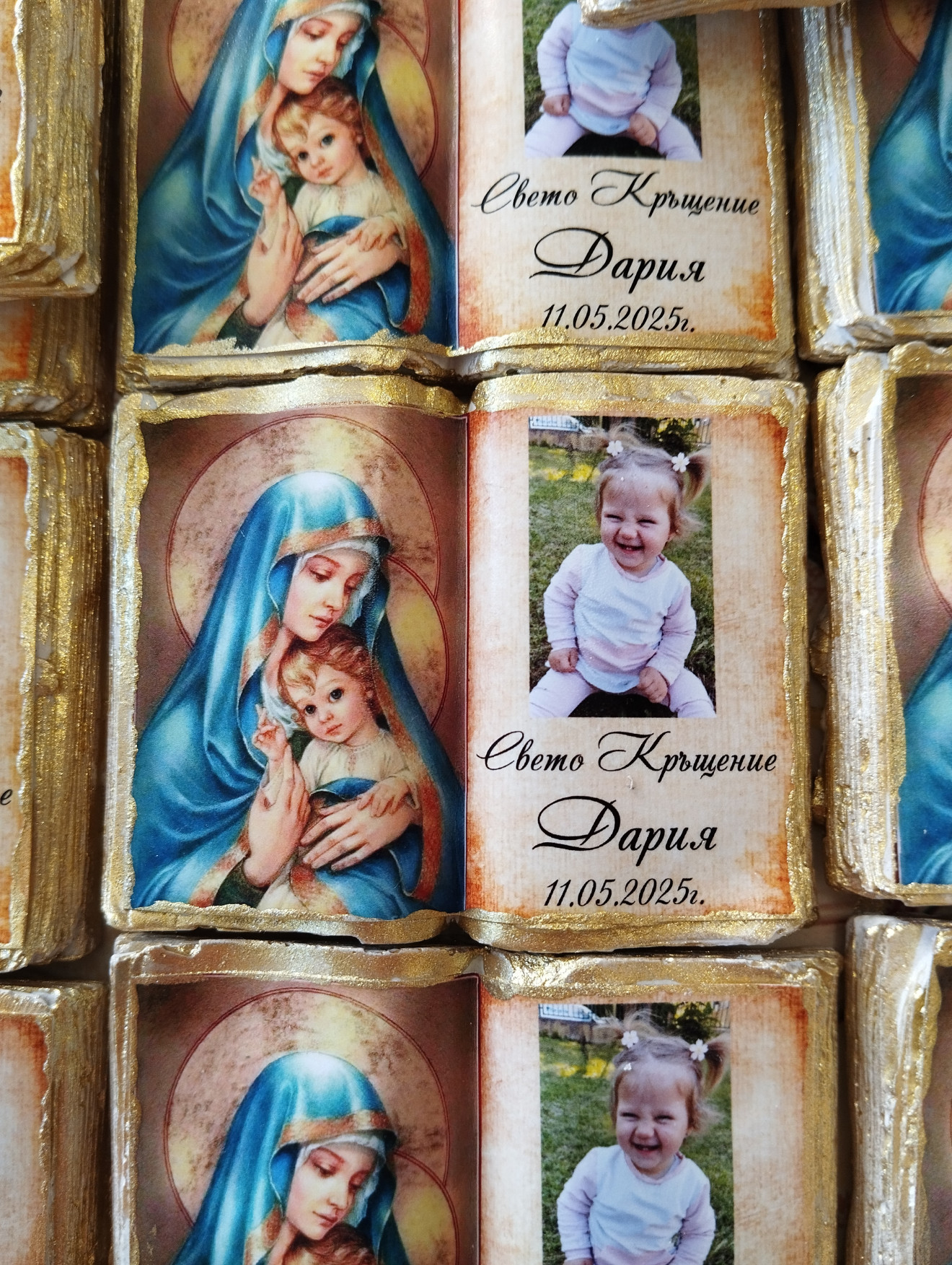 Керамична книга икона с Богородица и снимка на детенцето.