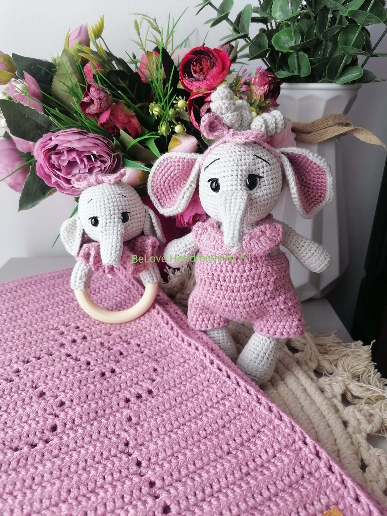 Сета за бебе включва Одяло 90/75 - 95лв.изплетено на една кука от 100% памучна прежда. Играчка 18см-45лв прежда 55%памук и 45%акрил Дрънкала 20лв. Безопасни очи, селиконов пълнеж дървен ринг. Може да бъде изработено и в цветове по-желание.