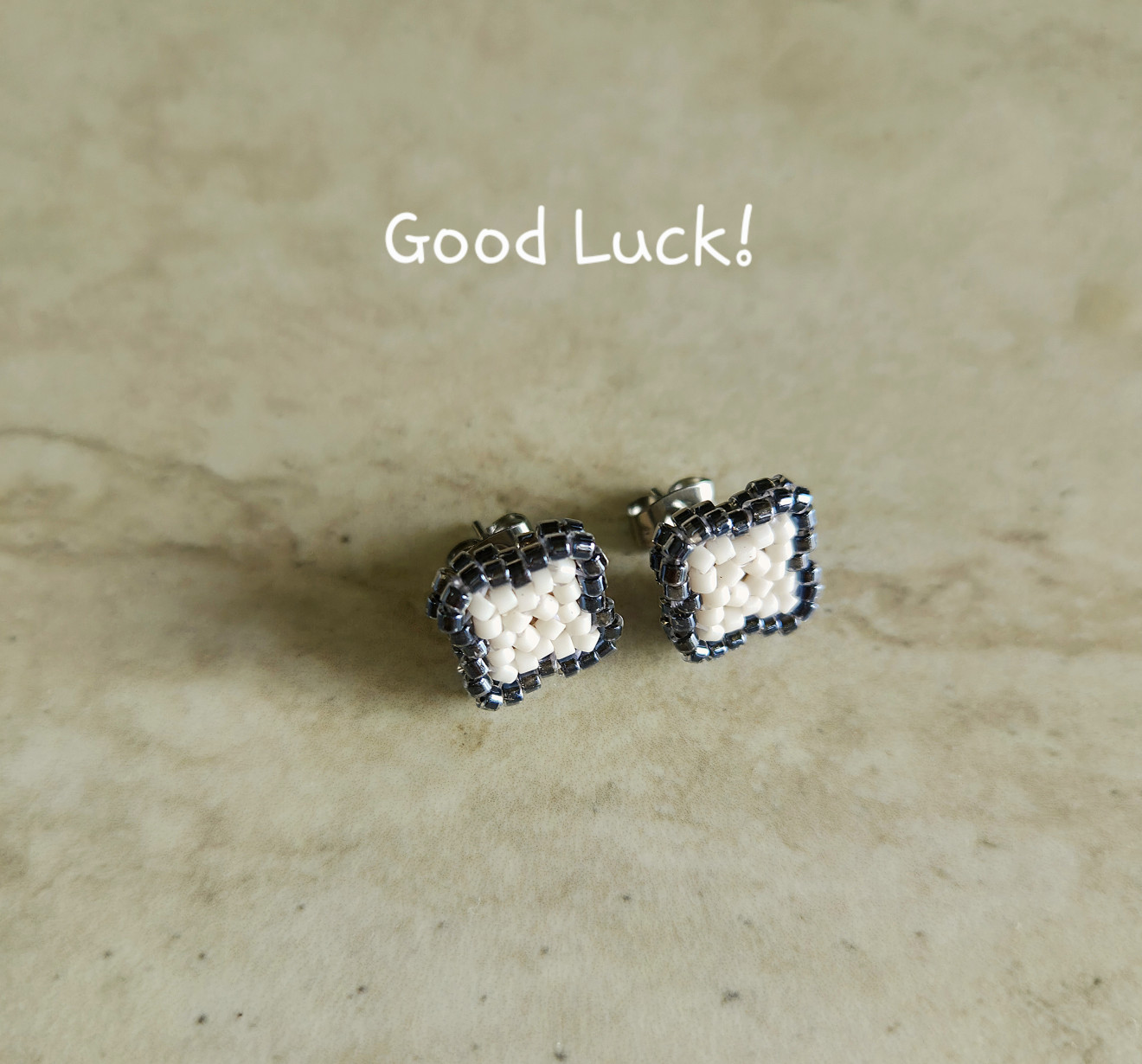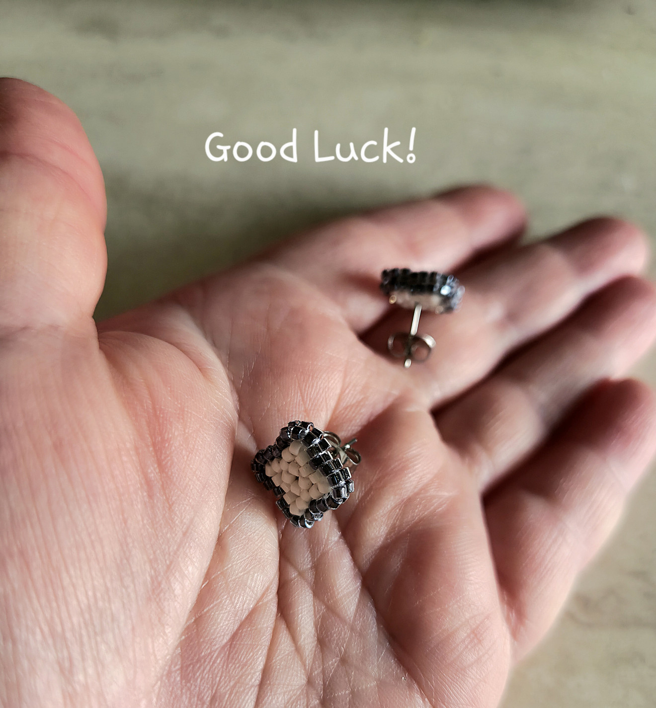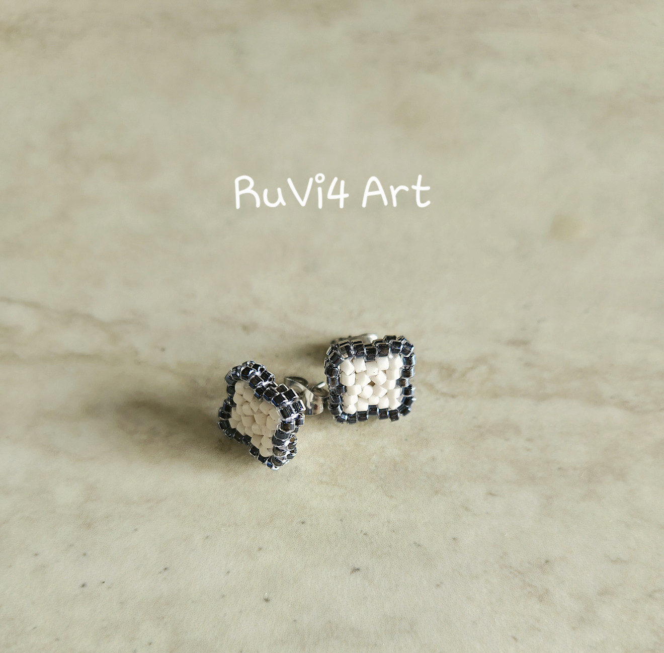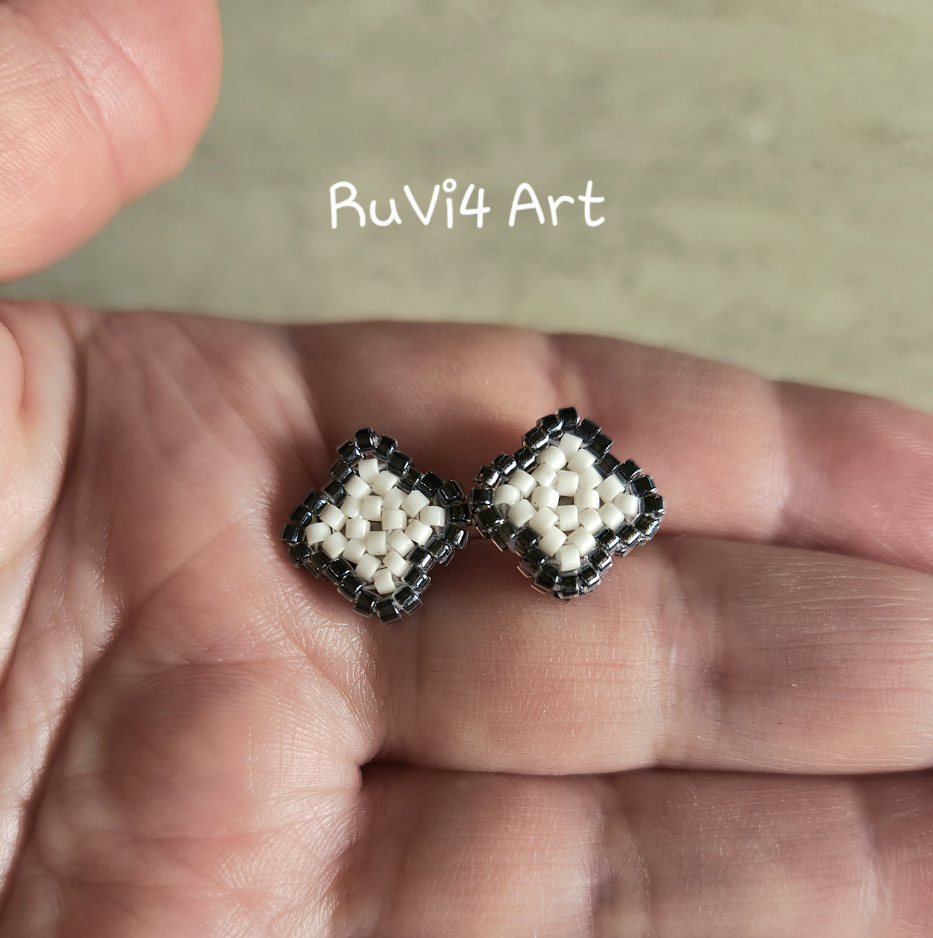 Обеци, изработени от японски мъниста и стоманени пинове.