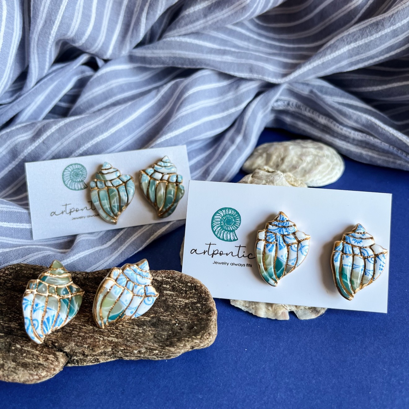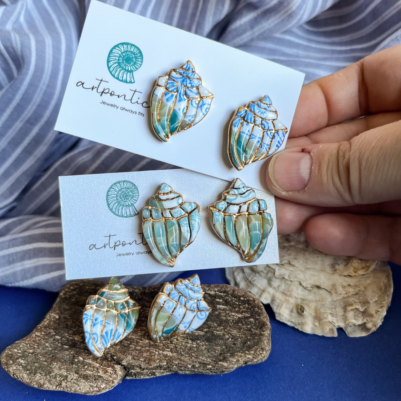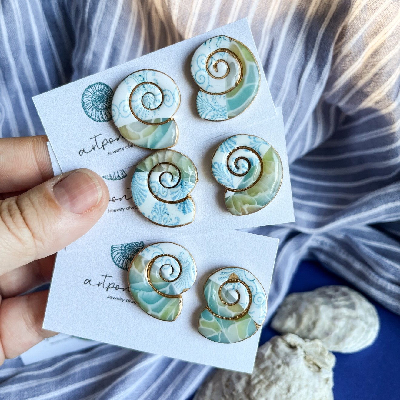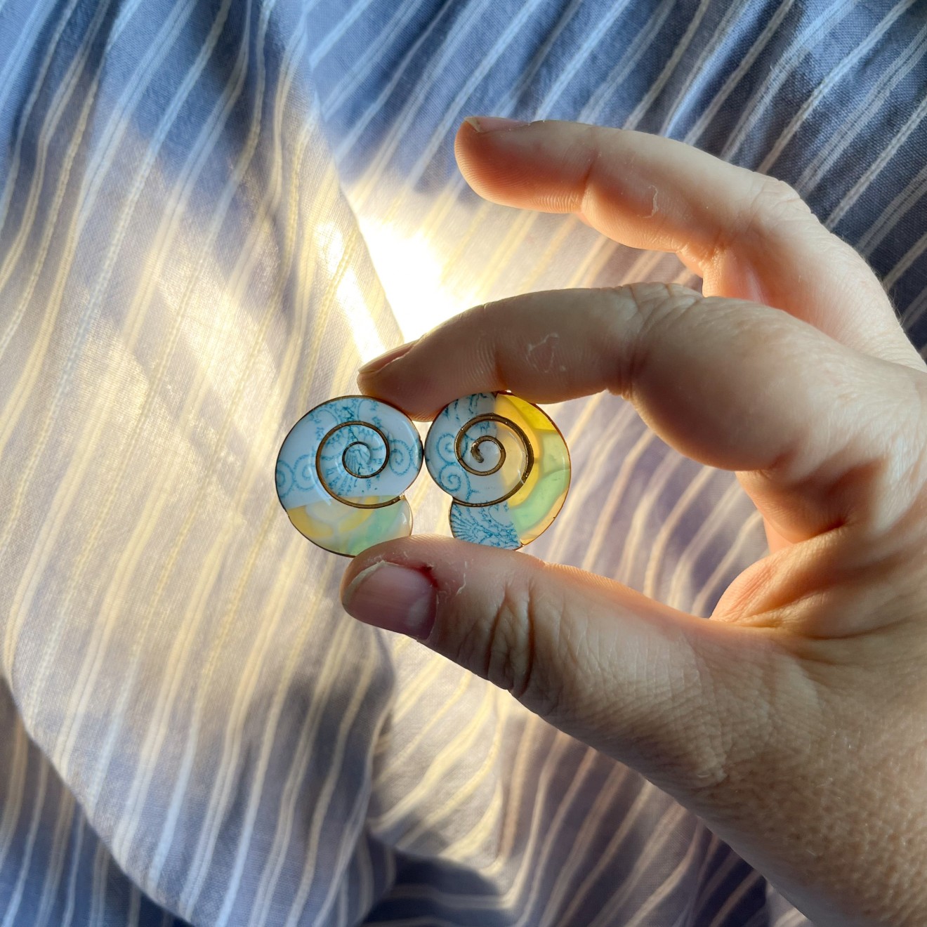 Нежни, в разкошни цветове. Полупрозрачна глина, оцветена с пигменти, стоманени щифтове, кант с течно злато. Цената е според размера, попитайте за налични.