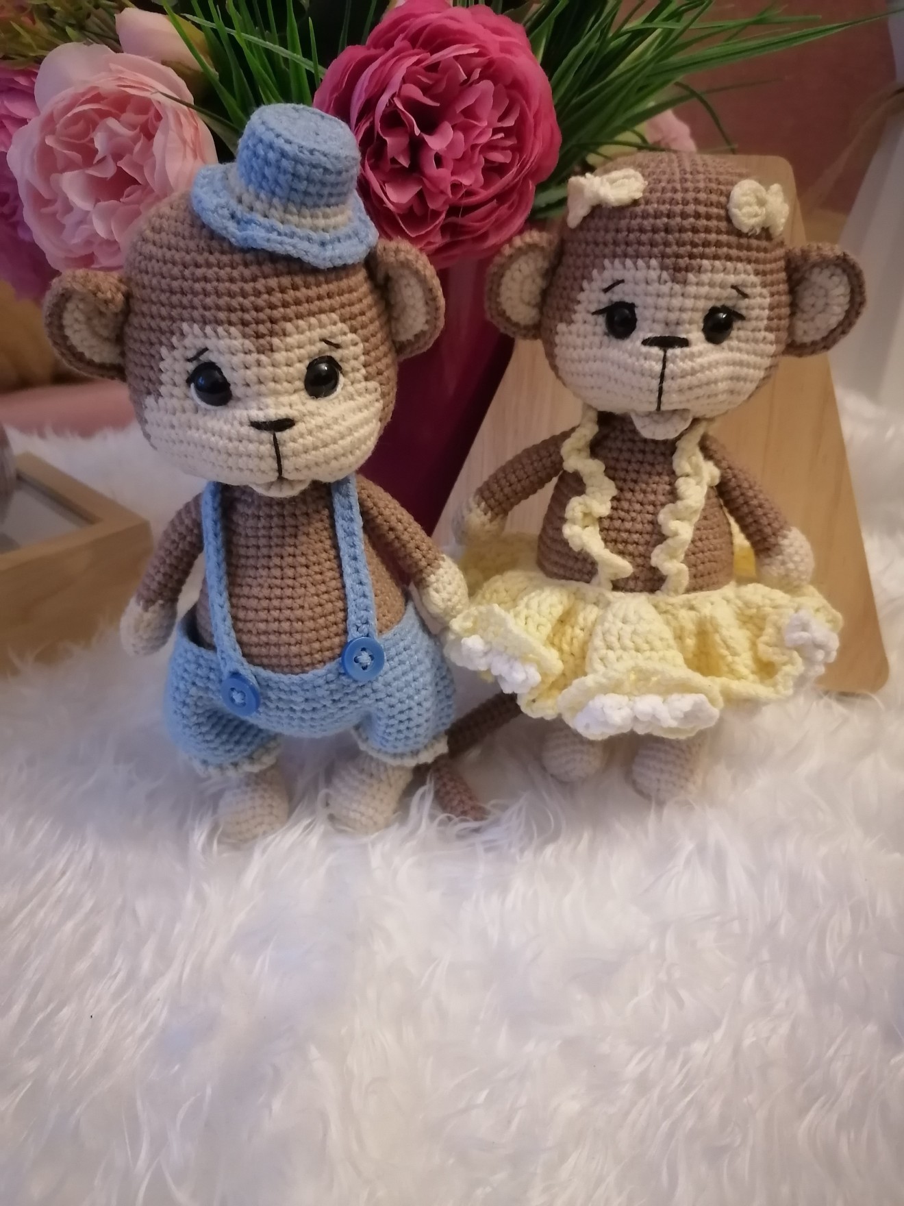 ✨ Запознайте се с най-сладките ни герои – маймунката Мими и маймунчето Макс! С ръчички за гушкане и усмивки, които носят настроение, те са готови да заиграят във всеки дом. 💛 🧶 Ръчно изработени на една кука 📏 ~20 см 🎨 Цветове по избор 🎁 Идеални за подарък, фотосесия или просто за обичане 👉 Пишете ни на лично, за да си запазите вашите Мими и Макс 💌