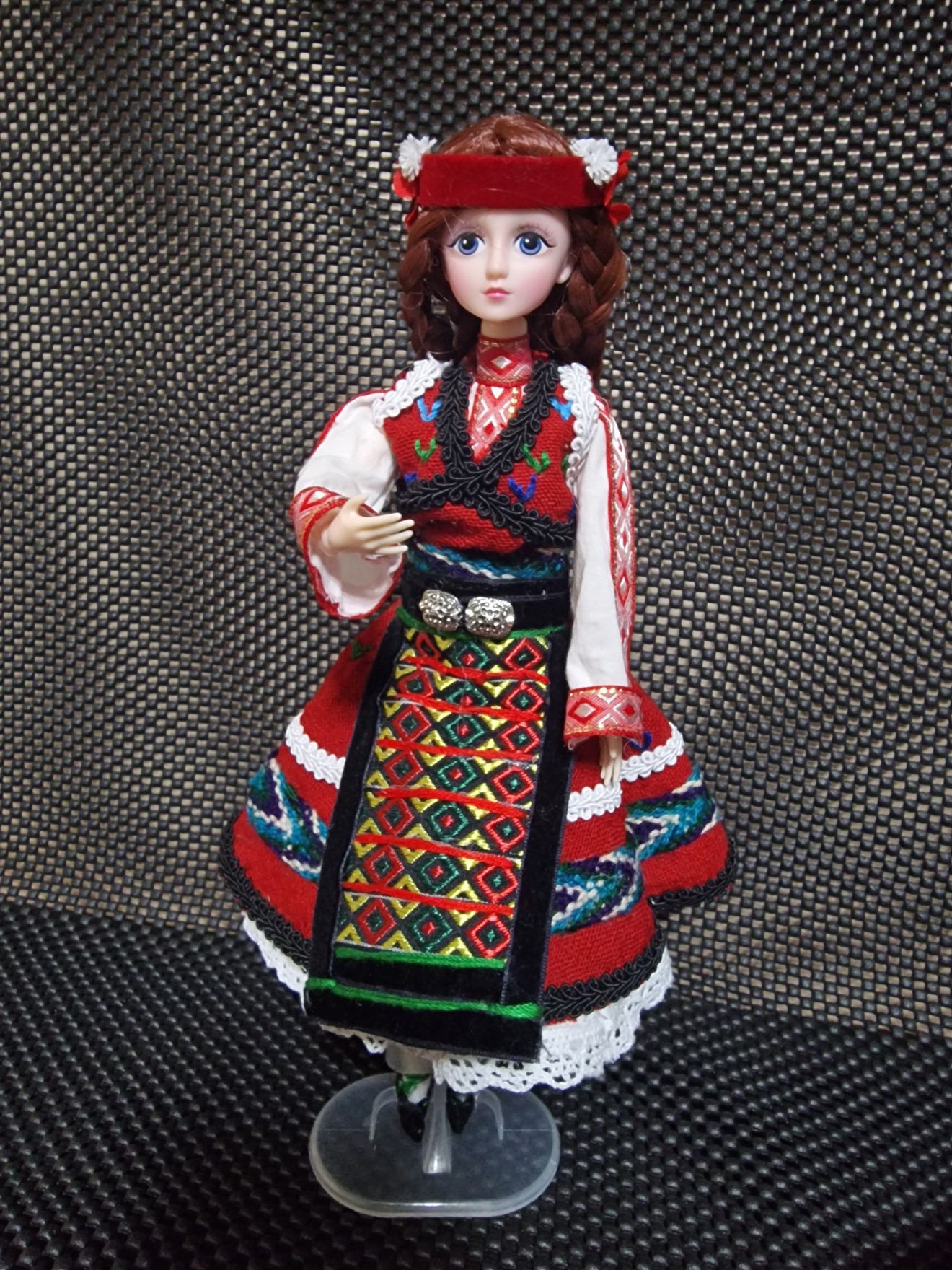 Кукла в носия от Добруджа. Използвала съм автентични платове.