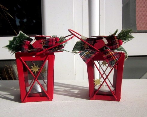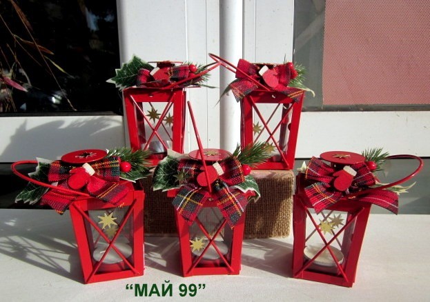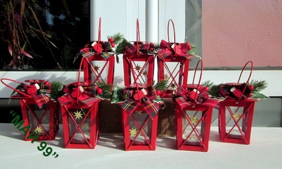 Коледен червен ,метален фенер 17 см/с дръжката/,зелени клонки,червена панделка,дървена ръкавичка и златни звезди! Чудесен коледен подарък за приятели или домашен декор!