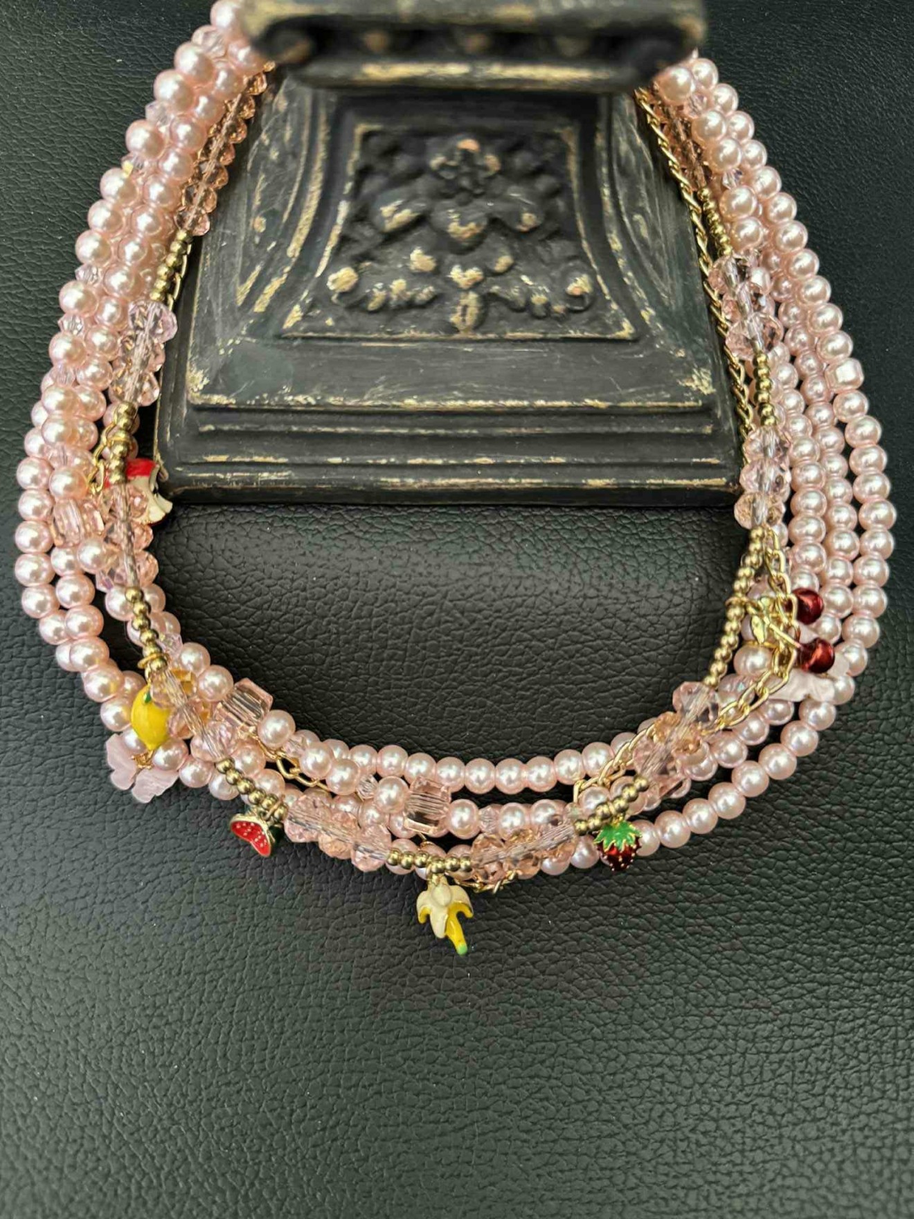 Когато перлите решат да си направят парти с кристали и плодове - се получава това колие! То не е просто бижу, а настроение за носене. Подходящо за всички, които искат да казват "Животът е сладък" без думи. Уникат - само едно такова, грабни го преди някой друг да го отмъкне! Опаковано в руксозна опаковка. Facebook: Бижутерия Арт Палитра