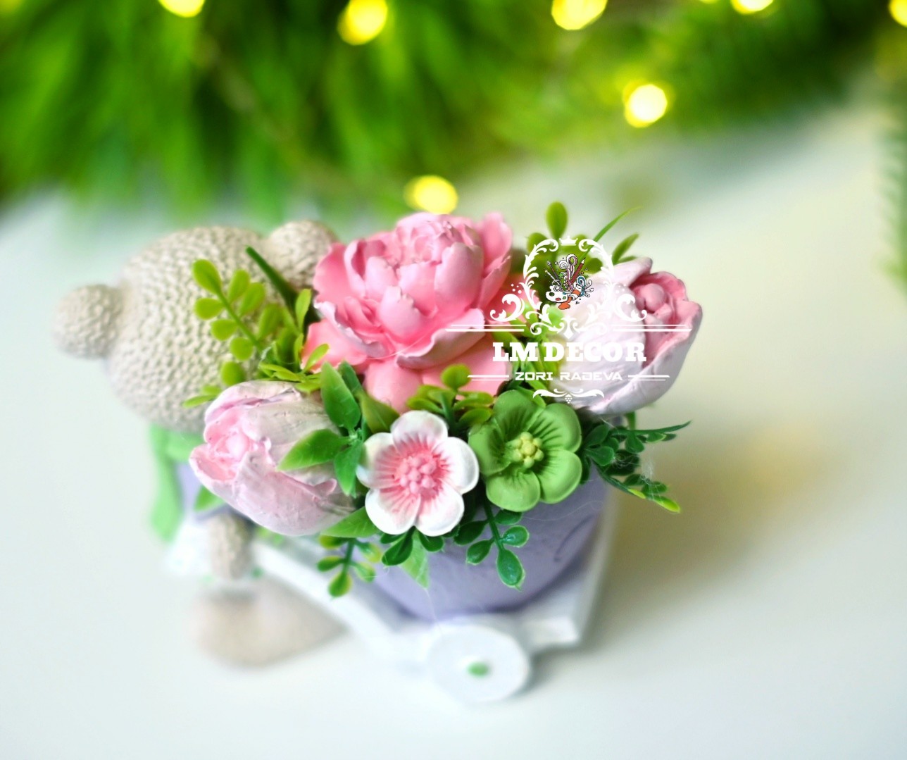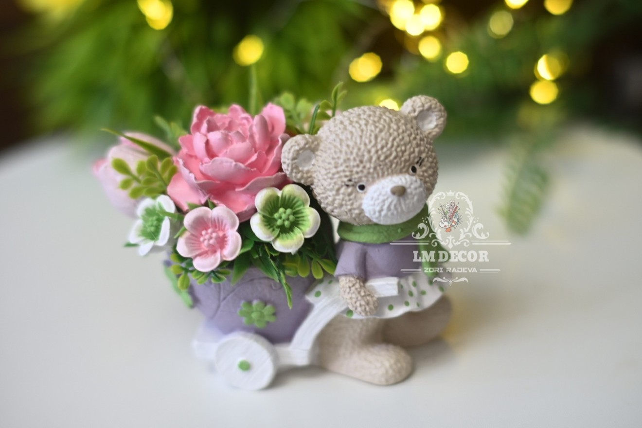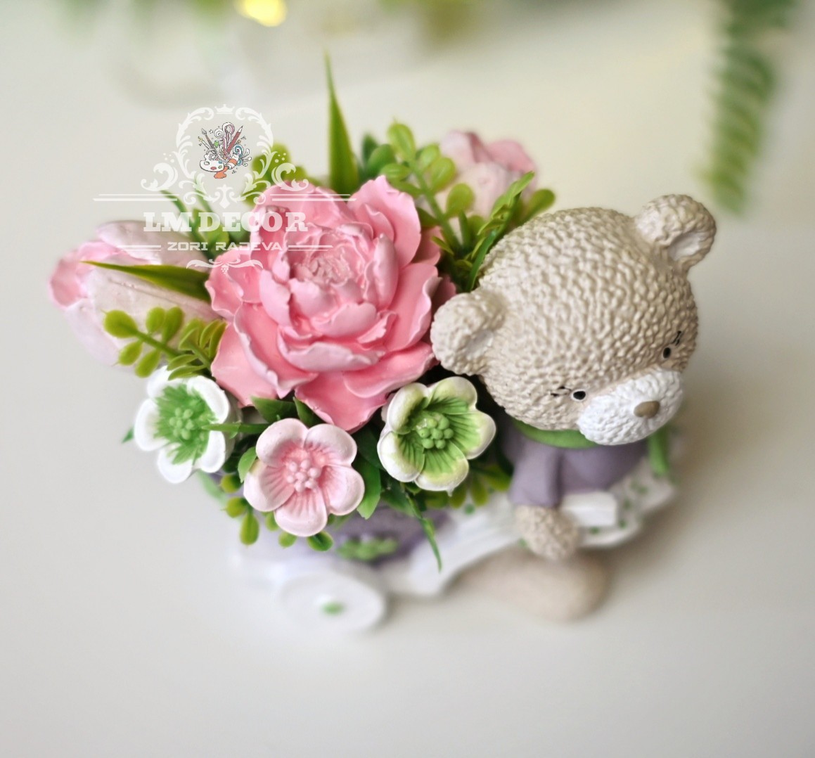 Ръчни изработени керамични цветя в керамична кашпа мече