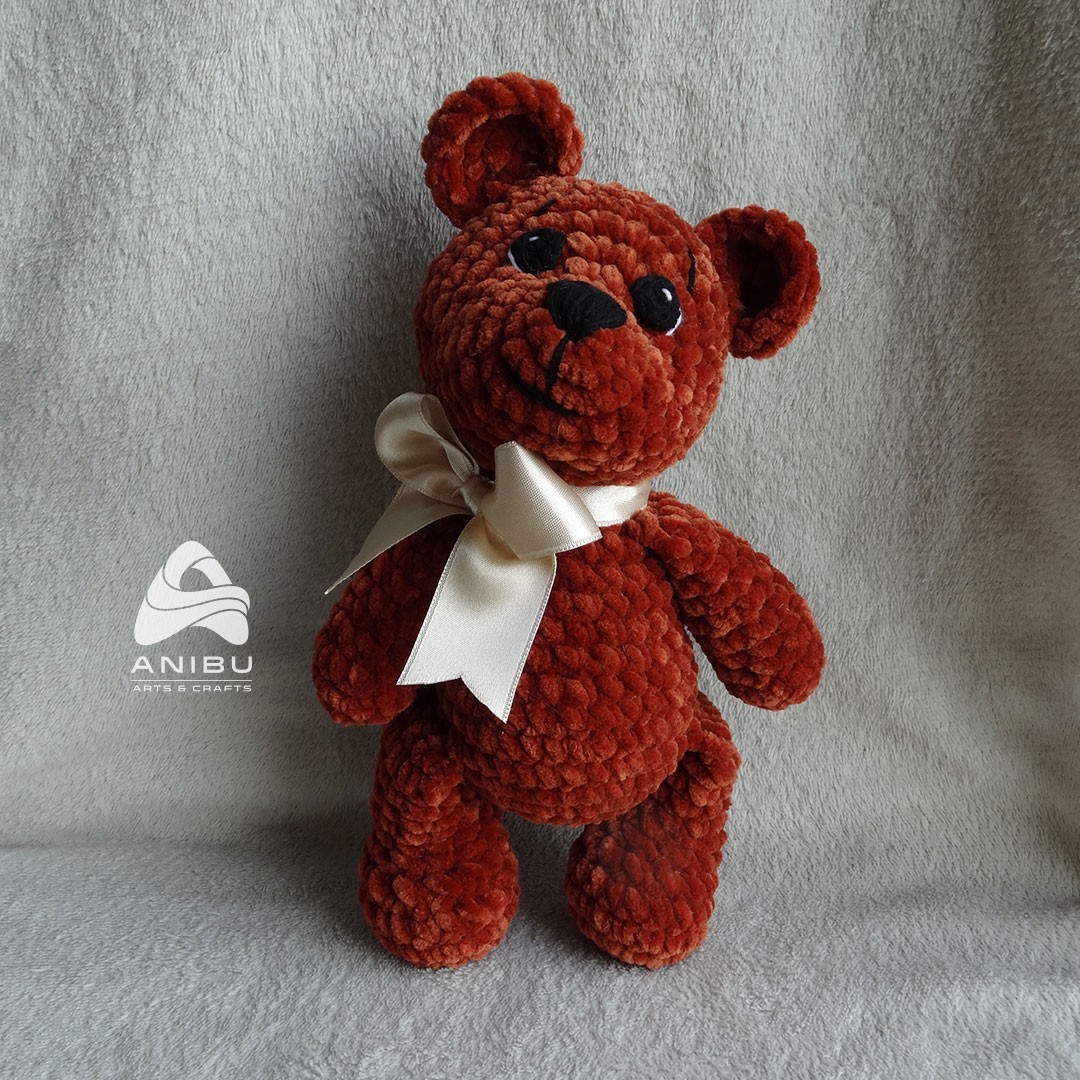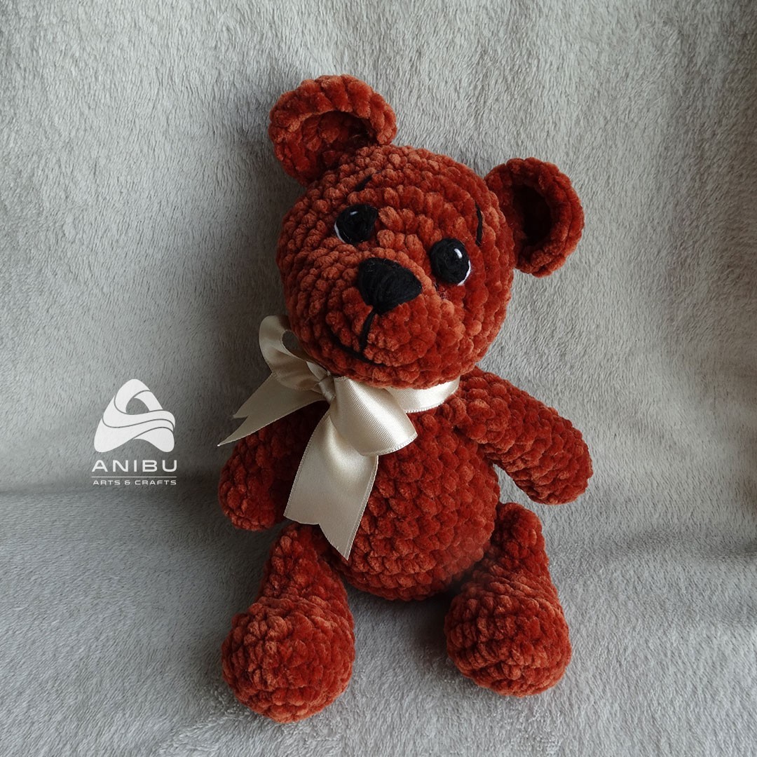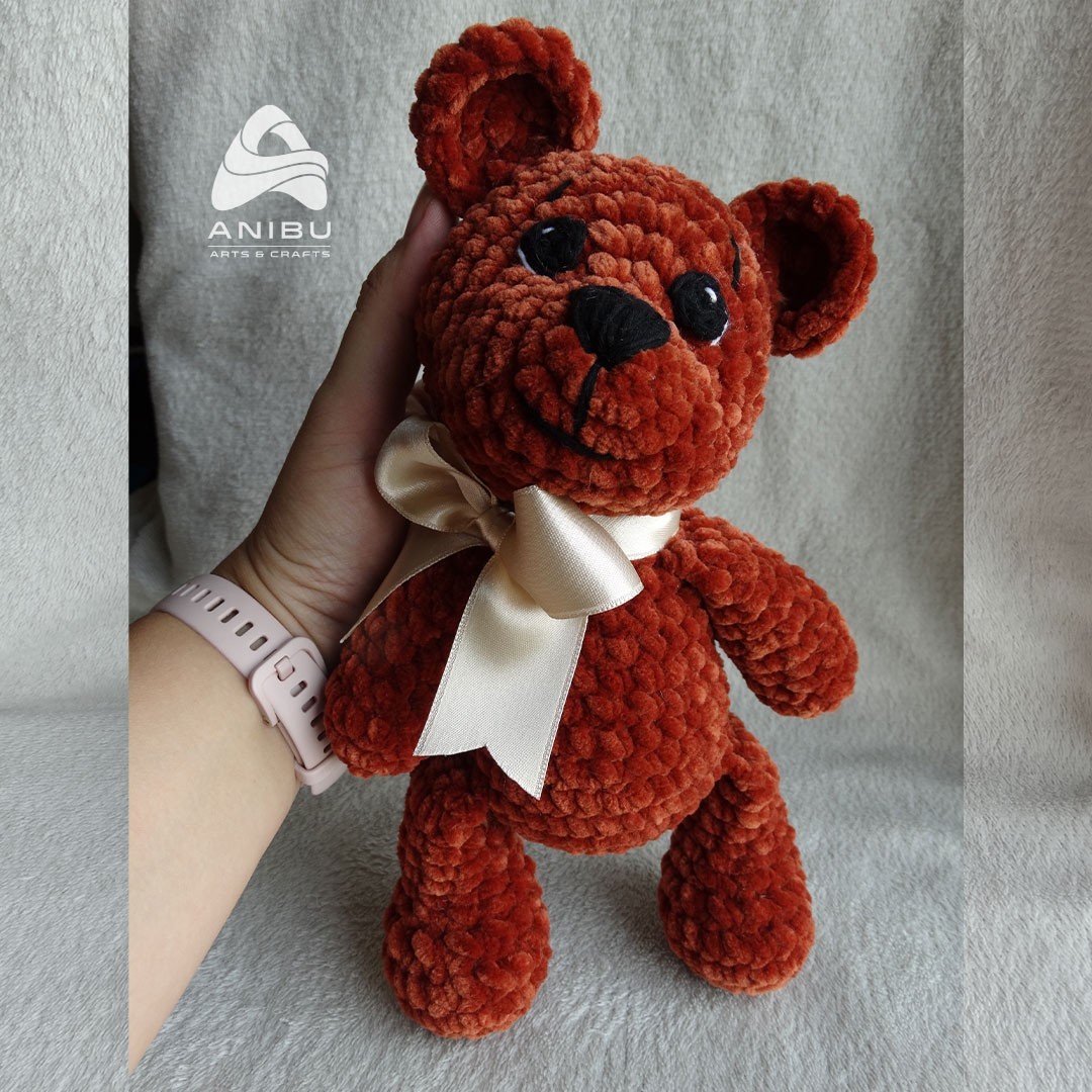 Този сладък Мечо търси своето приятелче! Ако си го харесате е готов да тръгне веднага! Голям е около 30 см в изправено положение, а панделката му е за разкош и може да се маха при желание. Изработен е от полиестерна прежда и силиконов пух за играчки. Държа да отбележа, че е единствен по рода си и честно да си призная и аз самата може би няма да успея да повторя излъчването му. С любов, ваша ANIBU