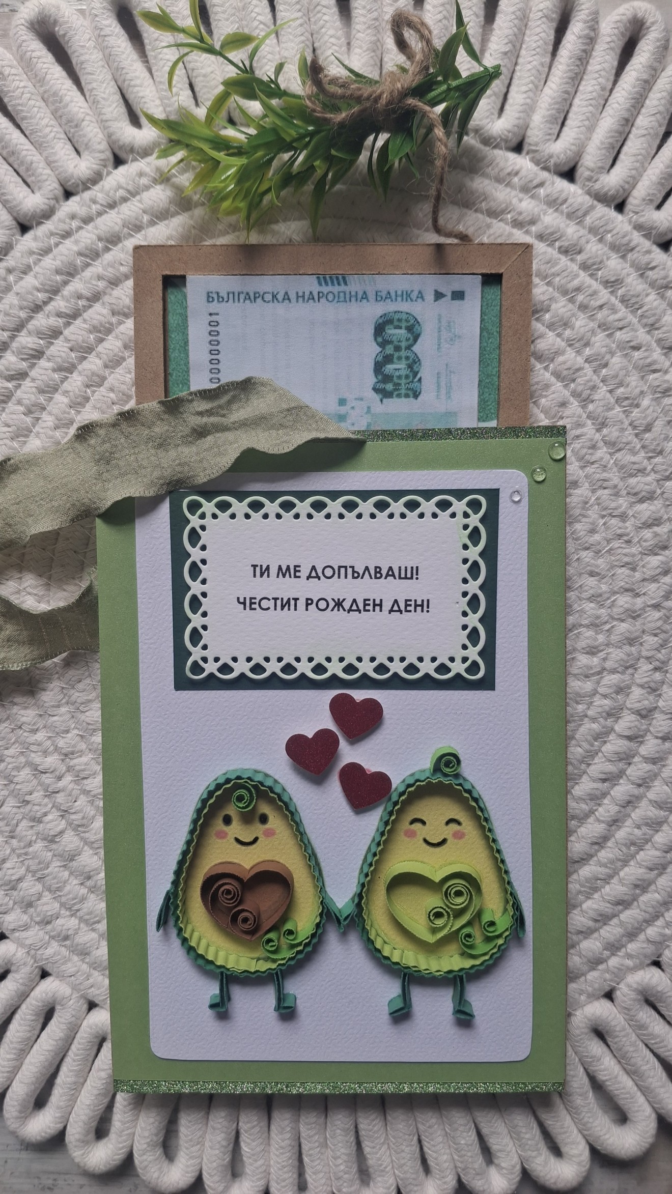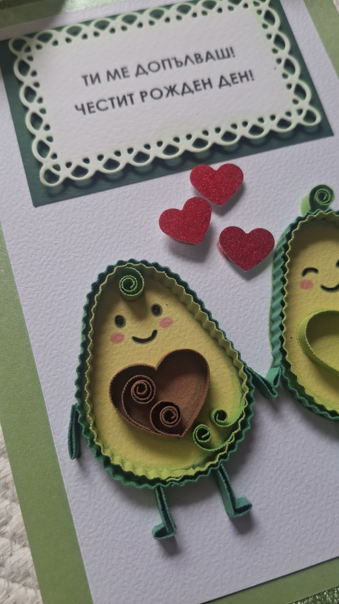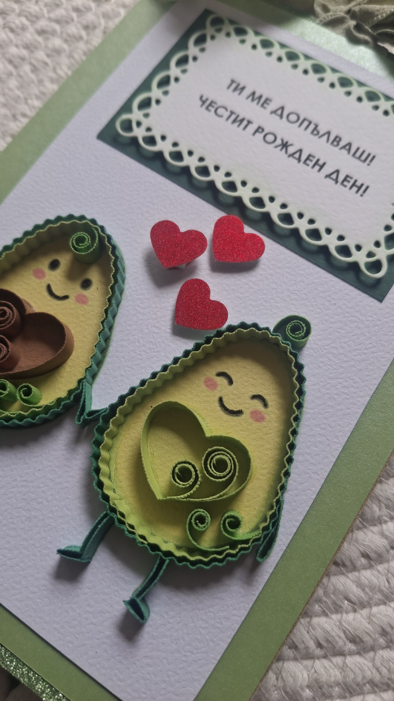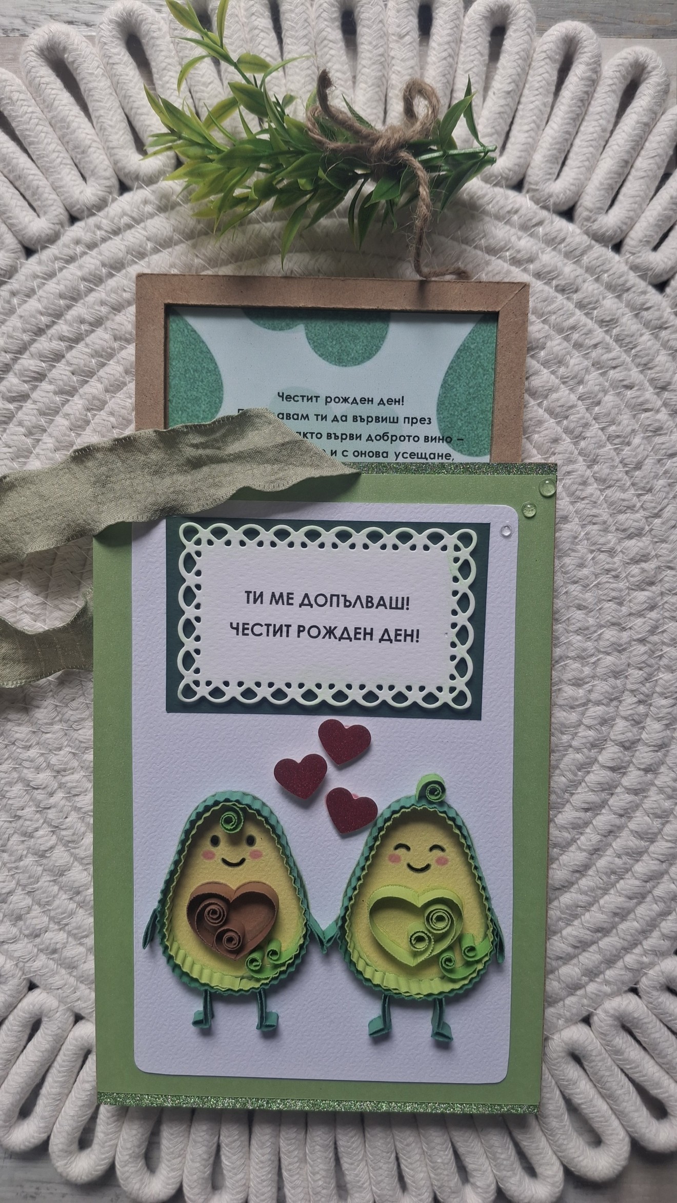 Квилинг картичка с авокадо, Дървена картичка за рожден ден
