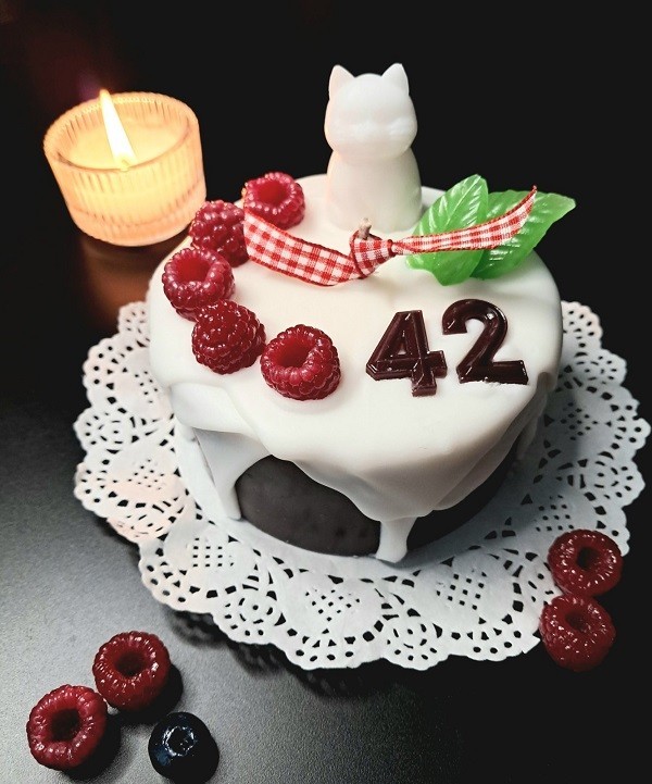 Ръчно изработена ароматна свещ, вдъхновена от изкушението на сладкарския свят – но без нито грам захар. Свещта е с форма на малка торта. Създадена да впечатлява не само с визия, но и с аромат. Идеален подарък за рожден ден, специален повод или ароматен акцент в дома. Възможност за персонализация – добави цифра или инициали, за да направиш подаръка още по-личен.* Тегло: около 350 г Размери: свещта е с диаметър 10 см. Изработена ръчно с внимание към детайла. Част от серия свещи „Без грам захар“. Подари нещо сладко… без калории.