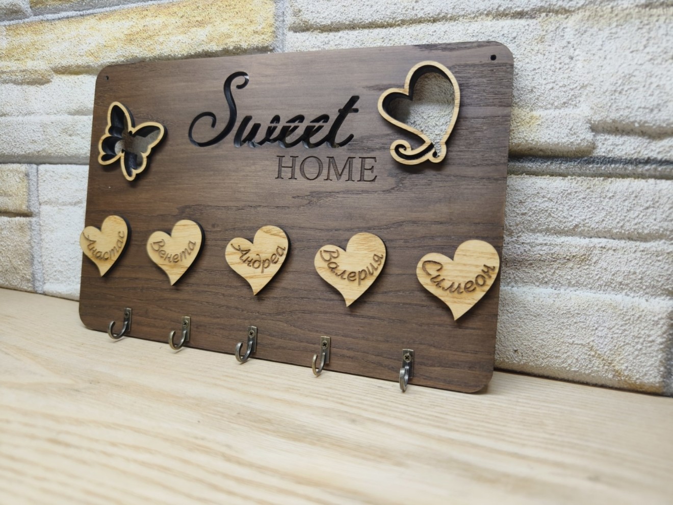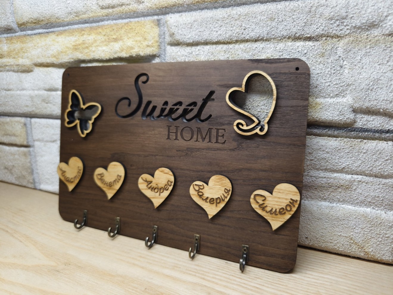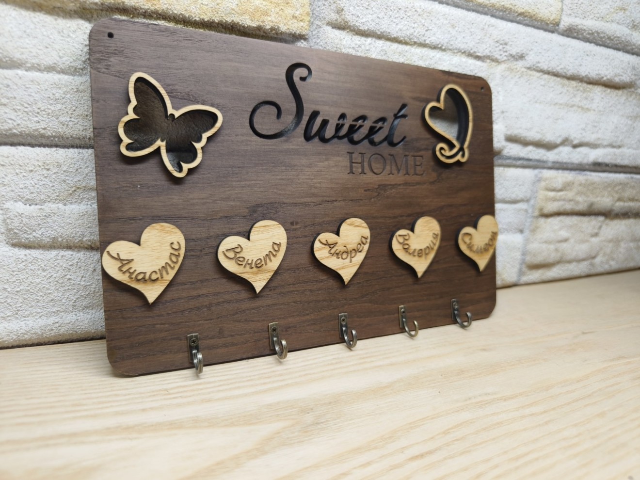 ✅За всеки клиент се изработва дигитален проект. Не се колебайте да се свържете с нас. ✅Стойка за ключове по поръчка на клиент, която прекрасно се вписва в домашната ви обстановка. ✅в сърцата могат да се изброят членовете на семейството + по желание и фамилното име над тях. ✅Персонализиран подарък с отлично приложение за цялото семейство, или скъп човек, с възможност за избор на име, или ваш текст! ✅Стойката е с отвори за монтаж на стена. ✅Изработена с огромно внимание и според вашите изисквания! Размери: Дължина: 20 сантиметра Широчина: 14 сантиметра 4 кукички Дължина: 30 сантиметра Широчина: 20 сантиметра 5 - 8 кукички Доплащане: + 10 лева Дължина: 38 сантиметра Широчина: 20 сантиметра 8 - 12 кукички Доплащане: + 20 лева ✅Часовници за авто сервиз
