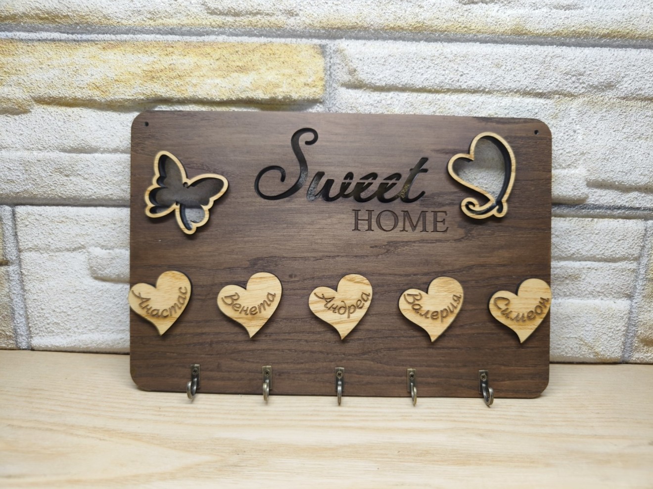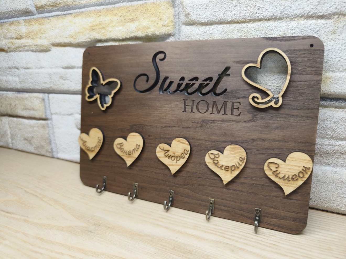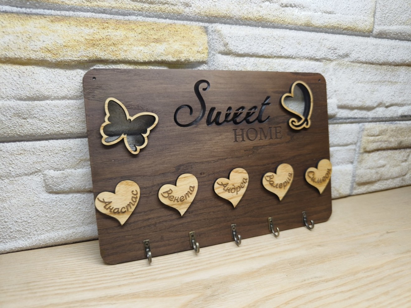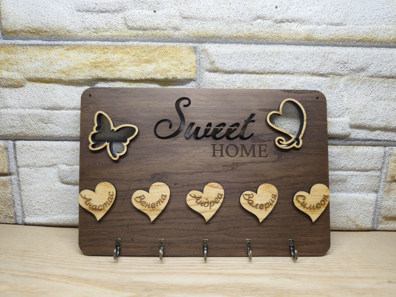 ✅За всеки клиент се изработва дигитален проект. Не се колебайте да се свържете с нас. ✅Стойка за ключове по поръчка на клиент, която прекрасно се вписва в домашната ви обстановка. ✅в сърцата могат да се изброят членовете на семейството + по желание и фамилното име над тях. ✅Персонализиран подарък с отлично приложение за цялото семейство, или скъп човек, с възможност за избор на име, или ваш текст! ✅Стойката е с отвори за монтаж на стена. ✅Изработена с огромно внимание и според вашите изисквания! Размери: Дължина: 20 сантиметра Широчина: 14 сантиметра 4 кукички Дължина: 30 сантиметра Широчина: 20 сантиметра 5 - 8 кукички Доплащане: + 10 лева Дължина: 38 сантиметра Широчина: 20 сантиметра 8 - 12 кукички Доплащане: + 20 лева ✅Часовници за авто сервиз