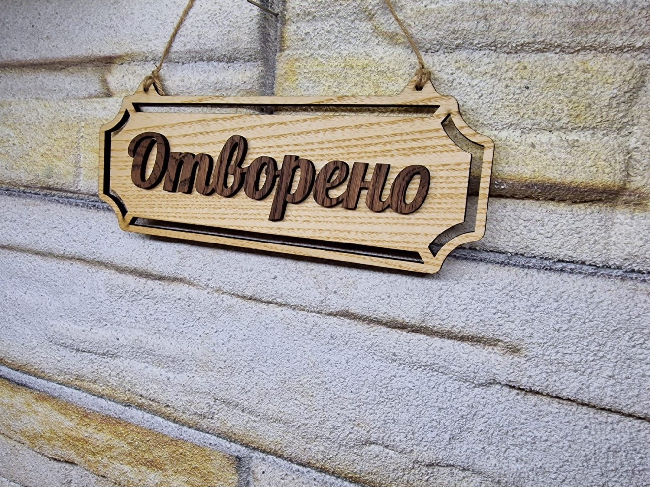 ✴️Двустранна табелка за врата на магазин, магазин офисм търговско помещение с текст "Отворено" от едната ѝ страна, а от другата - "Затворено". ✴️Подходяща за всички търговски побекти и магазини. ✴️Табелката добавя още повече красота към вашата витрина, а с нея бихте могли и да зарадвате скъп човек с функционален индивидуален подарък при всякакъв повод. ✴️Предвидена стабилна кукичка и връв за окачване, с която лесно се завърта табелката от едната на другата страна. ✴️От страната на Затворено може да има и вашият телефон доплащане +5 лева. ✴️Изпраща се чрез Еконт с опция за преглед и тест. Размери: Дължина: 20 сантиметра Широчина: 8 сантиметра 🔆В нашата работилничка можем да изработим за вас: ✅Дървена табелка за врата ✅луксозни табелки за врата ✅оригинални табелки за врата ✅табелка за входна врата ✅забавни табелки за врата ✅ръчно изработени табелки за врата ✅табелка за врата на детска стая ✅Стойки за ключове ✅Закачалки за ключове автосервиз