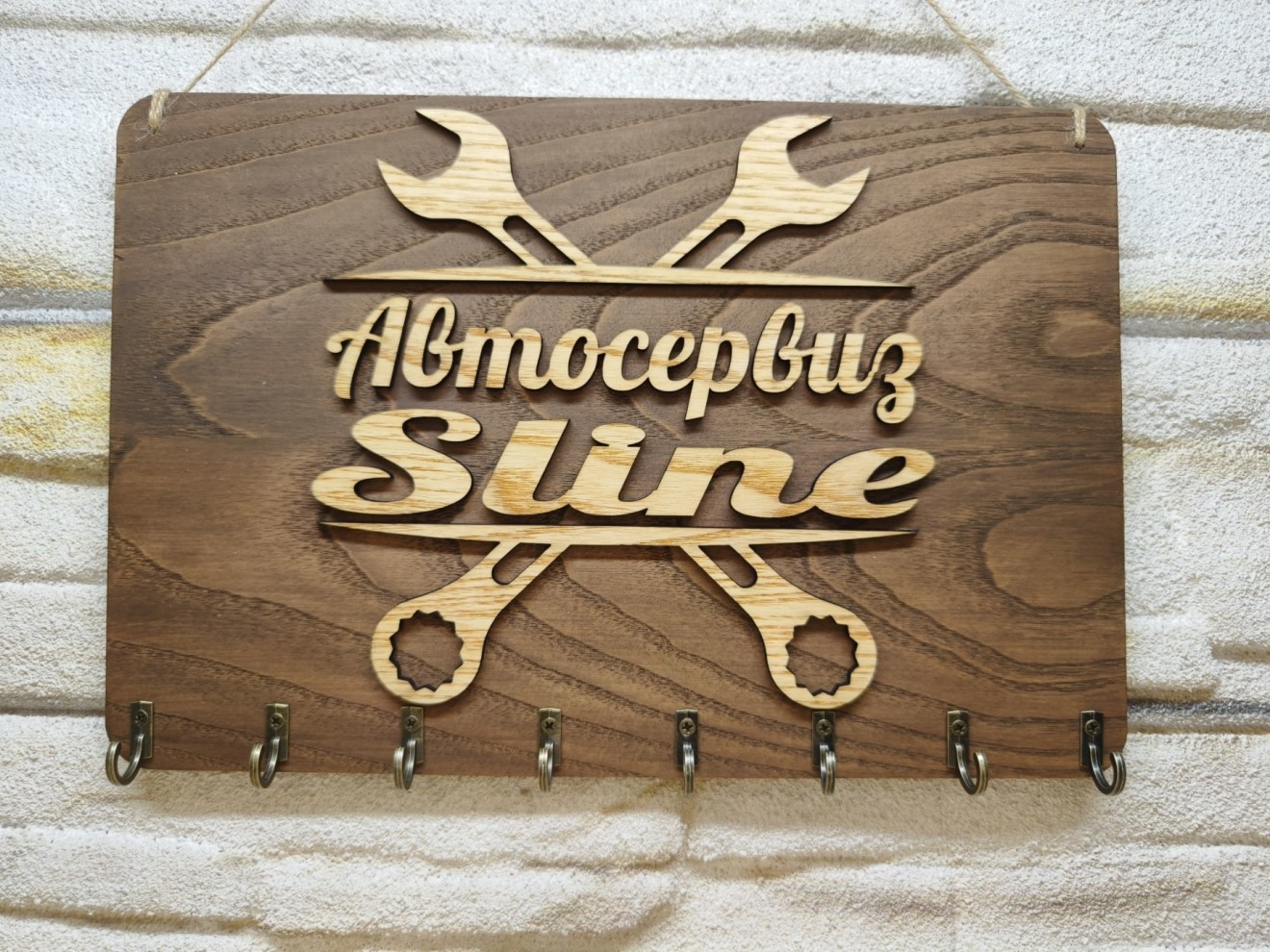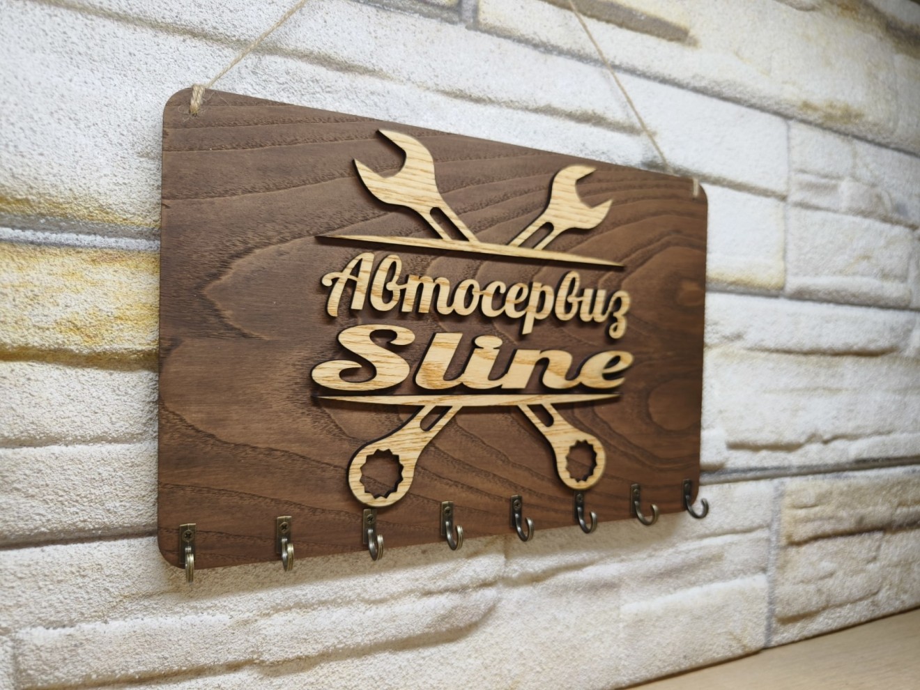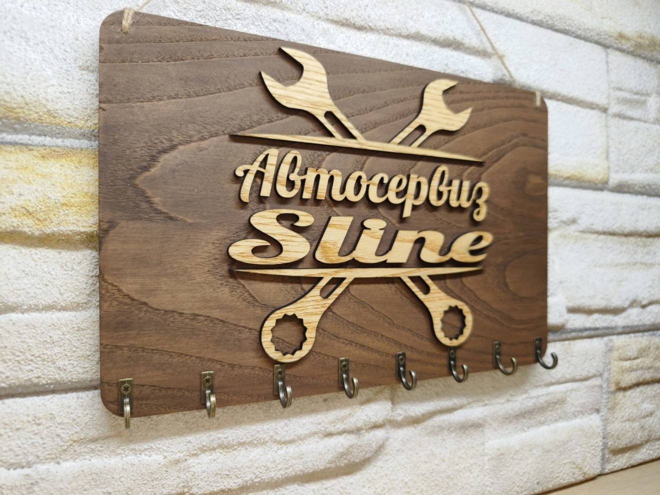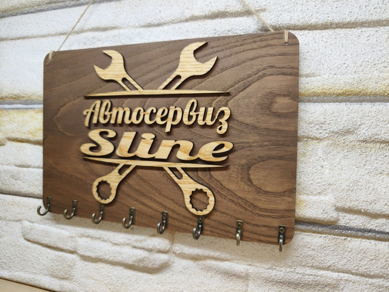 ✴️Безплатно специално за вас можем да изготвим дигитален проект за да видите как би изглеждала. ✴️стойка за ключове с която може да организирате по лесно ключовете на вашите клиенти. ✴️Персонализирана с ваше лого , текс , имена на фирма. ✴️Идеалане помощник на всеки които предлага услуги свързани със съхранение на ключове. ✴️Страхотен помощник за Автосервизи , Хотели , Вулканизатор , Автомивка , Фитнеси и други. ✴️Поставката за ключове по желание на клиента, могат да бъдат добавяни различни декоративни елементи. ✴️Стойката е с отвори за монтаж на стена . ✴️Изработена с огромно внимание и според вашите изисквания! ✴️Време за изработка: 2 дни. Размери: Дължина: 30 сантиметра Широчина: 22 сантиметра 8 броя кукички Дължина: 38 сантиметра Широчина: 22 сантиметра 12 броя кукички Предлага се и в размери: Дъжина: 20 сантиметра Широчина: 14 сантиметра 4 броя кукички 🔆В нашата работилничка можем да изработим за вас: ✅Часовници за автосервиз ✅Закачалки за ключове автосервиз