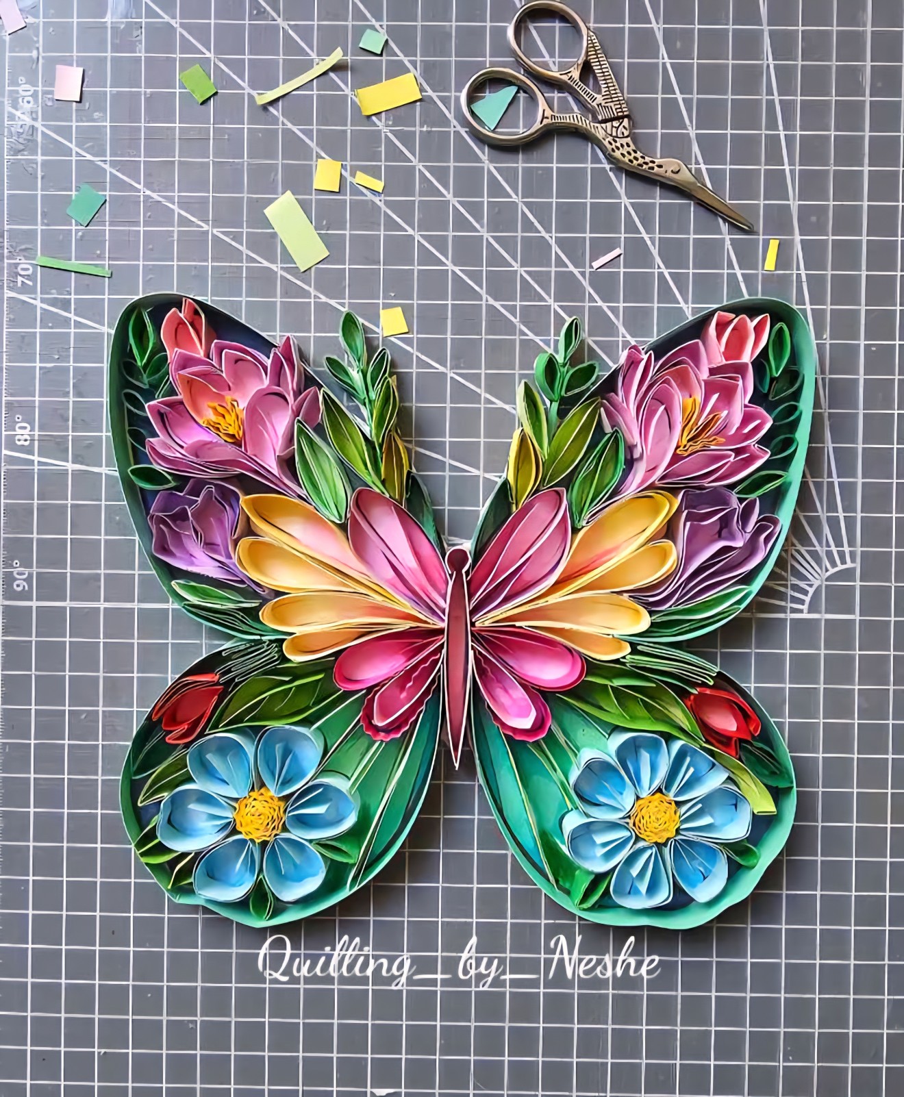 Квилинг пано , създадено от цветни ленти хартия/картон.