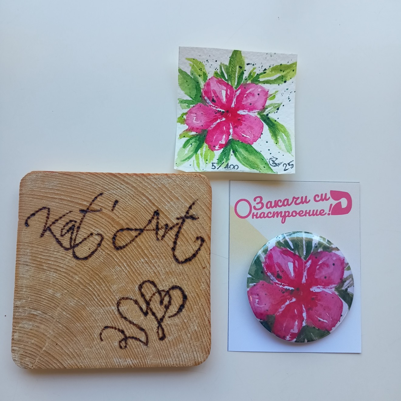 Значка с диаметър 58 мм, с принт на авторски акварел!