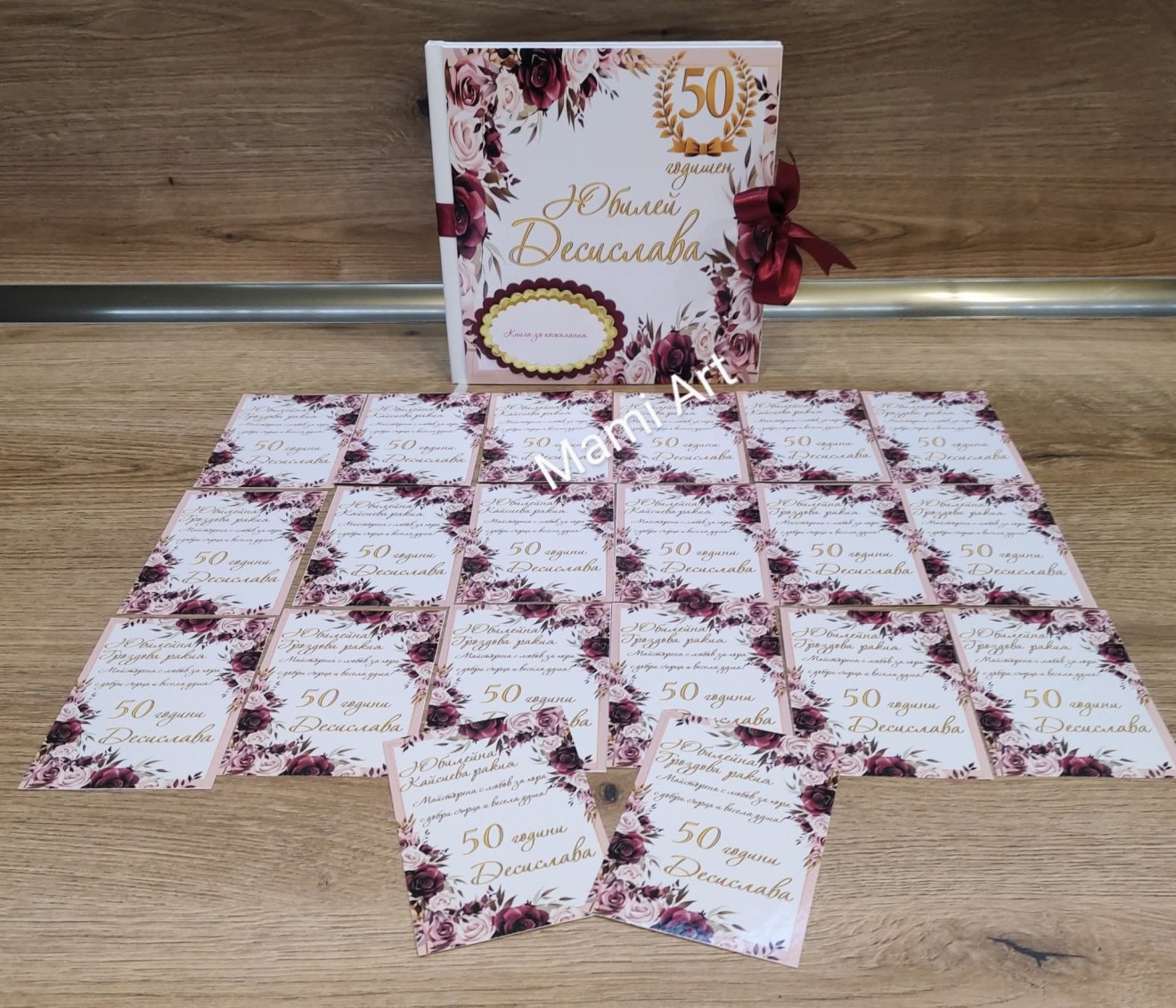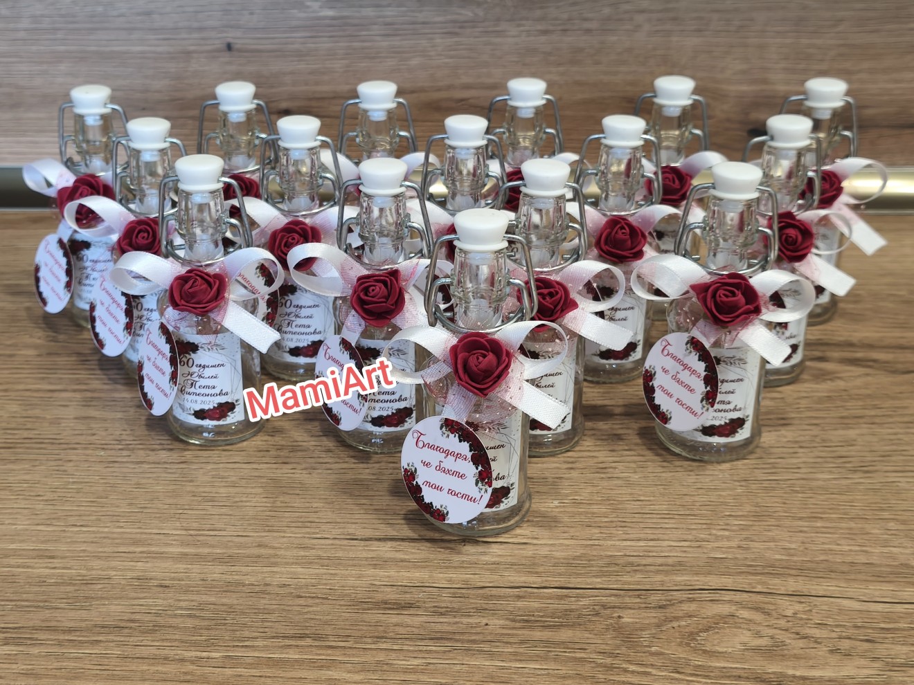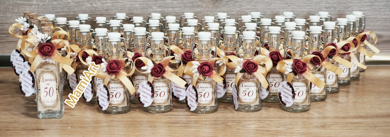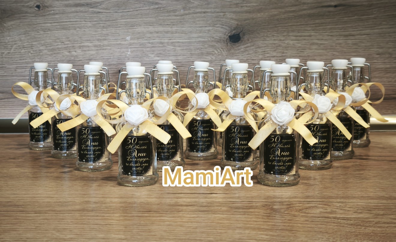 Книги за пожелания Тейбъл картички Номера за маси Бутилки с етикет и декорация 0,750 мл Етикети Подаръчета за гости Персонални бонбониери Покани