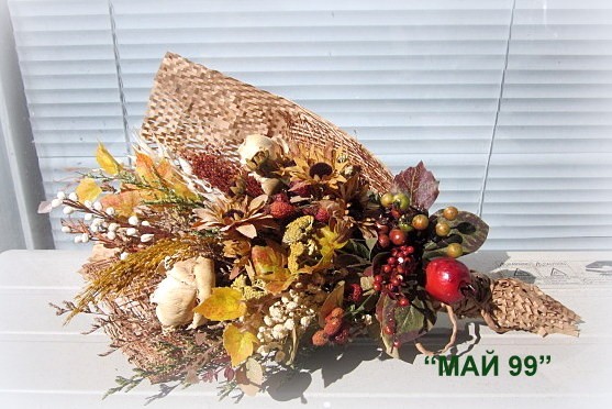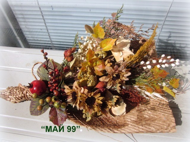 Букет сухи цветя,,лайка,треви,билки и натурални материали,зебло,кокосови влакна,обемен и дължина 40-45 см.