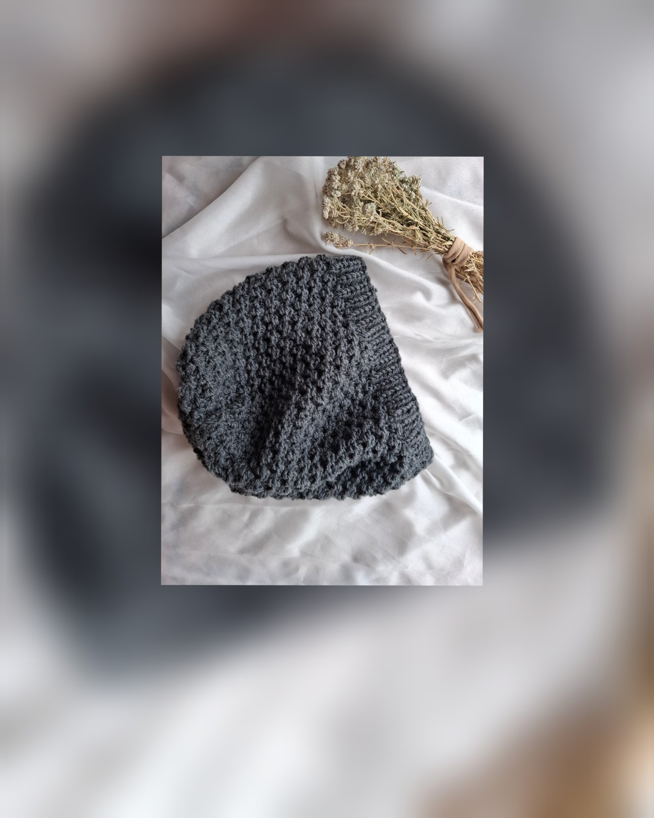 Ръчно изплетена шапка от мека мериносова вълна в тъмно сиво. • Преждата е много мека, топли, но не спарва. Чудесен избор за мъже, които държат да носят най-добрите материи. Лека и проветива, запазва топлината, без да спарва. Подходяща дори за най-взискателната кожа! • Универсален размер за възрастен, благодарение на използваната плетка. ✨ Може да се изработи в други цветове. • Пристига опакована в кутия с панделка, готова за подаряване. • Възможно е персонализиране, добавяне на картичка с името на получателя и лично послание. • Напишете съобщение, ако я познаете за себе си или за подарък. • Изработва се и в комплект с шал (яка или дълъг). • Напишете съобщение, за да уточним детайлите. Поздрави! Пълноцветни дарове