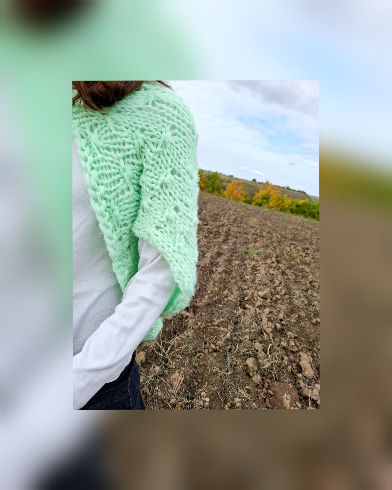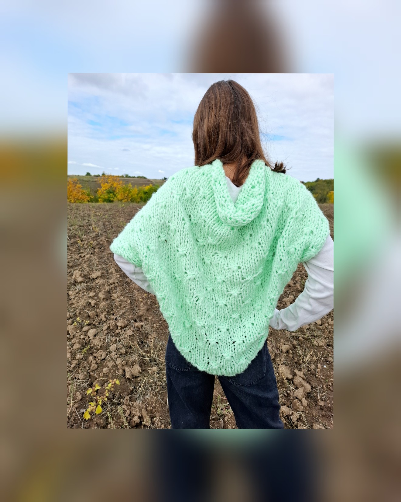 Ръчно изплетена пухкава, мека и топла жилетка. В нежно зелен цвят и красива плетка с цветя. Обгръща, като топла прегръдка. Пада елегантно, подходяща за панталон, пола или дънки. Универсален размер. Прежда 100 % акрил. Пристига опакована в кутия с панделка. Възможност за добавяне на лично пожелание, когато е за подарък. Напишете съобщение, за да уточним. И разбира се, с инструкции за пране и почистване. Може да се изработи подобна, според Вашите изисквания. 💝 Подходяща е за романтичен жест, за рожден ден, имен ден, Коледа или друг повод, особено ако търсите подарък, който ще се използва. Поздрави! Пълноцветни дарове