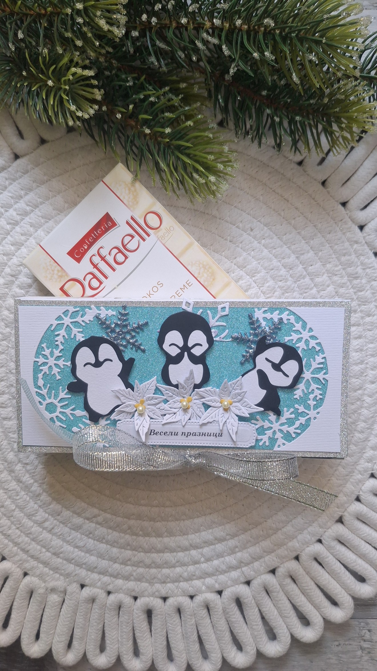 Празниците винаги идват с аромат на сладки спомени, топли усмивки и, разбира се… шоколад! 🍫 А когато шоколадът е „опакован“ в картичка – получаваме най-уютния и различен подарък. Тази картичка шоколад е идеална за всеки, на когото искате да подарите нещо мъничко, но специално: ✨ За колеги и колежки – да внесете празнично настроение в офиса. ✨ За приятели – малък жест, който казва „мисля за теб“. ✨ За учители, треньори или класни ръководители – защото заслужават нещо лично и красиво. ✨ За размяната на подаръци в училище, на работа или в компанията на приятели. ✨ За съседа, който винаги ви усмихва с „добро утро“. ✨ А защо не и за семейството или за вас самите – защото и вие заслужавате коледна сладост! Понякога най-милите подаръци са тези, които носят усмивка, без да са големи и сложни. 👉 Картичката е без шоколад.